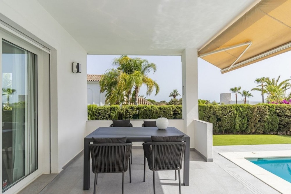 - Luxury villa in the sought after area of Marbesa, East Marbella, one of the best areas of Marbella and just a stroll to the beach! Close to Puerto de Cabopino, Nikki Beach, fine restaurants, shops and much more. This contemporary, well maintained villa boosts 4 bedrooms and 3.5 bathrooms, a covered terrace that leads to the swimming pool. It has a stunning separate apartment on the lower floor with separate entrance, which can be used for a nanny or family visiting. South-West facing, private property Gated parking with space for multiple cars Covered terrace with beautiful garden, pool and sea views 10 min. drive to Marbella centre and 30 min drive to Malaga Airport This is a real gem! Detached Villa, Marbesa, Costa del Sol. Built 295 m², Garden/Plot 773 m². Setting : Beachside, Close To Shops, Close To Sea, Close To Schools, Urbanisation. Orientation : South, South West. Condition : Excellent. Pool : Private. Climate Control : Air Conditioning, Hot A/C, Cold A/C. Views : Sea, Garden, Pool. Features : Covered Terrace, Fitted Wardrobes, Private Terrace, Ensuite Bathroom, Marble Flooring, Double Glazing. Kitchen : Fully Fitted. Garden : Private, Easy Maintenance. Security : Alarm System. Parking : More Than One, Private. Utilities : Electricity, Drinkable Water. Category : Luxury, Contemporary.