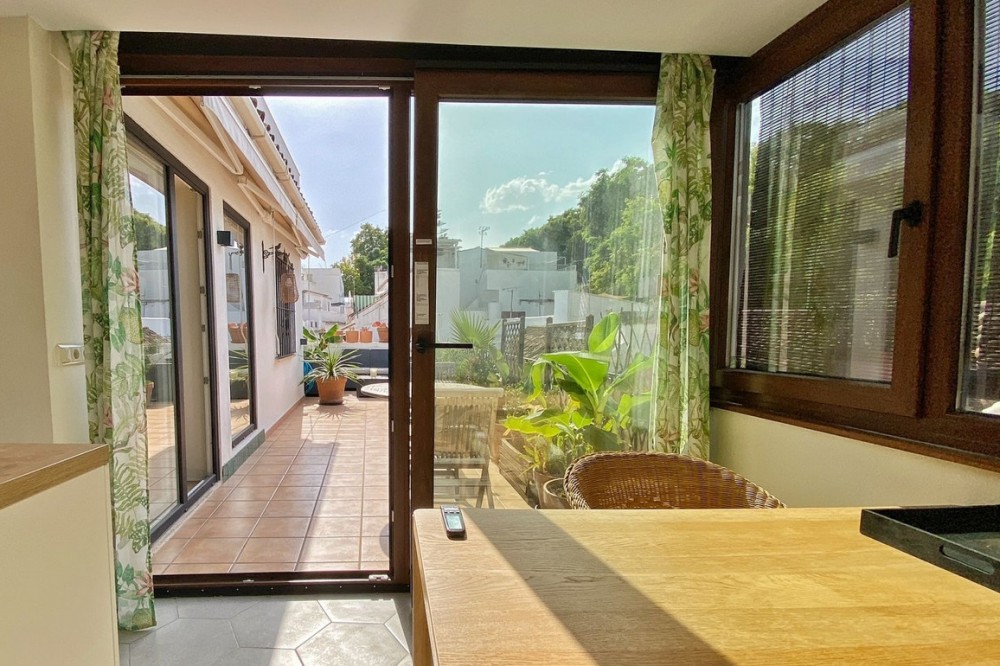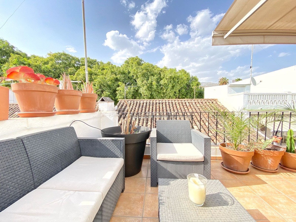 - A unique and unrepeatable property, a beautiful one-bedroom penthouse apartment with a large, private, sunny terrace and beautiful unobstructed views over the Old Town. Located on a quiet pedestrian street in Marbella's Old Town, very peaceful and quiet. The apartment has a separate bedroom, a bathroom with a shower and an exterior window, a cozy living room, and a fully equipped kitchen with a dining area, both with direct access to a fantastic outdoor terrace of aprox. 25 sqm, where there are different areas to relax or sunbathe on the sun lounger, or to sit and eat outside. The apartment is in excellent condition and ready to move into. This small building has only three neighbors. Additionally, there is another fantastic terrace on the building's roof where there is a small communal room, currently used as a cleaning and laundry room for this apartment. Ideal for tourist use with extremely high profitability.