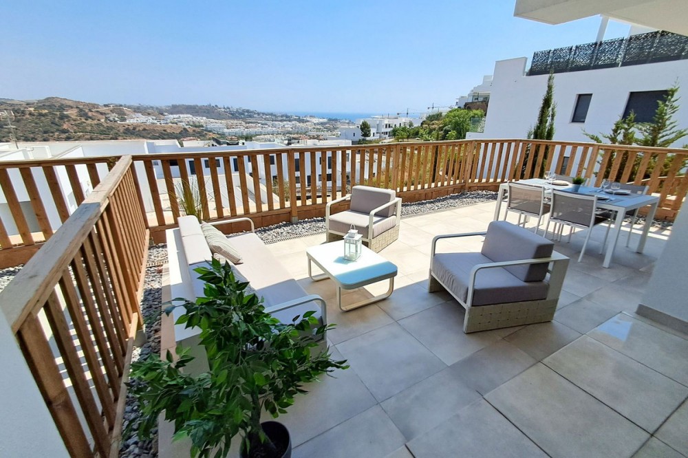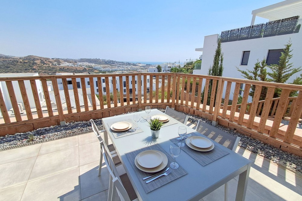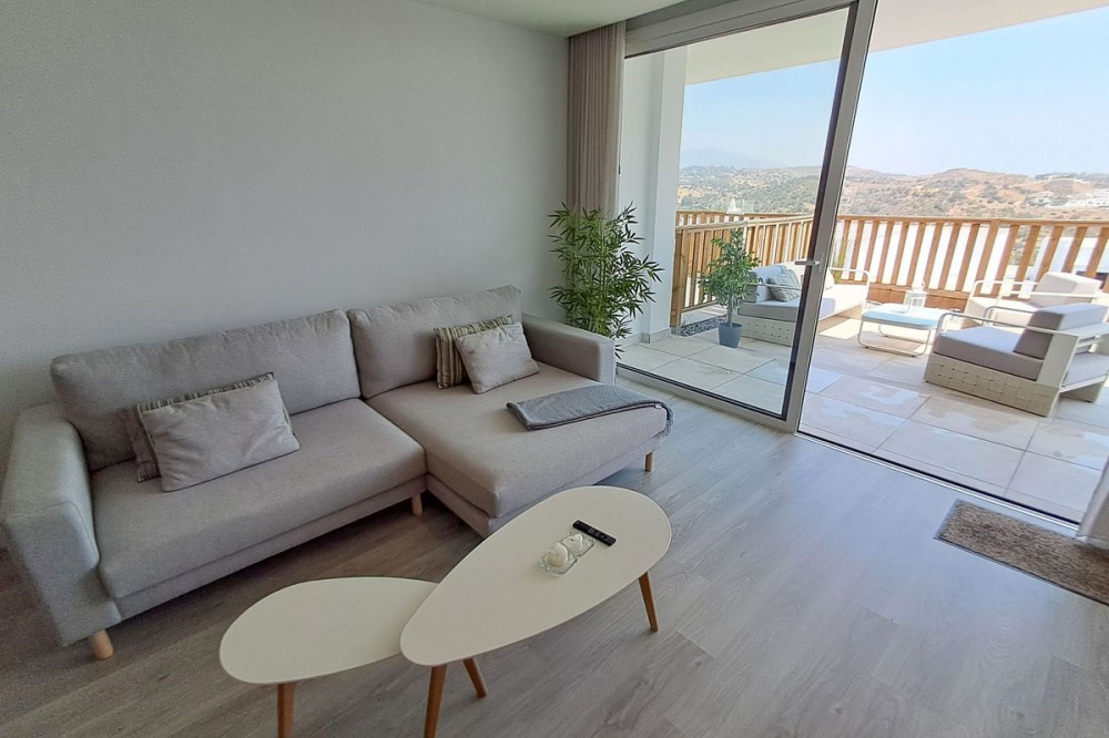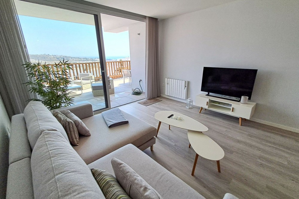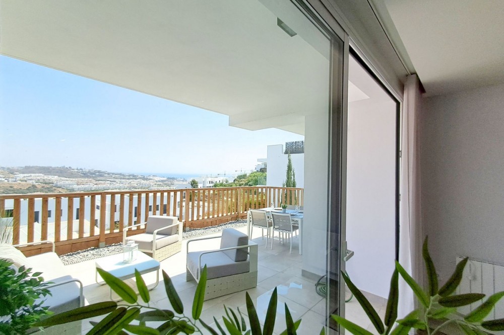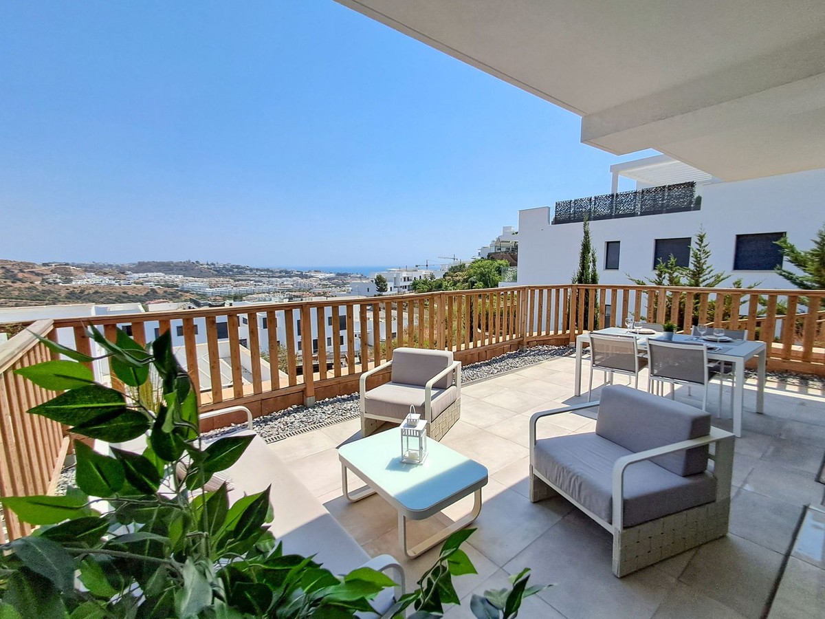 - NEW ON THE MARKET! Fantastic apartment that combines a modern and elegant style to create the perfect space for your future home. The property welcomes you at the entrance with a bright, modern open-plan kitchen, which in turn leads to the living-dining room. From the living room, you can access its splendid terrace with sea views, perfect for sun lovers who want to enjoy the outdoors in the Mediterranean climate. Everything with a subtle and elegant design, ideal for resting and relaxing. Next, the apartment is laid out with a master bedroom with terrace access and a modern en-suite bathroom, which also offers an open dressing area. Continuing along the hallway, there are two more bedrooms, both with built-in wardrobes, and a second full bathroom serving both rooms. The apartment is furnished with high-quality minimalist furniture, in soft colors that evoke elegance and calm. As extras, it features centralized hot/cold air conditioning, smart home system, underfloor heating in both bathrooms, high-quality double glazing, electric blinds, built-in wardrobes in two bedrooms, and a third closet at the entrance perfect for storage. The apartment is located within the Casabanderas complex, highly recognized and sought-after in the area, with high-quality finishes, 24-hour security, and 3 communal pool, this complex is second to none. Residents enjoy access to three beautifully maintained swimming pools, a state-of-the-art gym, sauna, spa facilities, paddle courts, a children’s playground, and a welcoming social lounge. The complex is meticulously cared for, with 24-hour reception, security, concierge and cleaning services, offering complete peace of mind. It includes a spacious storage room and a private parking space. Everything is designed so you can enjoy the space with maximum comfort, just a few minutes from La Cala de Mijas. * KEYS IN OFFICE !! * CALL US NOW FOR A VISIT !!