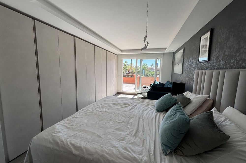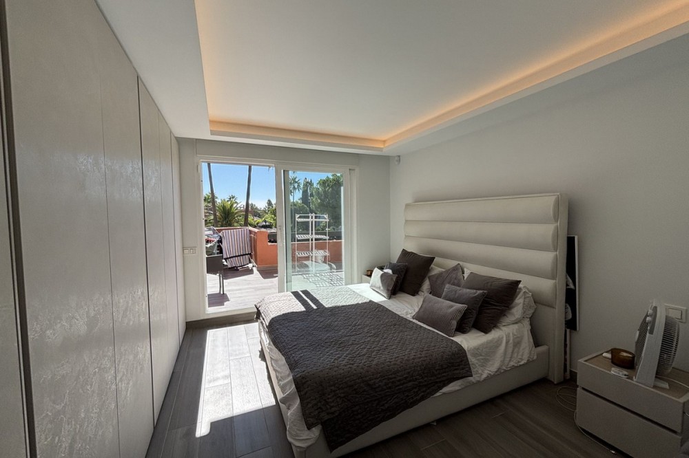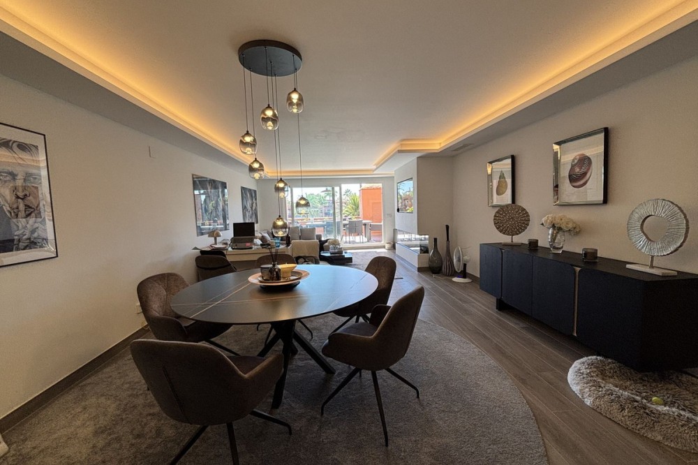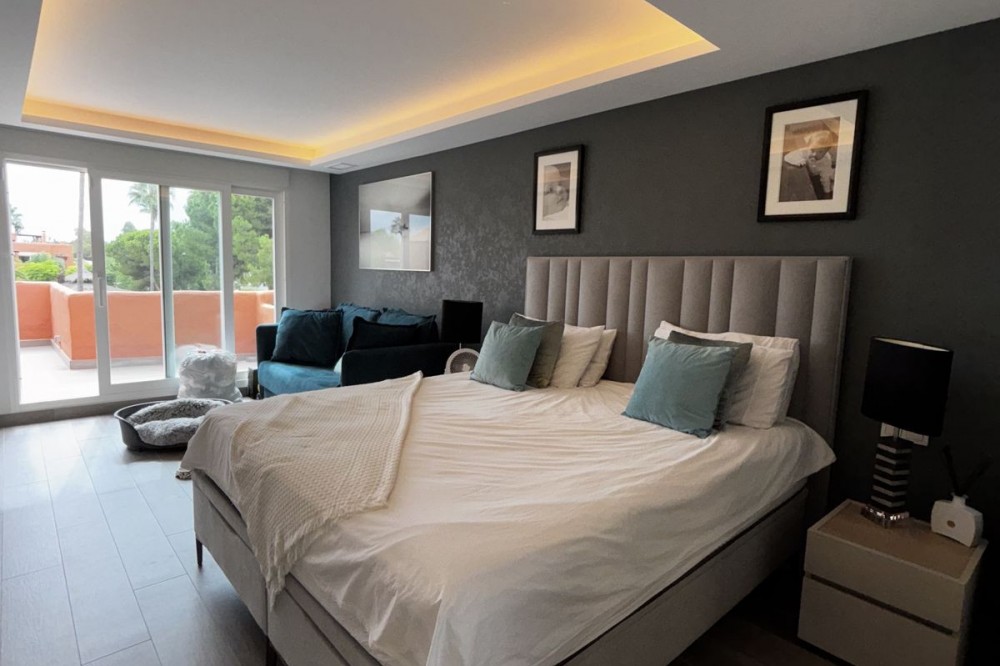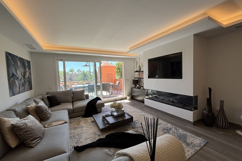 - Exquisite Renovated 3-Bedroom Apartment in Alhambra del Golf, Guadalmina Baja Nestled within the prestigious beachside complex of Alhambra del Golf in Guadalmina Baja, this beautifully renovated apartment offers the perfect blend of modern luxury and Mediterranean charm. Finished to the highest standards, every detail has been carefully designed to provide style, comfort, and elegance. The spacious property features three generously sized bedrooms, each with its own luxurious ensuite bathroom, ensuring complete privacy and comfort for family and guests. The open-plan living and dining areas flow seamlessly onto a large private terrace, where you can relax and enjoy breathtaking views of the lush gardens, the sparkling community pool, and the iconic La Concha mountain. The kitchen has been fully upgraded with top-quality finishes and appliances, making it both highly functional and ideal for entertaining. Natural light floods every room, creating a bright and inviting atmosphere throughout. Situated in one of Marbella’s most sought-after beachside communities, residents benefit from beautifully landscaped gardens, a large swimming pool, and 24-hour security. Just a short stroll from the beach and close to golf courses, restaurants, and all amenities, this apartment offers the ultimate Costa del Sol lifestyle. Whether as a permanent residence, holiday home, or investment, this is a rare opportunity to own a truly exceptional property in Guadalmina Baja.