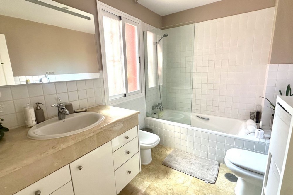 - This charming three-storey semi-detached villa combines comfort, spaciousness and a functional layout, ideal for enjoying with the family. On the main floor, upon entering the house, we find a separate kitchen, a guest toilet and a spacious living-dining room with fireplace, perfect for creating a cosy atmosphere in the cooler months. From here, you can access a large terrace with direct access to the pool, a real privilege for sunny days. The first floor houses three bedrooms and a full bathroom. The master bedroom features a private terrace and a balcony, offering natural light and unobstructed views. The basement is a versatile space that has a garage with entrance for the vehicle, a laundry room and a storage room, providing extra comfort and storage. A home with everything you need to enjoy a comfortable and relaxed lifestyle. Come visit it and discover your next home!