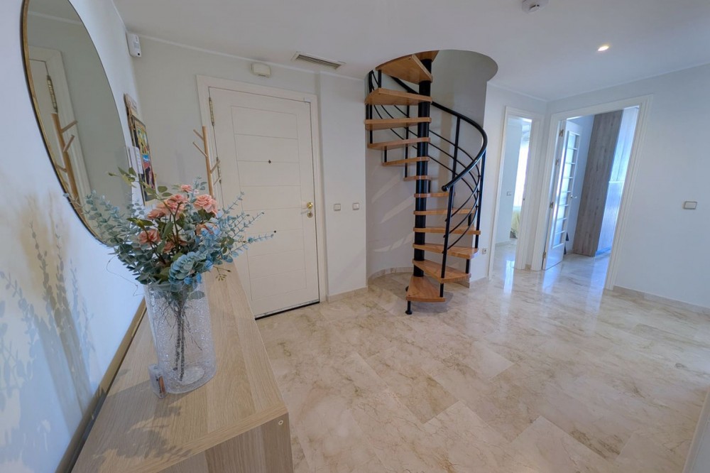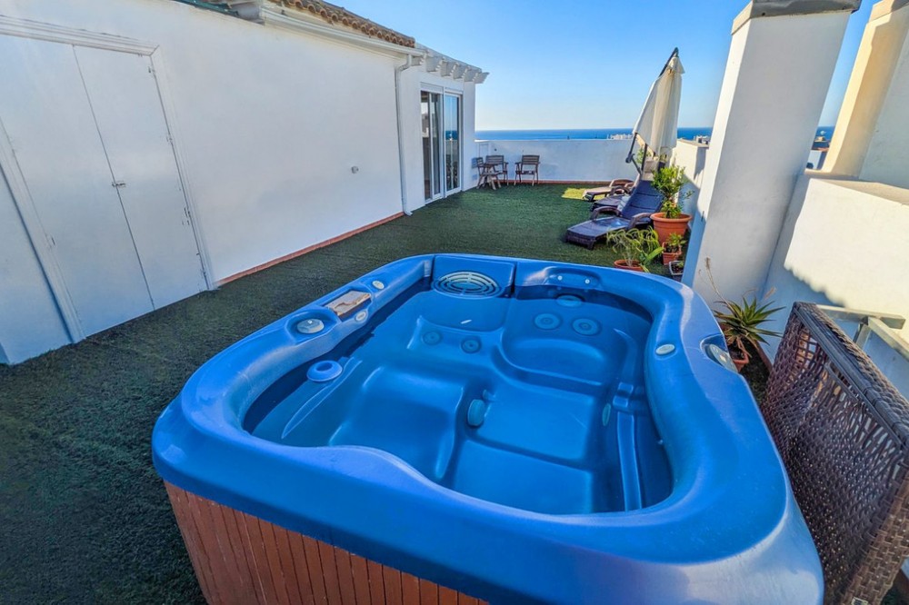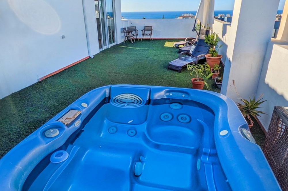 - ✨Exclusive penthouse in Estepona with dreamy sea views✨ ???? Panoramic sea views from the living room, kitchen, and master bedroom. ???? From the 50m² terrace, you can enjoy the entire Mediterranean, with Gibraltar perfectly visible. ????️ Unbeatable location: just 400m from the port and an 8-minute walk from the Old Town. ???? 3 bedrooms (master suite + 2 bedrooms) and 2 bathrooms. ???? Renovated, fully equipped, and bright kitchen, also with sea views. ????️ Living room with floor-to-ceiling windows and south exposure. ???? Spectacular terrace with outdoor kitchen, barbecue, and jacuzzi. ???? Storage room included (option to rent another). ???? Close to golf, shops, and less than 1 hour from Malaga Airport. *Penthouse Features Summary • High-quality parquet flooring. • White lacquered doors and modern interior woodwork. • Double-glazed Climalit windows with excellent thermal/acoustic insulation. • Kitchen equipped with modern furniture and built-in appliances. • Bathrooms with designer finishes, top-of-the-line sanitary ware, and shower/bathtub. • Built-in wardrobes in bedrooms. • Individual air conditioning and heating. • Private terrace with easy-maintenance exterior flooring. • Building with elevator and well-maintained common areas.
