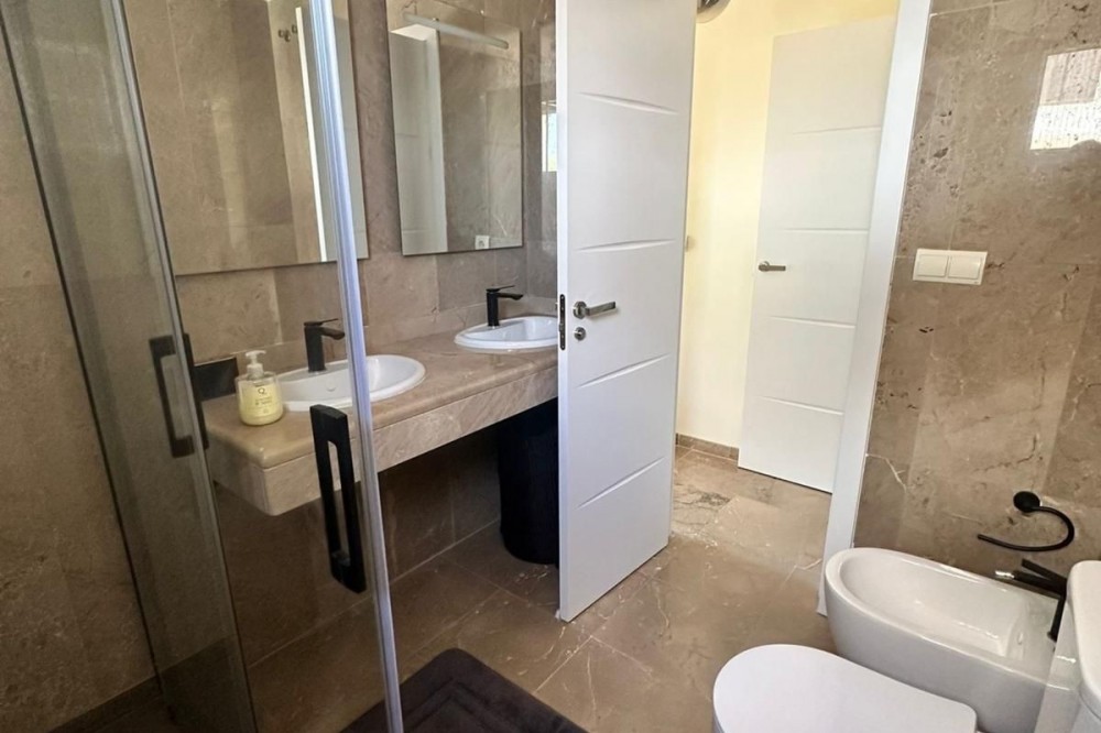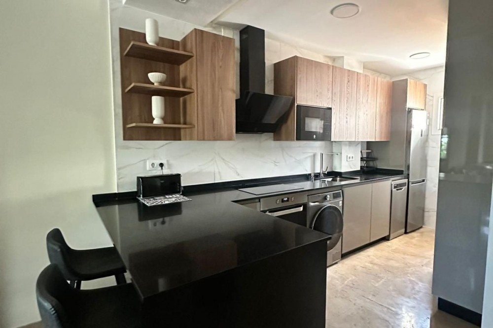 - Renovated Apartment with Terrace and Private Garden – Manilva, Costa del Sol This elegant 2-bedroom, 2-bathroom apartment, with approximately 89 m² built area and 80 m² usable area, plus a terrace and private garden, is located in a quiet and secure residential area, just minutes from the beach, supermarkets, and restaurants. Ideal as an investment, permanent residence, or vacation home. The property has been recently renovated with modern finishes and designer furniture, ready to move into or rent. It features a spacious living-dining room with direct access to the terrace and garden, a fully equipped kitchen, bedrooms with built-in wardrobes, and two full bathrooms. A storage room and parking space are included in the price. The private development offers a communal pool, garden areas, and 24-hour security with surveillance cameras. Strategic Location: • Just minutes from the beach and all amenities • Excellent connections to Estepona, Marbella, and Gibraltar • Quiet residential area with easy access Highlights: • Renovated to a high standard with a modern design • Private terrace and garden for outdoor enjoyment • Facing with excellent natural light • High profitability for vacation rentals due to its location and features A unique opportunity to enjoy the Costa del Sol in a modern, renovated apartment with great investment potential.