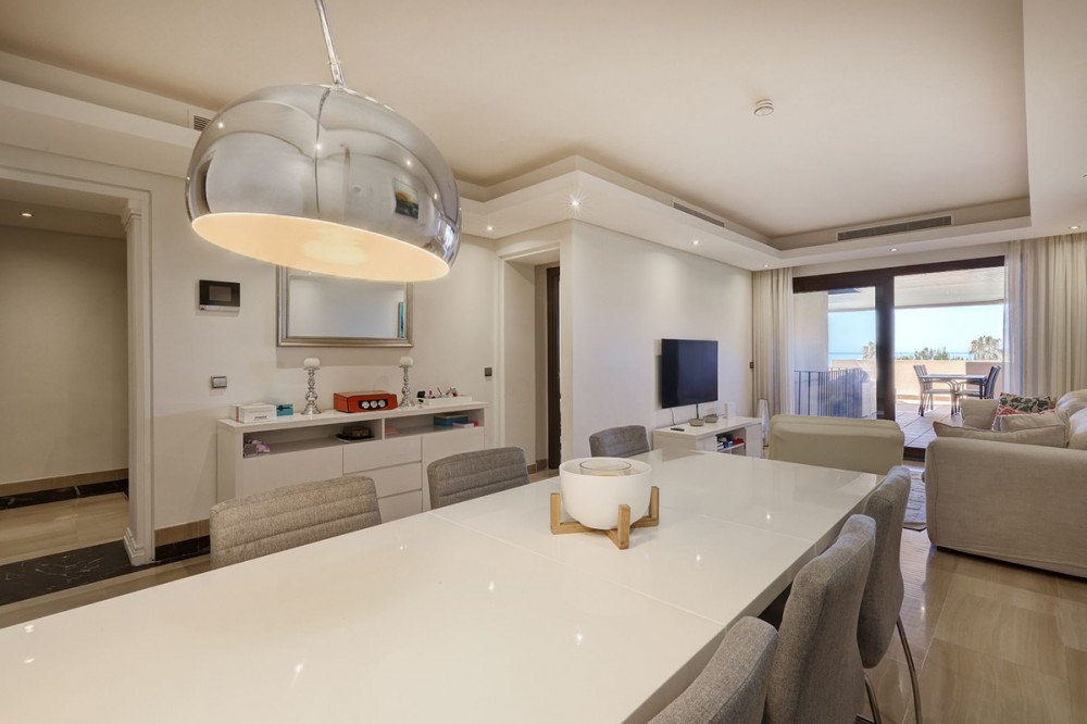 - Elegant 2-Bedroom Apartment for Sale in Bahía de la Plata – Frontline Beach, Estepona Bright Two Bedroom First-Floor Corner Apartment with Sunny Terrace, Sea Views & Privacy in Prime Beachfront Complex, Bahía de la Plata. Welcome to this beautifully maintained 2-bedroom, 2-bathroom apartment located on the 1st floor of the exclusive Bahía de la Plata development — one of Estepona’s most sought-after frontline beach communities. With a southwest orientation, this spacious apartment enjoys sunshine throughout the afternoon and beautiful views over the tropical gardens and partial sea views. The open-plan living and dining area flows effortlessly onto a generous covered terrace, perfect for relaxing or entertaining. The master bedroom features an en-suite bathroom and terrace access, while the second bedroom and bathroom offer comfort and privacy for guests or family. The apartment is sold with a private underground parking space and a storage room. Bahía de la Plata is a gated, secure complex with direct beach access, outdoor and indoor pools, gym, spa, 24-hour security, and beautifully landscaped gardens. Just a short walk from Estepona town, restaurants, shops, and all amenities. Whether you're looking for a permanent residence, a holiday home, or a smart investment on the Costa del Sol, this apartment is a fantastic opportunity in a prime beachfront location. The location is unbeatable, within walking distance to the beach, local restaurants, and the famous Kempinski Hotel. Estepona’s charming old town and the vibrant marina are just a short drive away, and Marbella and Puerto Banús can be reached in under 20 minutes. This apartment is a rare opportunity not to be missed by those looking for a luxurious holiday home, a secure investment, or a permanent residence by the sea.