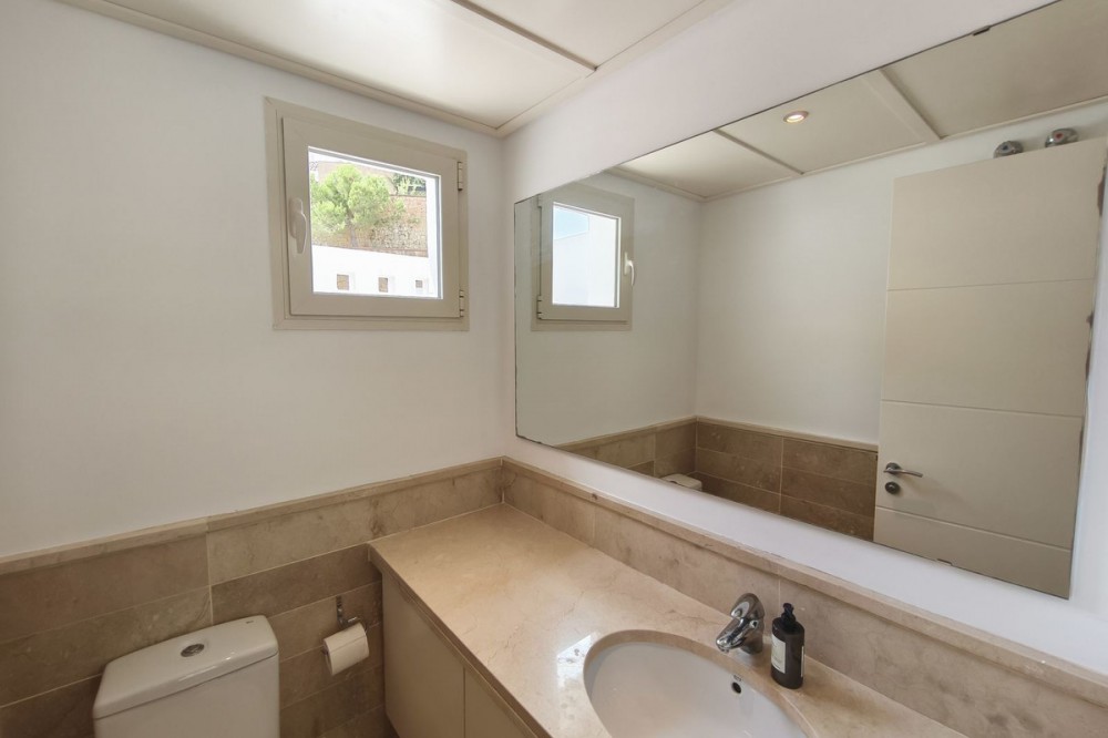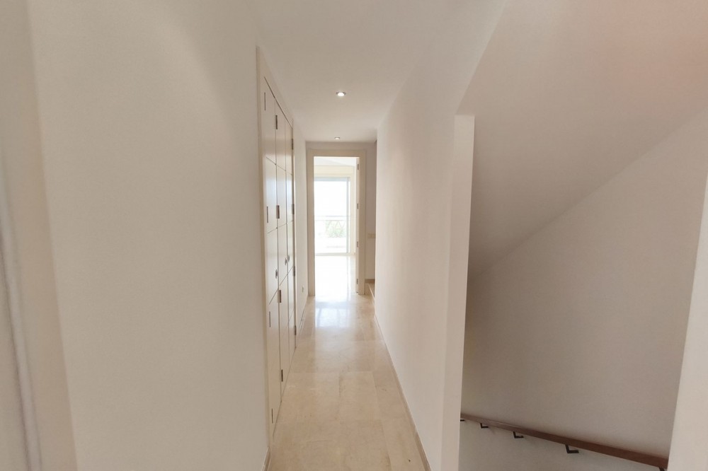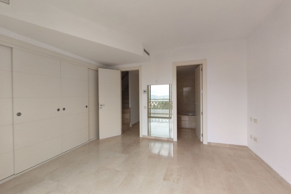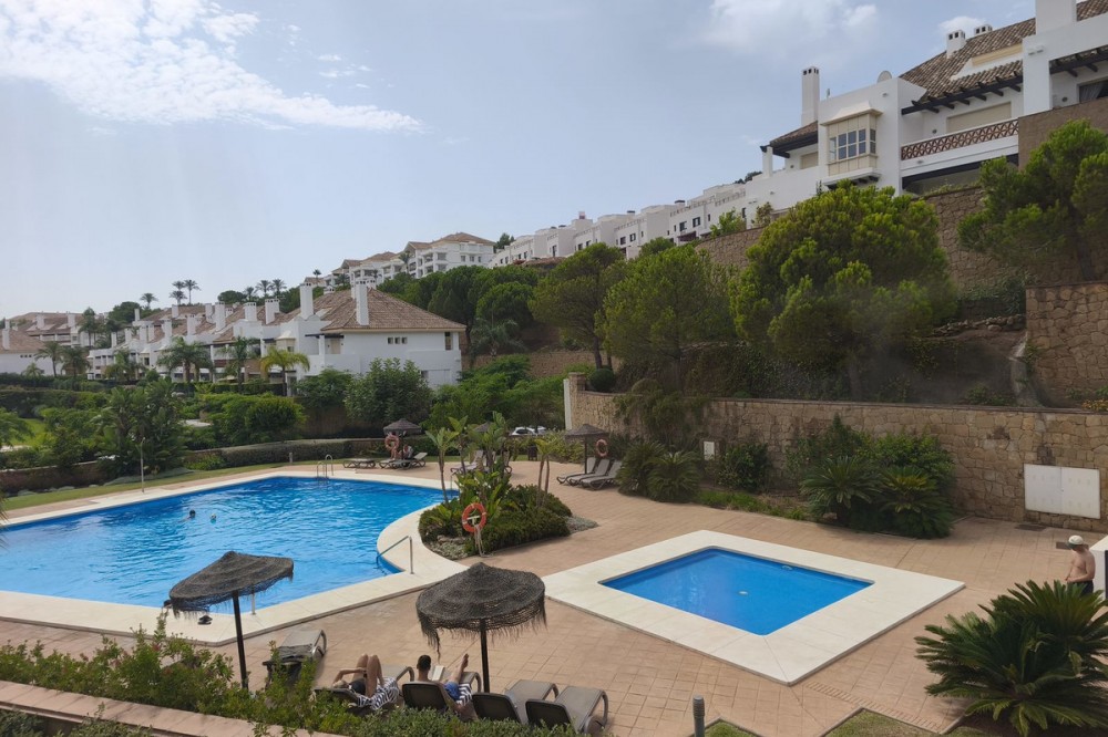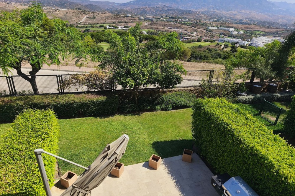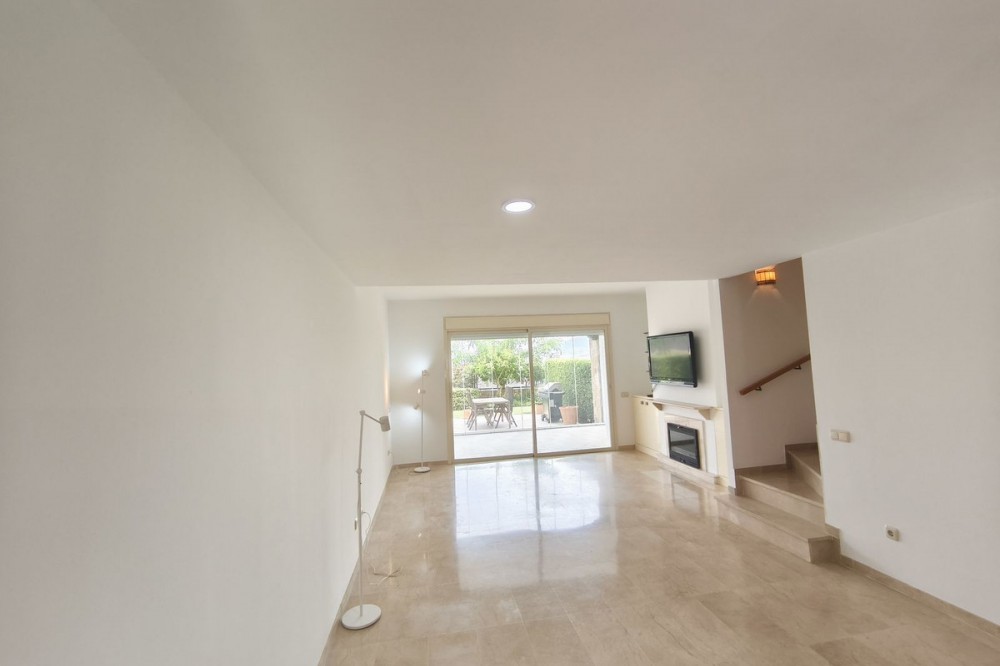 - This very spacious 3 double bedroom, 3 bathroom townhouse is spread over 4 floors and offers a family a fabulous opportunity to enjoy holidays or residence in high-end quality surroundings. Urbanisation Monte Alto is situated in a desirable area of La Cala Golf Resort, an area known for luxury living and just a 10 minute drive from the beaches and amenities of La Cala de Mijas. There are wonderful panoramic views to mountains and coast as well as facilities such as a clubhouse, tennis courts, and Hotel/Spa – all within 25 minutes walking distance. The complex itself offers a choice of communal pools and the closest (kid’s pool too) is located just 10 metres away from the front door of the house. Set in beautifully landscaped gardens, Monte Alto is a gated community offering enhanced security for its residents, and also plenty of guest parking. On entering the house, past the hall area you arrive in the large open plan living area, with working fireplace to create some cosy winter evenings and a glassed in terrace offering even more extra living space. Outside there is a further terrace for outside dining and garden area – both which are kept immaculately maintained by the Community gardeners. On this floor you will also find a guest toilet, fully fitted kitchen, and an exterior secure utility area. On the first floor, we have two bedrooms, both ensuite with full walls of storage space and wardrobes. On the top floor, we have the 3rd bedroom, ensuite, with fitted wardrobes and two extra storage rooms to house office, toys etc. All the bathrooms in the property have underfloor heating, it is fully airconditioned (hot/cold) and there is a private garage in the basement with space for a large SUV as well as a fully equipped laundry area. What do we love about this house? The space, the quality and the fact that it’s a blank canvas, freshly decorated in a neutral tone ready for it’s new occupants to start to enjoy. The peace and quiet – some of the houses in the complex are just holiday homes and others provide full time residential properties. There are a very few homes within the complex that are rented out to holiday makers but the majority remain private and NO further licences will be issued - ensuring peace and tranquility. Perfect for remote workers, golfers, or young families with children at school in either Elviria, Fuengirola or La Cala. The security – there are electric blinds covering the sliding doors and there are neighbours on both sides of the house. We have keys for very easy viewing and/or video call visits.