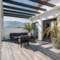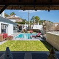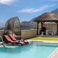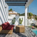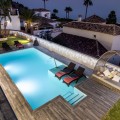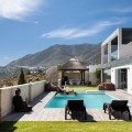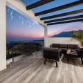 - Spectacular villa that perfectly blends Mediterranean style with contemporary design, combining traditional charm with modern comfort and top-quality finishes. Located in the prestigious Buena Vista area of Mijas, it offers a unique lifestyle in a peaceful and private setting, with stunning panoramic views of the Mediterranean Sea, the coastline, Africa, and the mountains. Set on a plot of 800 m² with a built area of 251 m², the property is in immaculate condition and ready to move into. Its location is unbeatable: just 5 minutes from Fuengirola, 2 minutes from the exclusive Higuerón commercial area with all kinds of services, 10 minutes from the finest beaches of the Costa del Sol, and only 20 minutes from Málaga city center and the airport. The villa is mainly distributed on one floor, ensuring functionality and comfort. Upon entering, the home immediately stands out for its brightness and sense of space thanks to the open-plan design. The modern fully fitted kitchen seamlessly integrates with the spacious living room with fireplace, creating a warm atmosphere that connects with the terraces and garden through large sliding doors. The exterior is a true private retreat, featuring a swimming pool with sunbathing area and hydromassage jet, a barbecue area ideal for outdoor gatherings, and a landscaped garden with fruit trees, all with open views to the sea and mountains. The property offers four bedrooms. The master bedroom, with en-suite bathroom and walk-in wardrobe, has direct access to a terrace with a private jacuzzi. Two additional bedrooms with their own bathrooms are located on the opposite wing of the house, ensuring privacy for family or guests. On the upper floor, a versatile space currently used as a gym with bathroom and private terrace can easily be converted into an independent suite with spectacular views. Additional features include a cinema room, sauna, laundry room, air conditioning, solar panels for hot water, and parking space for three vehicles, including a closed garage and covered carport. An ideal residence both for year-round living and as a luxury holiday home, perfect for those seeking privacy, comfort, and a strategic location on the Costa del Sol.