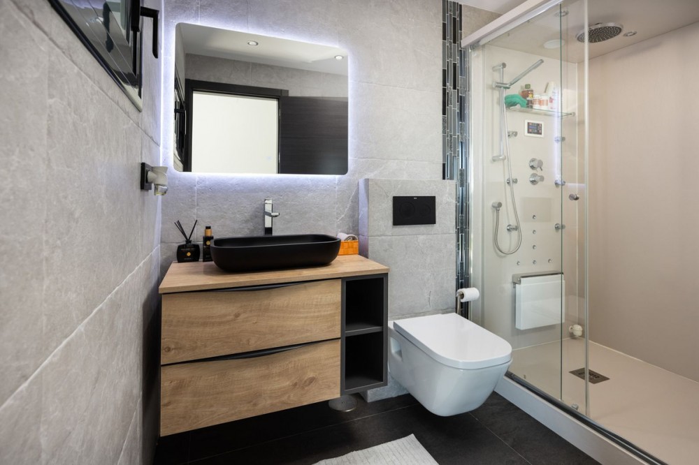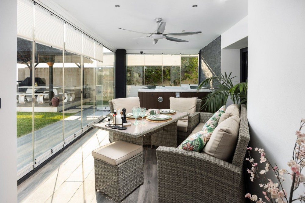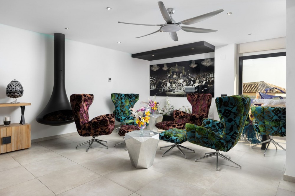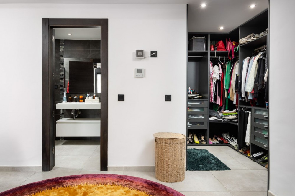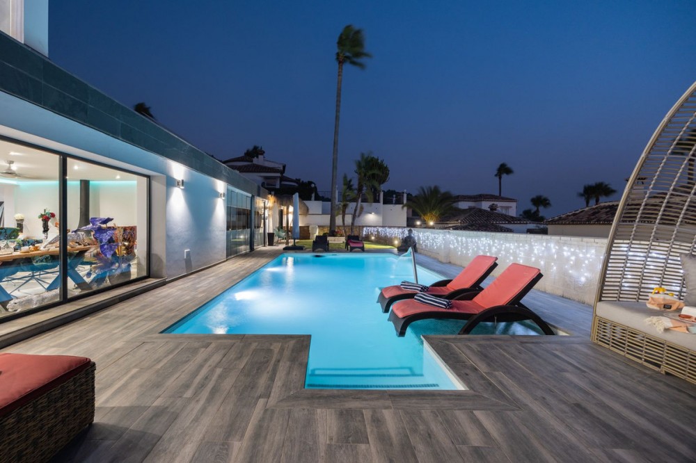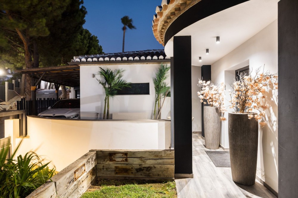 - Spectacular villa that perfectly blends Mediterranean style with contemporary design, combining traditional charm with modern comfort and top-quality finishes. Located in the prestigious Buena Vista area of Mijas, it offers a unique lifestyle in a peaceful and private setting, with stunning panoramic views of the Mediterranean Sea, the coastline, Africa, and the mountains. Set on a plot of 800 m² with a built area of 251 m², the property is in immaculate condition and ready to move into. Its location is unbeatable: just 5 minutes from Fuengirola, 2 minutes from the exclusive Higuerón commercial area with all kinds of services, 10 minutes from the finest beaches of the Costa del Sol, and only 20 minutes from Málaga city center and the airport. The villa is mainly distributed on one floor, ensuring functionality and comfort. Upon entering, the home immediately stands out for its brightness and sense of space thanks to the open-plan design. The modern fully fitted kitchen seamlessly integrates with the spacious living room with fireplace, creating a warm atmosphere that connects with the terraces and garden through large sliding doors. The exterior is a true private retreat, featuring a swimming pool with sunbathing area and hydromassage jet, a barbecue area ideal for outdoor gatherings, and a landscaped garden with fruit trees, all with open views to the sea and mountains. The property offers four bedrooms. The master bedroom, with en-suite bathroom and walk-in wardrobe, has direct access to a terrace with a private jacuzzi. Two additional bedrooms with their own bathrooms are located on the opposite wing of the house, ensuring privacy for family or guests. On the upper floor, a versatile space currently used as a gym with bathroom and private terrace can easily be converted into an independent suite with spectacular views. Additional features include a cinema room, sauna, laundry room, air conditioning, solar panels for hot water, and parking space for three vehicles, including a closed garage and covered carport. An ideal residence both for year-round living and as a luxury holiday home, perfect for those seeking privacy, comfort, and a strategic location on the Costa del Sol.