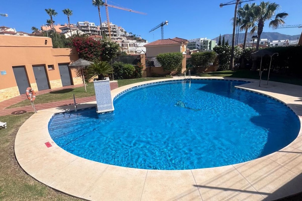 - Spectacular 3-storey semi-detached villa for sale very close to La Cala de Mijas! This modern, spacious and very bright 4-bedroom, 3-bathroom villa is built to the highest standards. It has air conditioning and heating in all rooms, built-in wardrobes, a fully equipped fitted kitchen, large terraces and a large solarium with beautiful sea views. The development is located in the heart of the Costa del Sol, in a quiet residential area, surrounded by golf courses and has a comfortable communal pool. The location is fantastic as it is only 5 minutes from the beach and the centre of La Cala de Mijas and 15 minutes from the centre of Marbella and via the A-7 it connects to large cities such as Estepona, Marbella, Fuengirola, Benalmádena and Malaga. 2 parking spaces included in the price. The semi-detached villa also has a beautiful attic (can be used as a fifth bedroom, office or storage room).