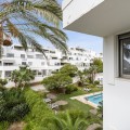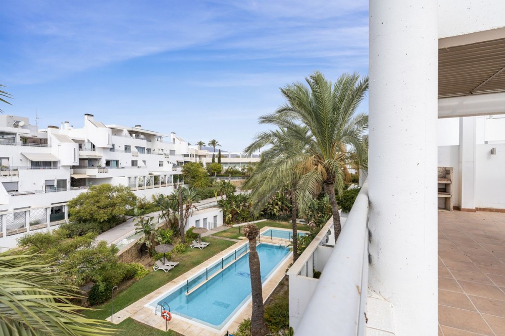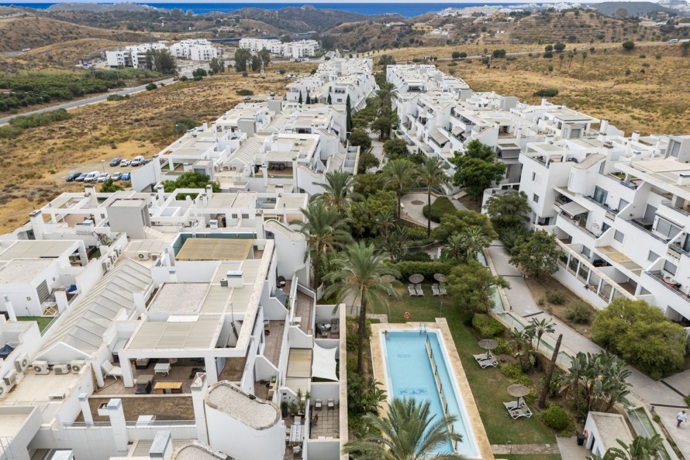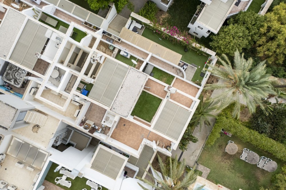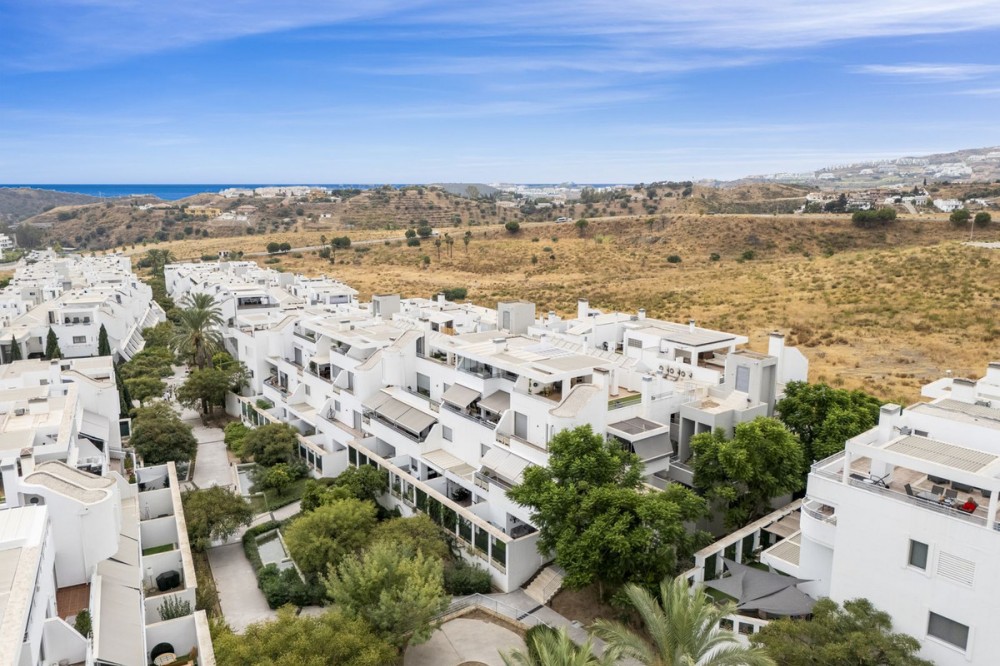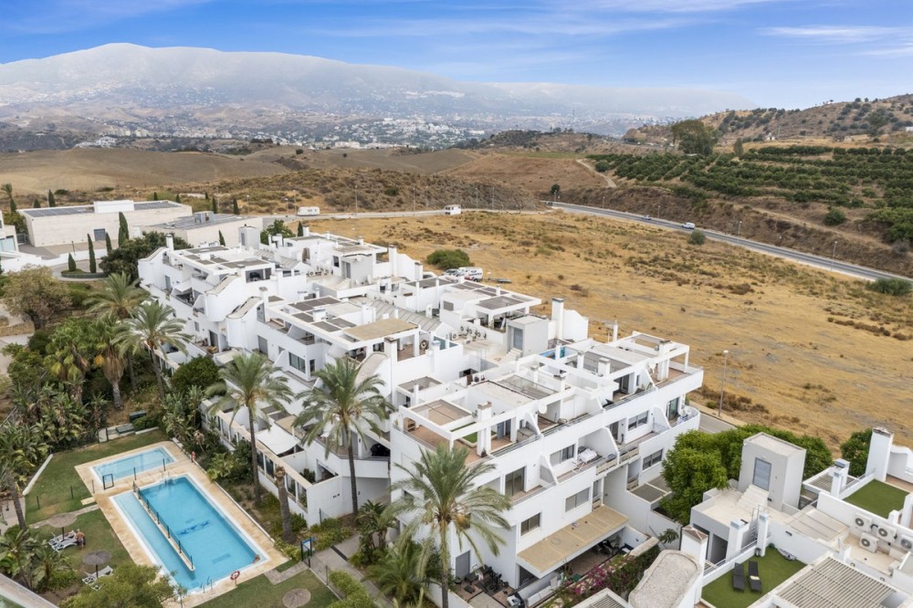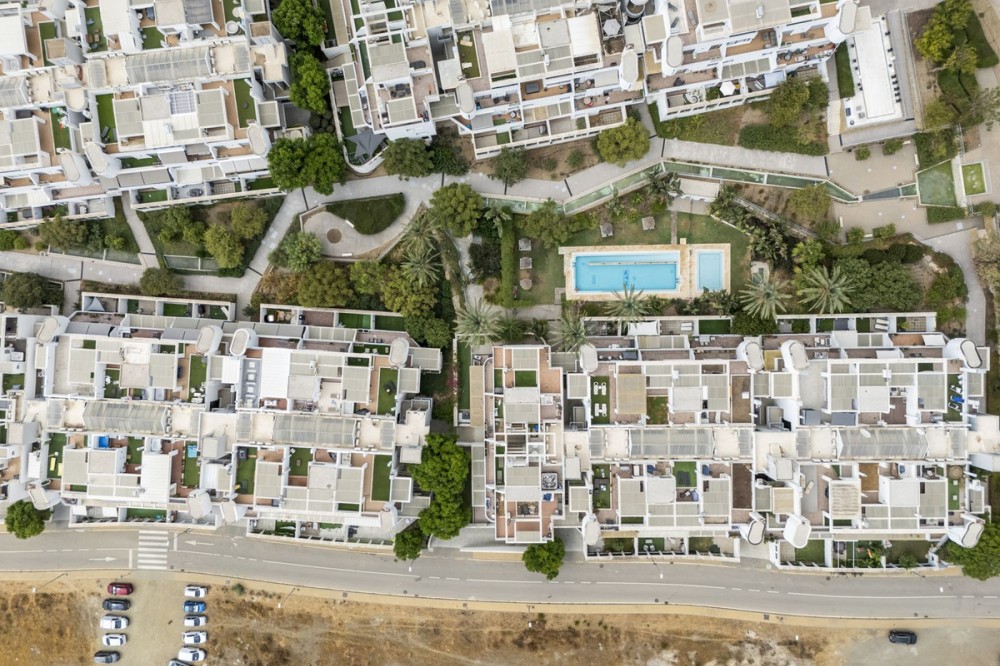 - This distinctive home is set across three levels within a sought-after community offering three swimming pools, extensive landscaped grounds, and concierge service. Entering at the middle level, you are welcomed by a spacious open-plan living and dining area with access to a lovely terrace, a separate kitchen with serving hatch, and a guest toilet. On the lower level, you’ll find three bedrooms, including a master suite with en-suite bathroom plus another bathroom, while the top floor boasts a large solarium, perfect for relaxing in the sunshine or having a BBQ with friends. The property is equipped with air conditioning throughout with an advanced AirZone system, a fireplace for cozy evenings, underfloor heating in the bathrooms, and electric shutters. Ideally positioned close to one of the communal pools, this home combines comfort, privacy, and excellent on-site facilities. Included is a 20m2 storage room plus underground parking space.