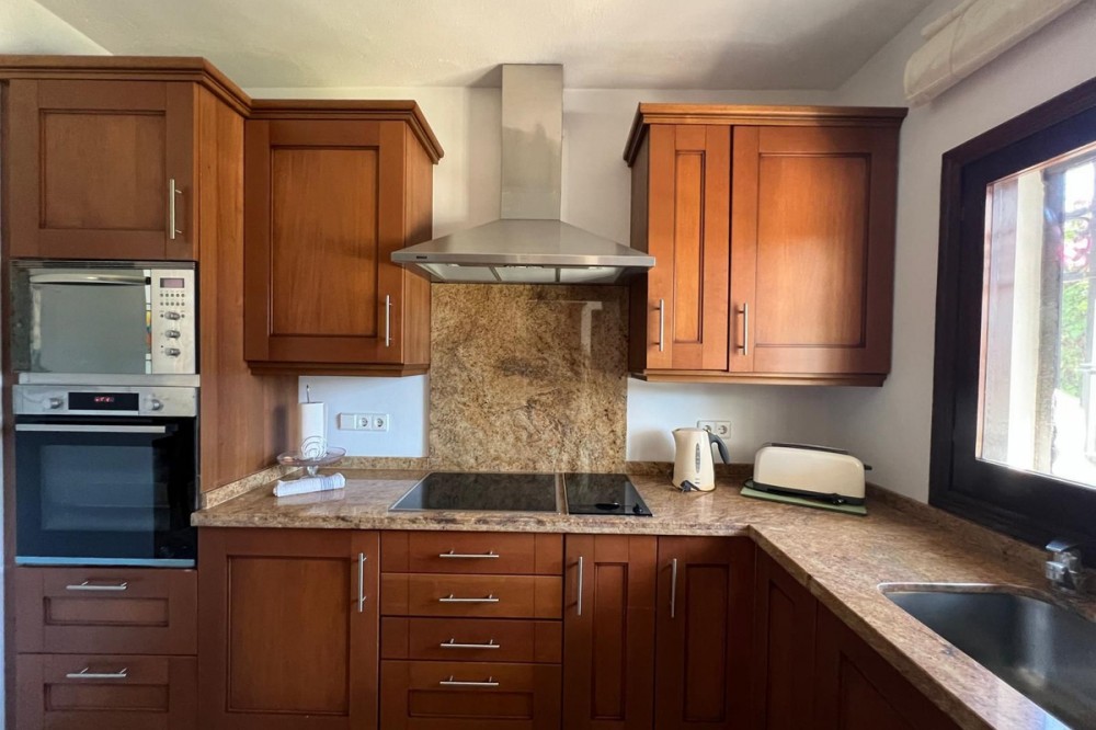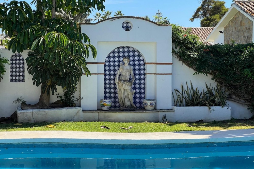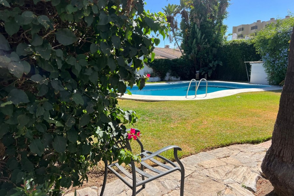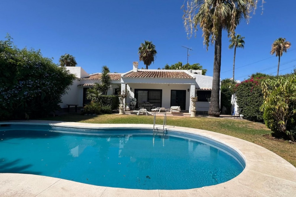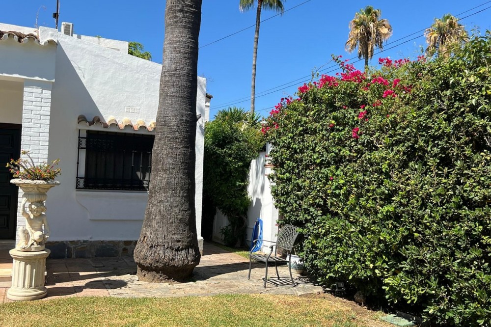 - Villa in Atalaya Baja, Estepona – Spacious, Bright & Full of Potential Located in the exclusive Atalaya Baja urbanization, this charming detached villa sits on a generous 563 m² private plot, offering ample outdoor space and privacy in one of Estepona’s most desirable residential areas. The home is arranged over a single floor for easy, comfortable living, with a total built area of 141 m², complemented by a covered porch and a utility patio. Step inside via the spacious porch to a welcoming entrance hall, leading to a large, bright living room featuring a beautiful French-style fireplace—perfect for relaxing with family or entertaining guests. The living room is bathed in natural light thanks to impressive sliding glass doors which offer direct access to the covered terrace and garden. The open-plan dining area connects seamlessly to both the lounge and kitchen. The kitchen itself comes fully equipped, with a handy pass-through to the dining space, and direct access to a private laundry patio for added convenience. The sleeping area is well-separated for privacy, comprising three comfortable bedrooms all with built-in wardrobes. The master bedroom features a walk-in wardrobe and an end-suite bathroom for maximum comfort. There are also two full bathrooms, designed for family living or guest accommodation. Outdoors, the villa offers a sunny garden with potential for landscaping, the installation of a swimming pool, and multiple spaces for outdoor entertaining, relaxation, or play. The plot enjoys a favorable orientation, ensuring natural light throughout the day. Prime location: Atalaya Baja is quiet yet extremely well-connected, positioned between Marbella and Estepona. It provides swift access to renowned international schools, top golf courses, supermarkets, restaurants, and is just minutes from the beach. Its proximity to San Pedro de Alcántara and Puerto Banús make it ideal for both year-round living or holidays. This property is ideal for families, retirees, or investors seeking a detached villa with space to personalize and excellent long-term potential in a consolidated area of the Costa del Sol.