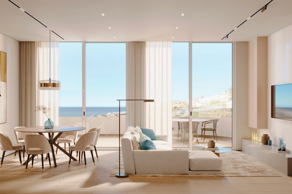 - New Development: Prices from €497,000 to €658,000. [Bedrooms: 2 - 4] [Bathrooms: 2] [Built size: 107m2 - 164m2]. Luxury modern-style development comprising 41 homes of the highest construction quality, with stunning views of the sea and the bay of Malaga. Designed by the renowned architectural firm MORPH, it features large terraces and spacious, square floor plans. Accompanying the magnificent views are an indoor and outdoor gym, sauna, infinity pool and home cinema room. Its south-west orientation will provide you with beautiful sunsets in a very quiet residential area, just 660 metres from magnificent beaches.