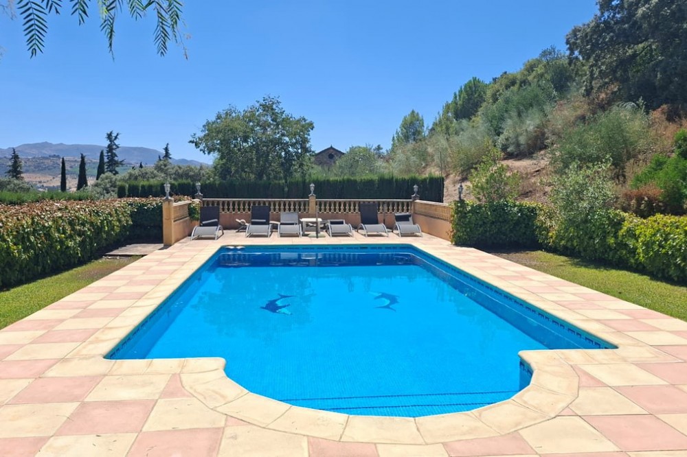 - ✨ Charming country house with private pool and tourist license 10 minutes from Ronda ✨ We present a unique country house that combines nature, comfort, and versatility in a privileged setting. Located just a 10-minute drive from the center of Ronda, this property offers everything you need for both peaceful living and rural tourism. The main villa features three spacious bedrooms, two full bathrooms, and a bright living room with an open kitchen and fireplace, creating a warm and inviting space for sharing with family or guests. It also has air conditioning, a large porch, and an outdoor entertainment area with a summer kitchen and barbecue, ideal for enjoying the outdoors year-round. The property is complemented by a private, fenced pool with a sun terrace, surrounded by nature and offering stunning panoramic mountain views, perfect for relaxing in an exclusive setting of peace and beauty. Outside, we find a productive olive grove with the possibility of producing our own oil, a woodland area with scrub oaks, cork oaks, and holm oaks, as well as several areas designated for animals: stables, a kennel, and a fenced area for semi-free roaming. The property has a valid tourist license, making it an excellent opportunity for those seeking profitability in the tourism sector. Its access is easy and direct via a paved road, making it easy for both residents and visitors. ✔️ 3-bedroom, 2-bathroom villa ✔️ Private, fenced pool with sun terrace ✔️ Panoramic mountain views ✔️ Tourist license ✔️ Olive grove in production ✔️ Stables, kennel, and fenced pet area ✔️ Air conditioning and fireplace ✔️ Outdoor kitchen with barbecue ✔️ Just 10 minutes from Ronda A versatile and well-equipped property, surrounded by nature and with everything you need to enjoy country living with today's comforts.