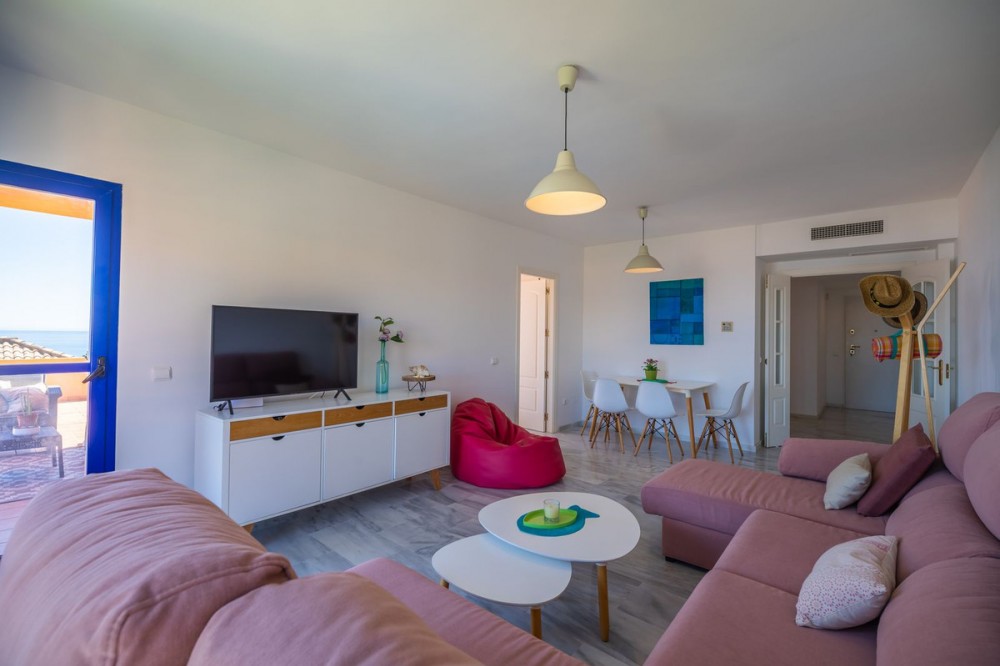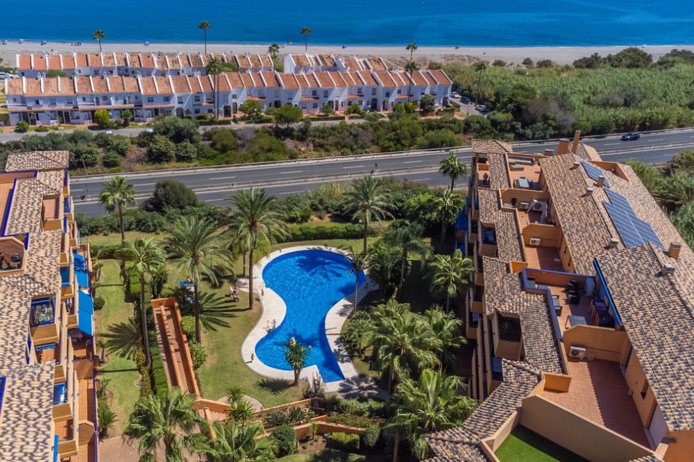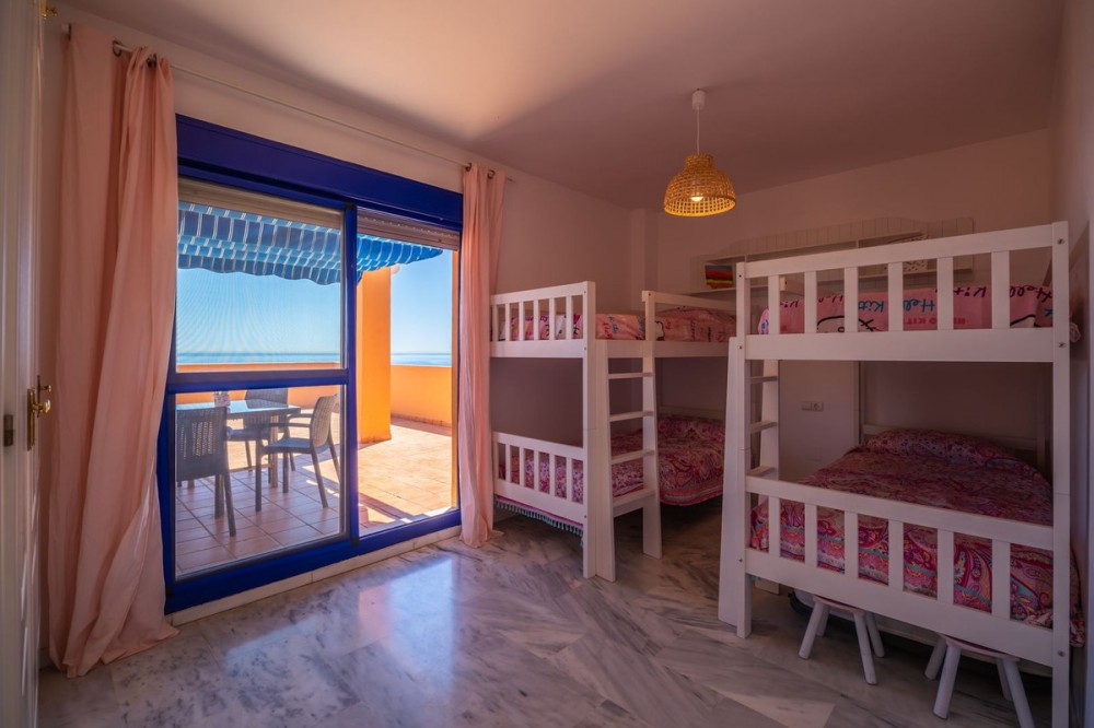 - Penthouse boasts an exceptional location in a peaceful and well-maintained residential complex on the Costa del Sol — perfect for those seeking a tranquil environment with close proximity to the sea. A pleasant walkway provides direct access to the beach, just a 3-minute walk away, allowing you to enjoy the coast without needing a car. This attractive penthouse is laid out on a single level and features 2 bedrooms, one of them with an en-suite bathroom, a separate kitchen, and a laundry area. The property stands out for its brightness, spaciousness, and especially for its private terrace offering impressive open views of both the sea and the mountains — an ideal setting to relax and enjoy the Mediterranean lifestyle. Thanks to its excellent orientation, the property enjoys natural light throughout the day, ensuring a warm and welcoming atmosphere all year round. Set within a well-kept community with a communal swimming pool, green areas, and an underground parking space included in the price. A property with excellent rental potential, both for holiday lets and long-term stays — also ideal as a permanent home or second residence. A highly recommended property, ready to move into and enjoy everything the Costa del Sol has to offer.
