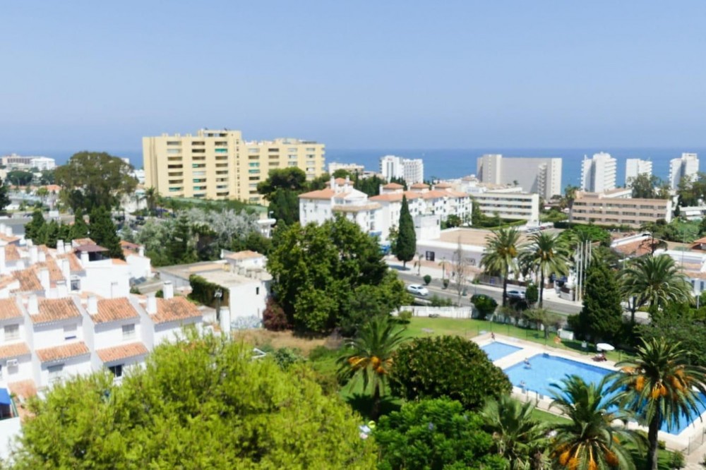 - Renovated Studio with Sea Views on the Top Floor – Puerto Marina, Benalmádena Located on the seventh and top floor of a well-maintained building, this bright, renovated studio offers stunning panoramic sea views and an excellent location, just steps from Puerto Marina and the beaches of Benalmádena. The property has been recently renovated with high-quality laminate flooring and features a functional layout that includes a private terrace, ideal for enjoying the Mediterranean climate and sea views. The complex features extensive communal gardens, a large swimming pool, and a sunbathing area. There is a private communal parking lot, adding convenience and value to the property. Ideal as a holiday home, rental investment, or second home.