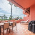 - Exceptional Frontline Beach Corner Apartment with Spectacular Views Experience coastal living at its finest in this stunning frontline beach corner apartment, which offers breathtaking views of the Mediterranean Sea and the majestic mountains beyond. Situated on the first floor of one of the most luxurious and sought-after apartment complexes along Estepona's New Golden Mile, this residence is a true gem. What sets this apartment apart are the two expansive terraces flanking both sides of the living area, providing not only ample outdoor space for relaxation and entertainment but also allowing an abundance of natural light to fill the interiors. The panoramic vistas from these terraces are truly mesmerizing, making every moment spent here a visual delight—no additional wall decoration is needed to enhance the beauty of your surroundings. The apartment features a welcoming hallway, a fully fitted kitchen with an adjacent utility room, a master bedroom with an en-suite bathroom and direct access to one of the generous terraces, a guest bedroom with its own small balcony, and a guest bathroom. The spacious layout offers the potential to convert the property into a three-bedroom home, as other similar units in the complex have successfully done. Sold partially furnished, it also includes an underground garage space and a storage room. Residents of this gated community enjoy 24/7 security and concierge services, alongside beautifully maintained tropical gardens, tranquil water ponds, two inviting swimming pool areas, and an indoor gym. We highly recommend scheduling a viewing to fully appreciate the spectacular views and luxurious lifestyle this remarkable apartment offers!
