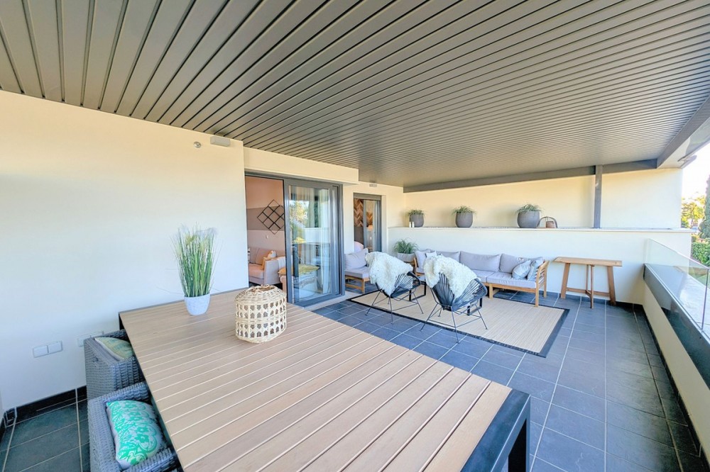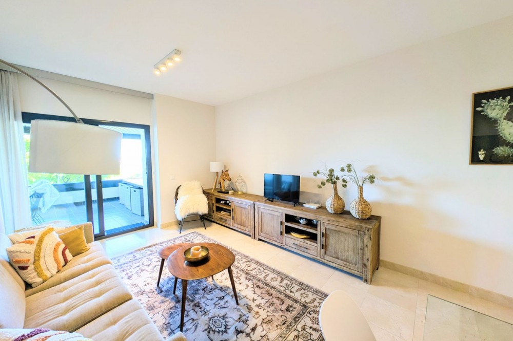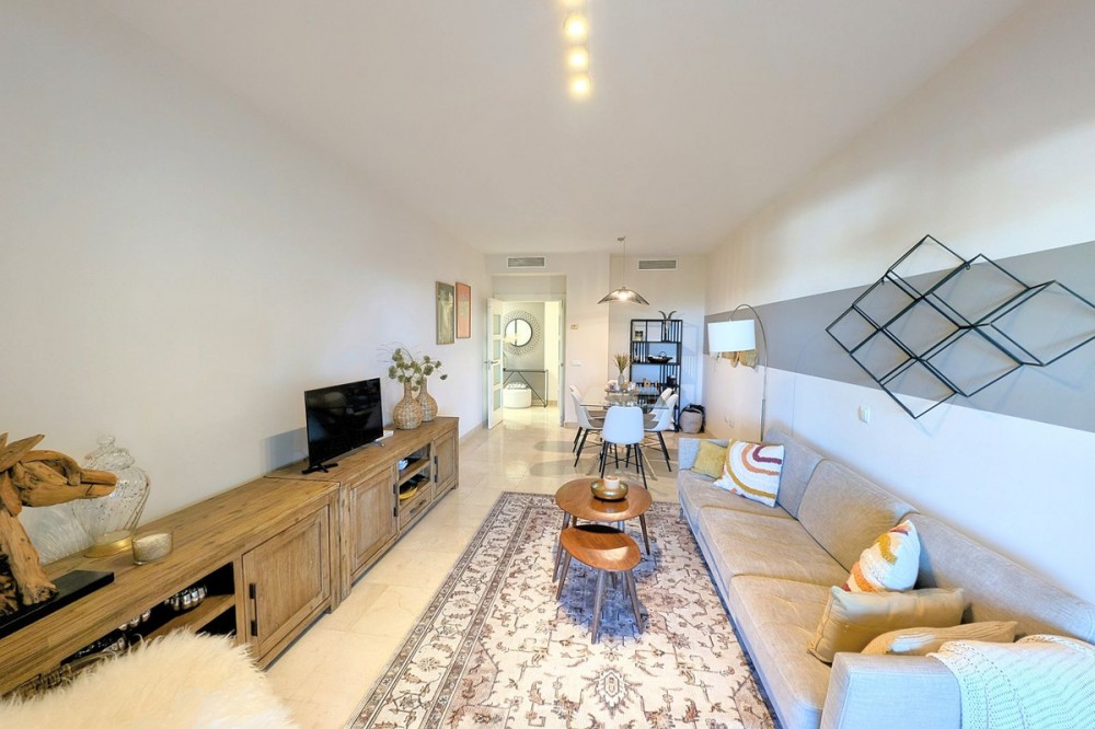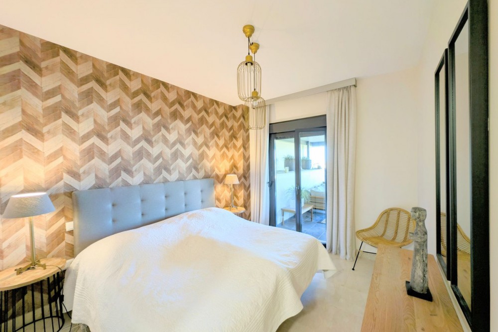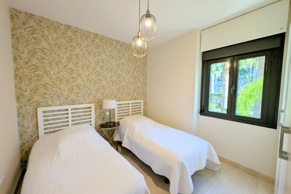 - This beautifully furnished 2-bedroom apartment is located in the prestigious complex of Hoyo 19, within the exclusive Los Flamingos Golf Resort in Benahavis. The apartment offers a perfect blend of comfort and luxury, featuring hot and cold air conditioning, elegant marble floors, and a spacious master bedroom with an en-suite bathroom and fitted wardrobes. The fully fitted kitchen is ideal for preparing meals, and the property includes secure underground parking with direct lift access, providing convenience and privacy. The apartment boasts a large, private terrace with stunning south-western orientation, perfect for enjoying breathtaking views of the coast and the Mediterranean Sea, especially during sunset. Set within a secure, private urbanization, this home is surrounded by beautifully manicured gardens. Residents can enjoy excellent amenities such as two swimming pools, padel tennis courts, a children's playground, and a putting green to perfect your golf skills. With two parking spaces, this apartment offers added convenience and ease of access. Los Flamingos Resort is home to three renowned golf courses and the prestigious Villa Padierna Hotel, Spa, and Beach Club. Just a short drive from Marbella, Puerto Banus, and Estepona, this exclusive address is ideally located close to all local amenities while offering tranquility and privacy.