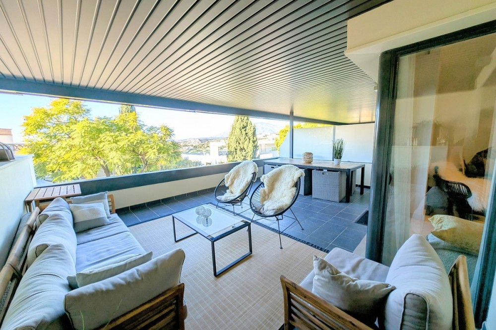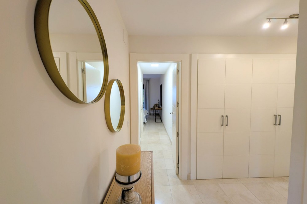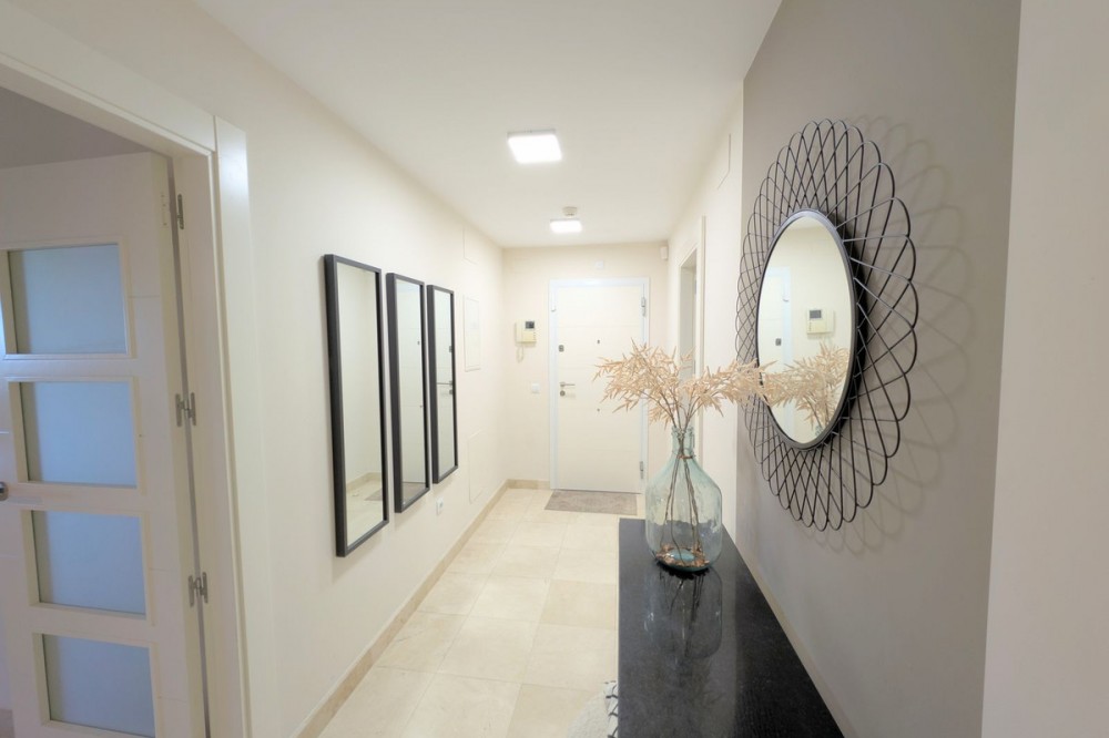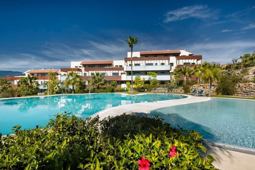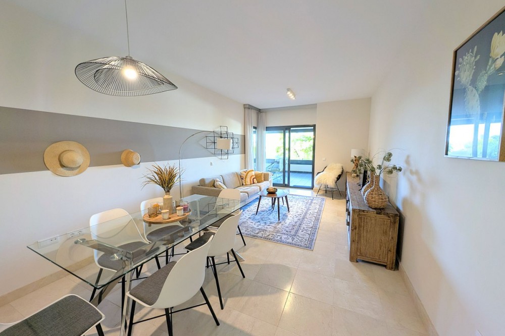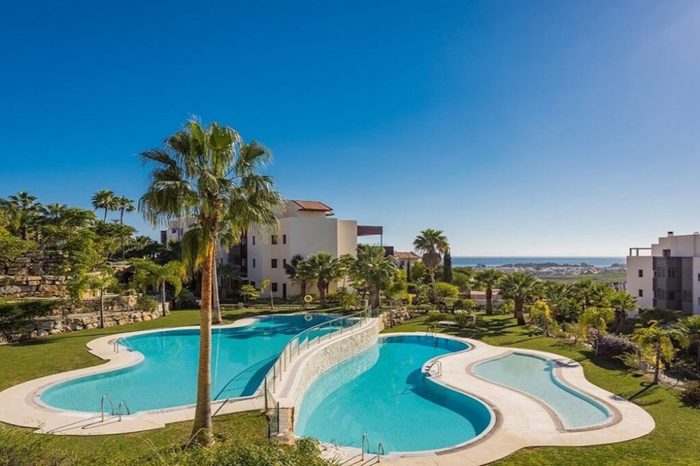 - This beautifully furnished 2-bedroom apartment is located in the prestigious complex of Hoyo 19, within the exclusive Los Flamingos Golf Resort in Benahavis. The apartment offers a perfect blend of comfort and luxury, featuring hot and cold air conditioning, elegant marble floors, and a spacious master bedroom with an en-suite bathroom and fitted wardrobes. The fully fitted kitchen is ideal for preparing meals, and the property includes secure underground parking with direct lift access, providing convenience and privacy. The apartment boasts a large, private terrace with stunning south-western orientation, perfect for enjoying breathtaking views of the coast and the Mediterranean Sea, especially during sunset. Set within a secure, private urbanization, this home is surrounded by beautifully manicured gardens. Residents can enjoy excellent amenities such as two swimming pools, padel tennis courts, a children's playground, and a putting green to perfect your golf skills. With two parking spaces, this apartment offers added convenience and ease of access. Los Flamingos Resort is home to three renowned golf courses and the prestigious Villa Padierna Hotel, Spa, and Beach Club. Just a short drive from Marbella, Puerto Banus, and Estepona, this exclusive address is ideally located close to all local amenities while offering tranquility and privacy.