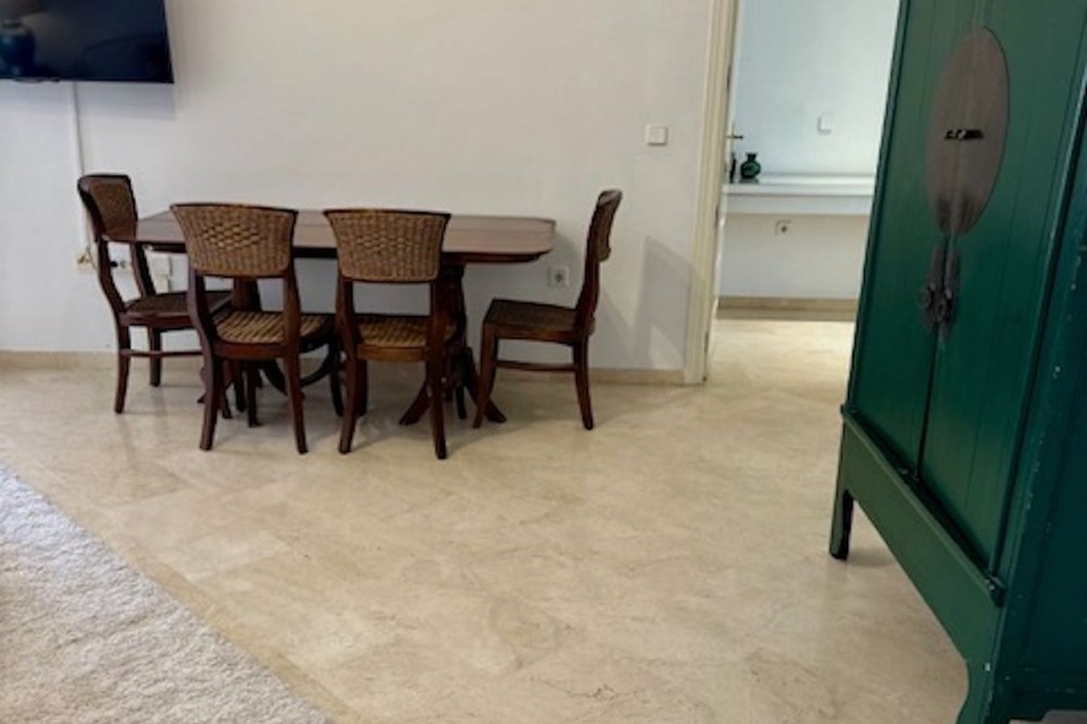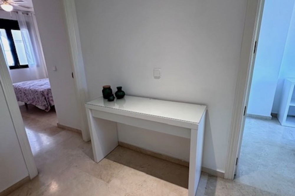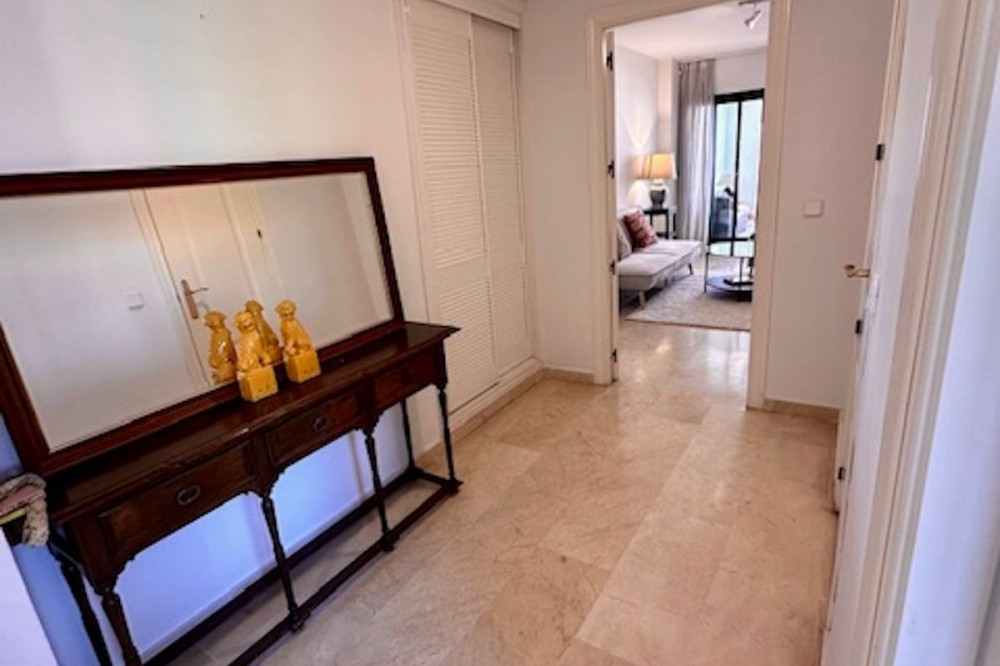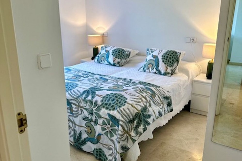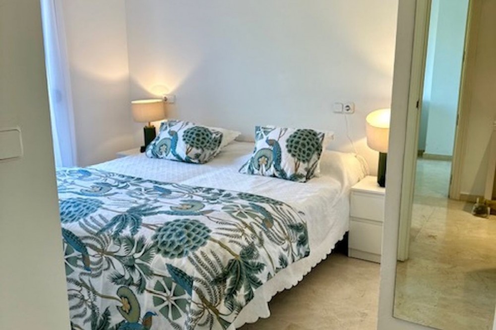 - Magnificent apartment for sale in one of the best areas of San Pedro de Alcantara (Marbella). Nueva Alcantara, on the beachfront and of course with wonderful sea views and a pool. This magnificent property is located right next to the Nueva Alcantara Paddle Club, walking distance to the sea, and strategically within walking distance of the town of San Pedro and its shops. The location is ideal! We describe the property as follows: The apartment is located on the first floor of the building. A very spacious entrance hall, a bright and spacious kitchen to the right, with a large window overlooking the community, and a separate laundry area. In the hallway, we find a guest bathroom and enter the spacious living-dining room with access to a large terrace (approximately 25 m2) with direct views of the pool and the sea! The home has three magnificent bedrooms, two of which are quite spacious. The master bedroom has an en-suite bathroom, and all have balconies overlooking the beautiful development. The third bedroom is slightly smaller and includes a study area. Here, we have another full bathroom shared with the two bedrooms (the home has two full bathrooms and a guest toilet). This is a very practical and bright apartment, ideal for a large family, and above all, in a prime location, where we can walk to the sea and enjoy life without having to use the car. The development includes a concierge, swimming pools, and beautiful gardens. The apartment has one underground garage for sale. Don't hesitate to call us to schedule your visit to the property. We'll be happy to assist you!