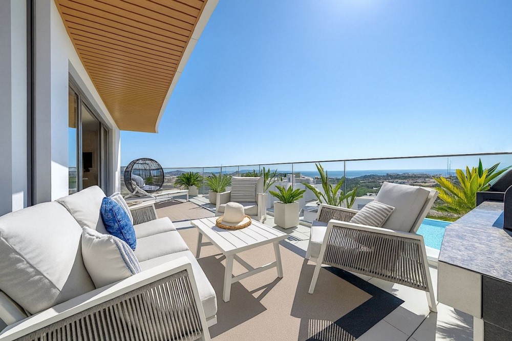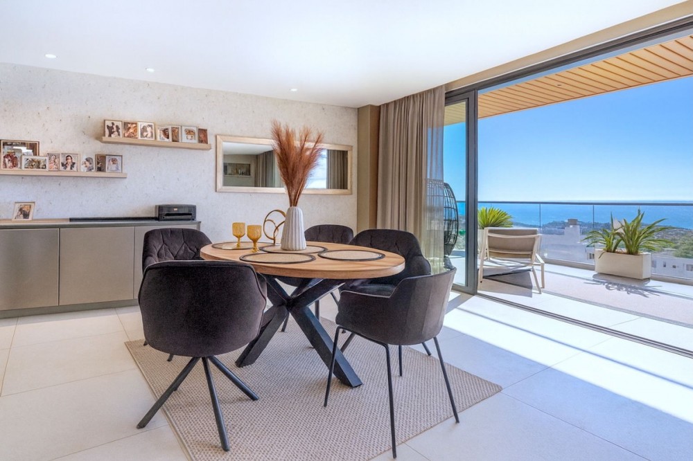 - Spectacular 3 bedrooms apartment with panoramic views of the sea facing the Calanova Golf Course. The property is located in the middle of the complex, it enjoys fantastic views and privacy. It has a large living-dining room, an equipped open-plan kitchen, 3 bedrooms with 3 en-suite bathrooms and a guest toilet. 2 parking spaces are included with direct elevator access and a large storage room. This property is designed using the best construction materials and the most modern technology on the market. It has hot/cold air conditioning controlled by the best Air Zone home automation control system, underfloor heating throughout the interior area, LED lighting, designer kitchen with NEFF appliances, dressing areas in the bedrooms and large porcelain floors. This amazing urbanization has the best common areas on the Costa del Sol, owners can enjoy an HD Home Cinema with the latest image and sound technology, gym, Premium wine cellar, social club, business centre and a complete SPA which includes a thermal area, Jacuzzi, sauna, Turkish bath and hydro massage showers. For those who like life outside, they can enjoy 2 outdoor pools, one of them infinity type with panoramic views of the sea; the other with a bar area and beach edge. It is a closed complex with a concierge service and security control with 24-hour surveillance cameras.