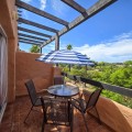 - Penthouse with Solarium and Panoramic Sea Views in Casares Playa This exclusive penthouse with a private solarium in Casares Playa combines space, natural light, and a privileged location on the Costa del Sol. The property features 2 bedrooms and 2 bathrooms, designed for comfort and privacy. The master bedroom has an en-suite bathroom and direct access to the terrace. The bright living-dining room with marble floors connects to a 6 m² terrace, perfect for outdoor breakfasts or relaxing moments. From here, stairs lead up to the spectacular private solarium of approximately 74 m², an outstanding space to sunbathe, host gatherings, or create your own chill-out area with unbeatable views. The apartment includes a fully equipped independent kitchen, air conditioning, a laundry area, and is sold furnished. It also comes with a private parking space and an 11 m² storage room, all included in the price. Located in a secure gated residential complex with video surveillance, it offers well-maintained communal gardens, an adult pool, and a children’s pool. There is also a children’s play area, and the complex is very close to a golf course, making it ideal for families as well as golf and nature lovers. Additionally, the facades of the development are currently being repainted, which will further enhance its appeal. The west-facing orientation ensures natural light all day long and spectacular sunsets. The location is unbeatable: just a few minutes’ drive from the beaches of Casares, Puerto de la Duquesa, and Sabinillas with their wide range of restaurants, shops, and services. Estepona is only 15 minutes away, Sotogrande 20 minutes, and Málaga Airport less than an hour. In summary, this penthouse with solarium is a unique opportunity to acquire a high-quality property in Casares Playa, perfect as a permanent residence, holiday home, or investment with excellent rental potential.