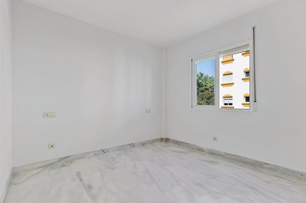 • This beautiful, fully exterior apartment stands out for its excellent location and natural brightness throughout. Located in a peaceful residential area of Marbella, it is just 400 meters from the sea and a short walk from the vibrant city center—offering the perfect balance between comfort, convenience, and tranquility. Public transport is available right on the same street, providing easy access to other parts of the city. The property is set in a well-maintained building with spectacular communal areas, including lush gardens and a large swimming pool—ideal for enjoying Marbella’s sunny days. The building also features a concierge service, adding an extra layer of security and convenience for residents. The apartment offers a functional layout and is designed to maximize natural light, with all rooms overlooking the beautifully landscaped gardens. The spacious, independent living room opens directly onto a large terrace—perfect for outdoor dining, relaxing, or entertaining guests in a green, serene setting. The kitchen is separate and includes an exterior utility/laundry space. The current floor plan allows for a very simple renovation that could open up the kitchen to the living room and entrance area, creating a bright and modern open-concept living space. The sleeping area consists of two double bedrooms, both with built-in wardrobes. The master bedroom is en suite with its own exterior bathroom, offering comfort and privacy. The second bedroom is also generously sized and is served by a second full independent bathroom—ideal for family or guests. Elegant marble flooring runs throughout the home and is in excellent condition, adding a timeless charm and freshness to the living space. The high-quality finishes and good upkeep make this apartment move-in ready, with the option of updating it with minimal renovation. The property also includes a large and convenient private parking space of 13 m² and a spacious 8.5 m² storage room—ideal for extra storage needs. Whether as a permanent residence or a holiday investment, this apartment is a rare find thanks to its unbeatable location near the sea, city center, and all services. A peaceful oasis with views of nature, excellent amenities, and superb potential in one of Marbella’s most desirable areas.