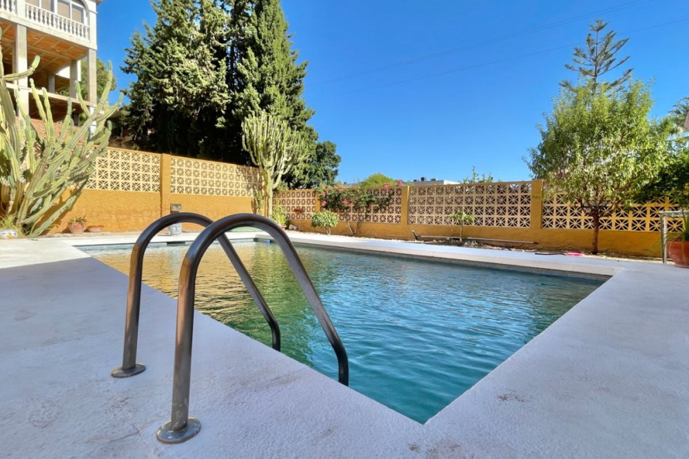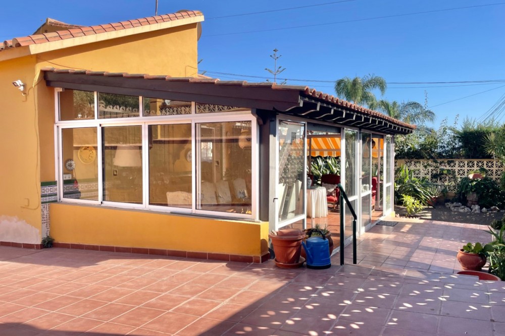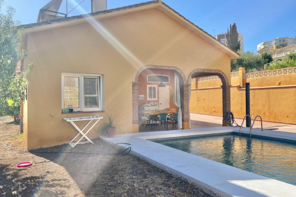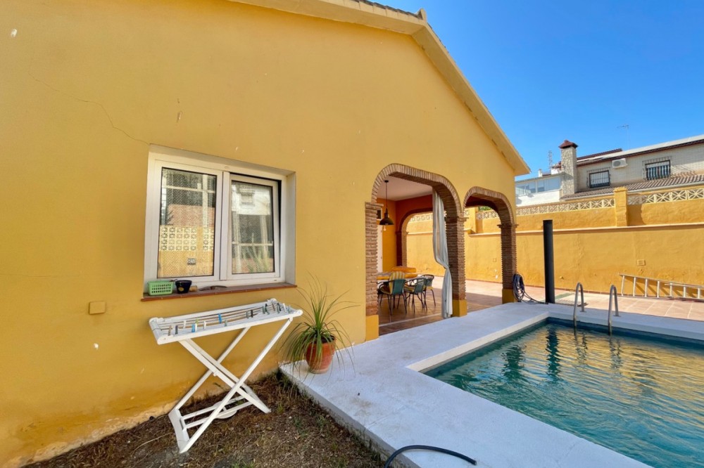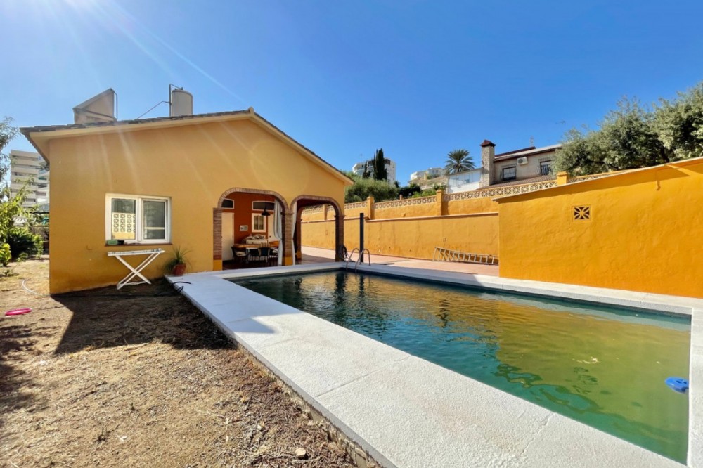 - Detached chalet 500 m from the sea in La Cala del Moral In a quiet residential area and just a few minutes' walk from the beach, this charming one-story chalet is situated on a 660 m² plot. The property offers 115 m² distributed over three spacious bedrooms with fitted wardrobes, three full bathrooms (one external, next to the pool), a bright living room with a fireplace and access to the garden, and a separate kitchen with access to a private patio. Outside, you will enjoy a private pool surrounded by landscaped areas, a garage with space for several vehicles, a storage room, and a southwest orientation that ensures sunlight all day long. It features marble floors, aluminum windows, solid wood doors, and a solar panel system. Additionally, there is the possibility to build a second floor. A comfortable home, well located, and with everything necessary for living or enjoying as a vacation residence. If you are interested, please do not hesitate to contact us for more information. We are available for online visits and via WhatsApp. We speak Spanish, English, Swedish, Dutch, French, German, and Italian.