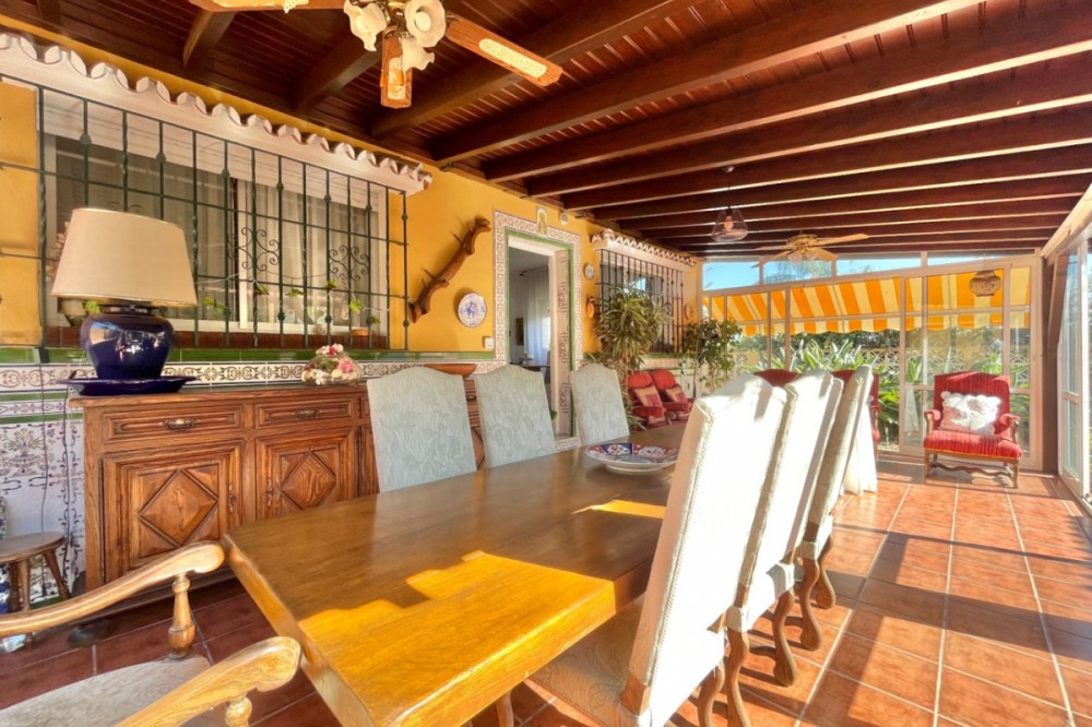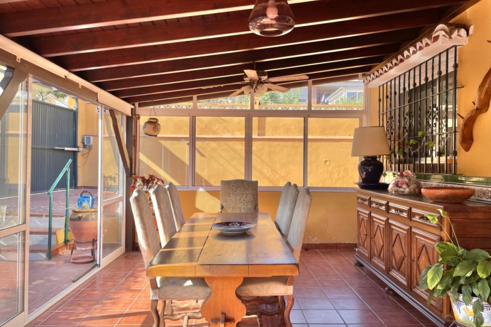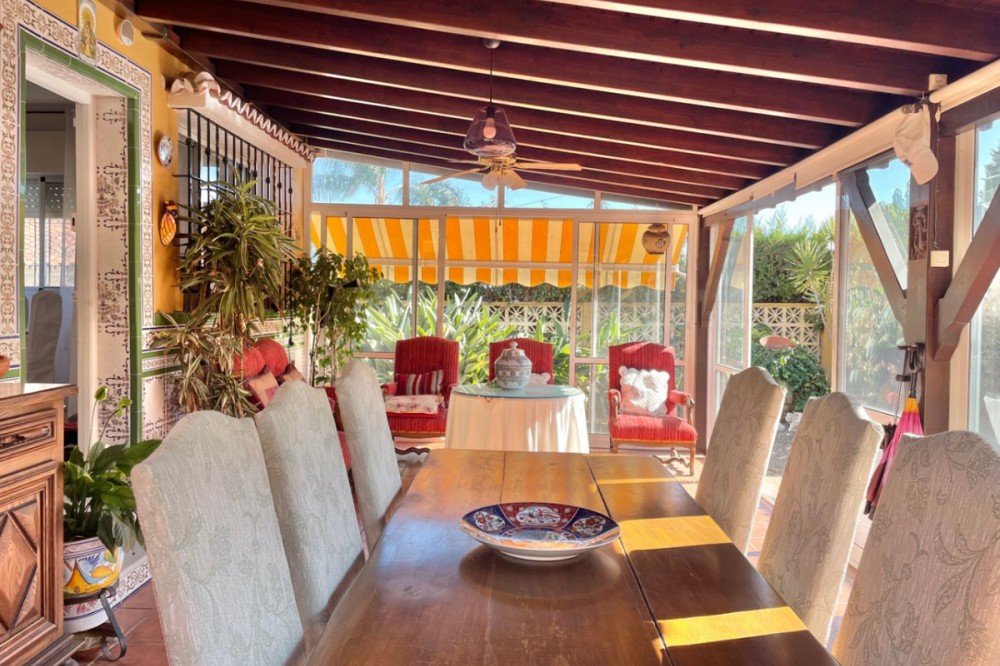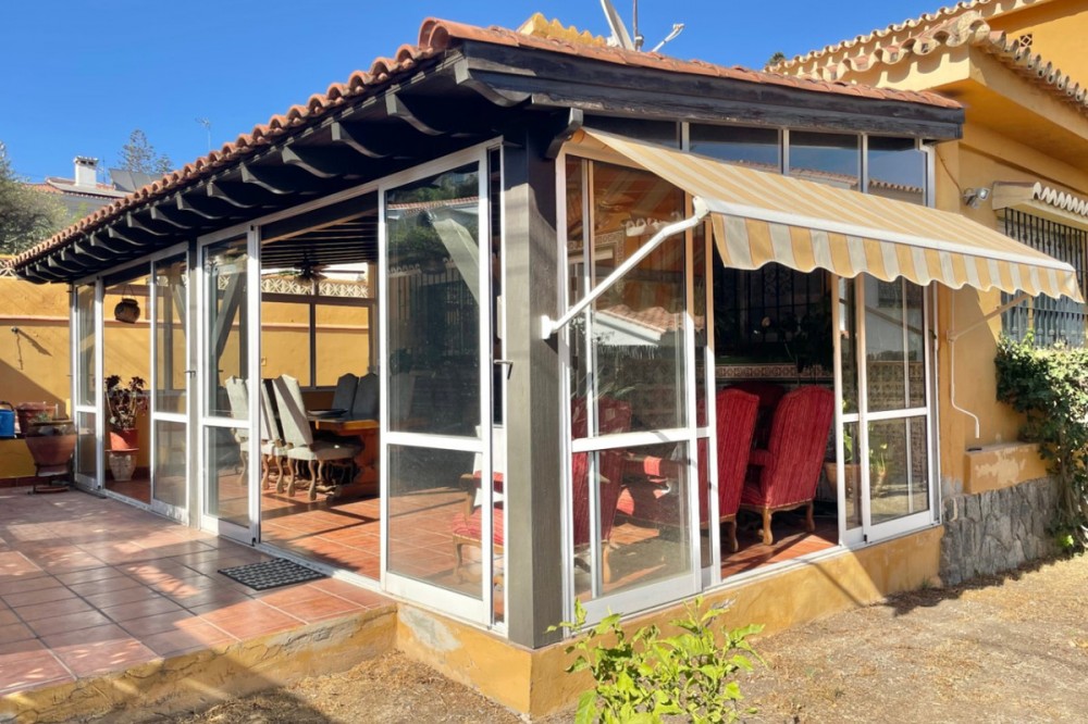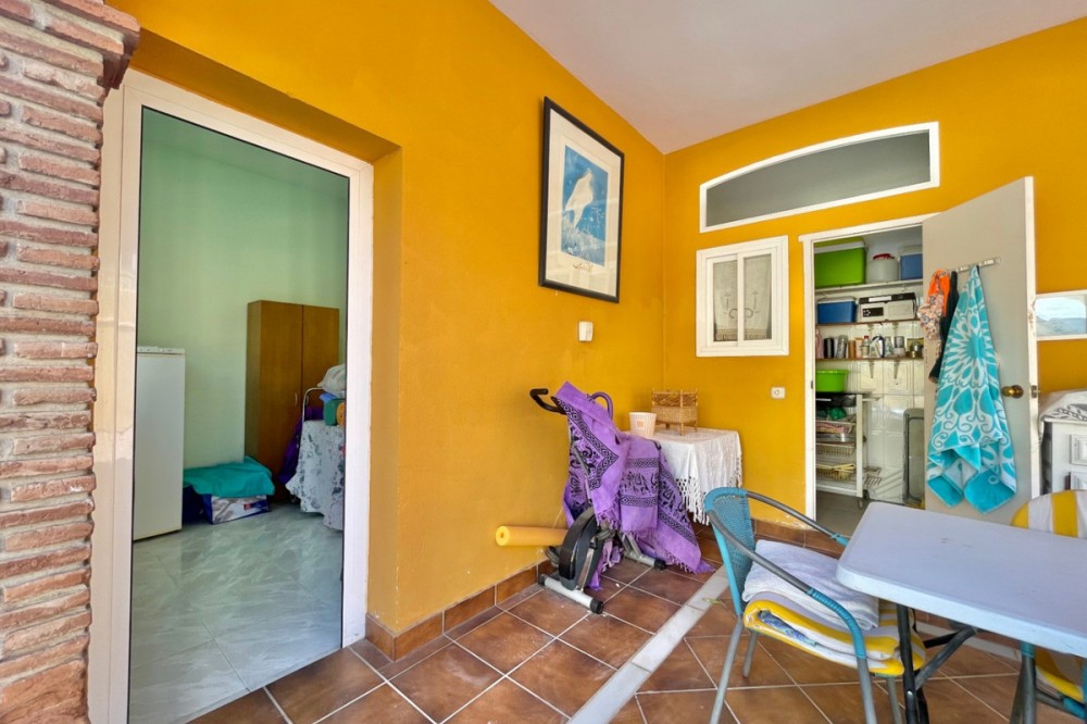 - Detached chalet 500 m from the sea in La Cala del Moral In a quiet residential area and just a few minutes' walk from the beach, this charming one-story chalet is situated on a 660 m² plot. The property offers 115 m² distributed over three spacious bedrooms with fitted wardrobes, three full bathrooms (one external, next to the pool), a bright living room with a fireplace and access to the garden, and a separate kitchen with access to a private patio. Outside, you will enjoy a private pool surrounded by landscaped areas, a garage with space for several vehicles, a storage room, and a southwest orientation that ensures sunlight all day long. It features marble floors, aluminum windows, solid wood doors, and a solar panel system. Additionally, there is the possibility to build a second floor. A comfortable home, well located, and with everything necessary for living or enjoying as a vacation residence. If you are interested, please do not hesitate to contact us for more information. We are available for online visits and via WhatsApp. We speak Spanish, English, Swedish, Dutch, French, German, and Italian.