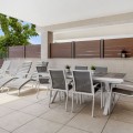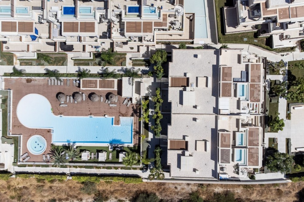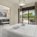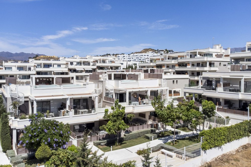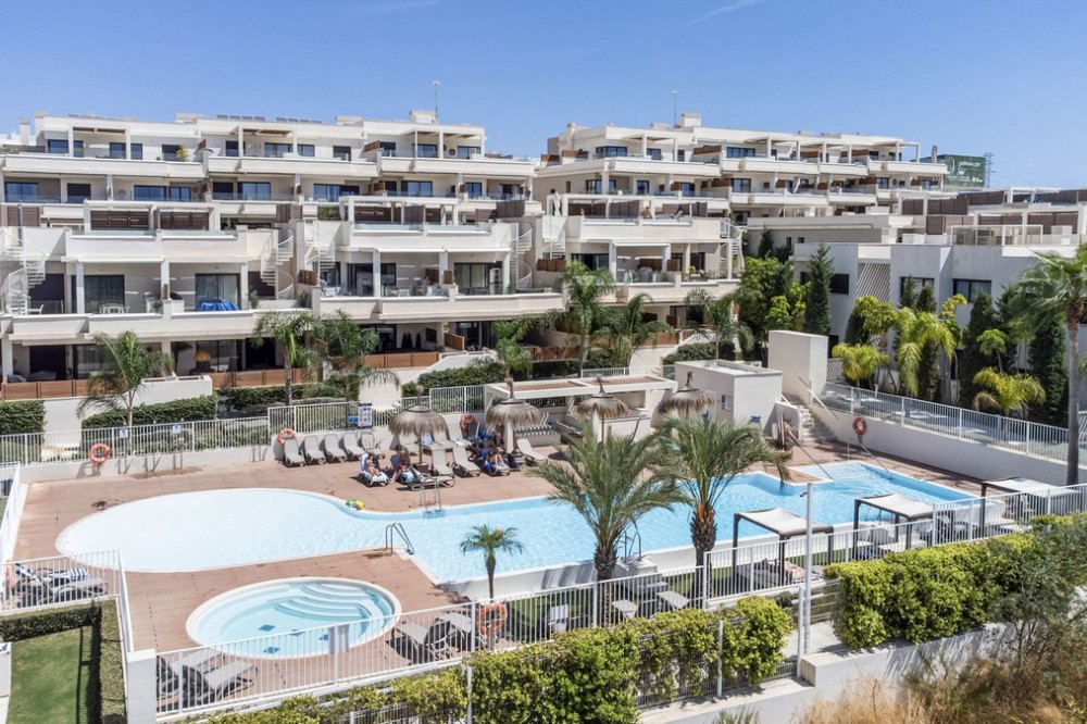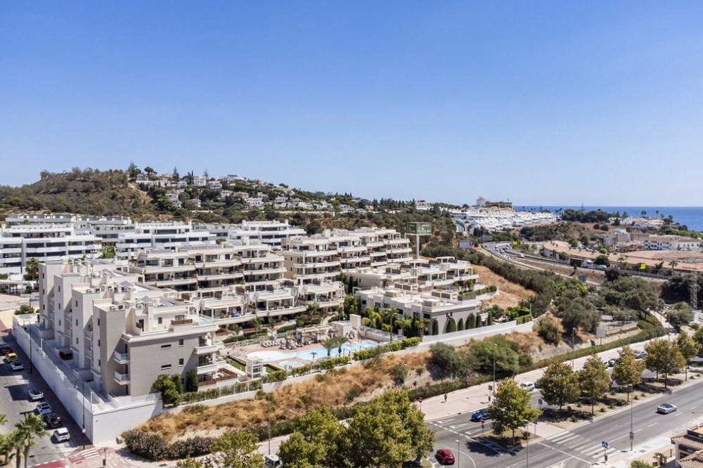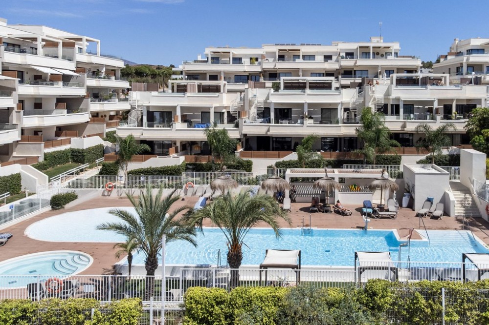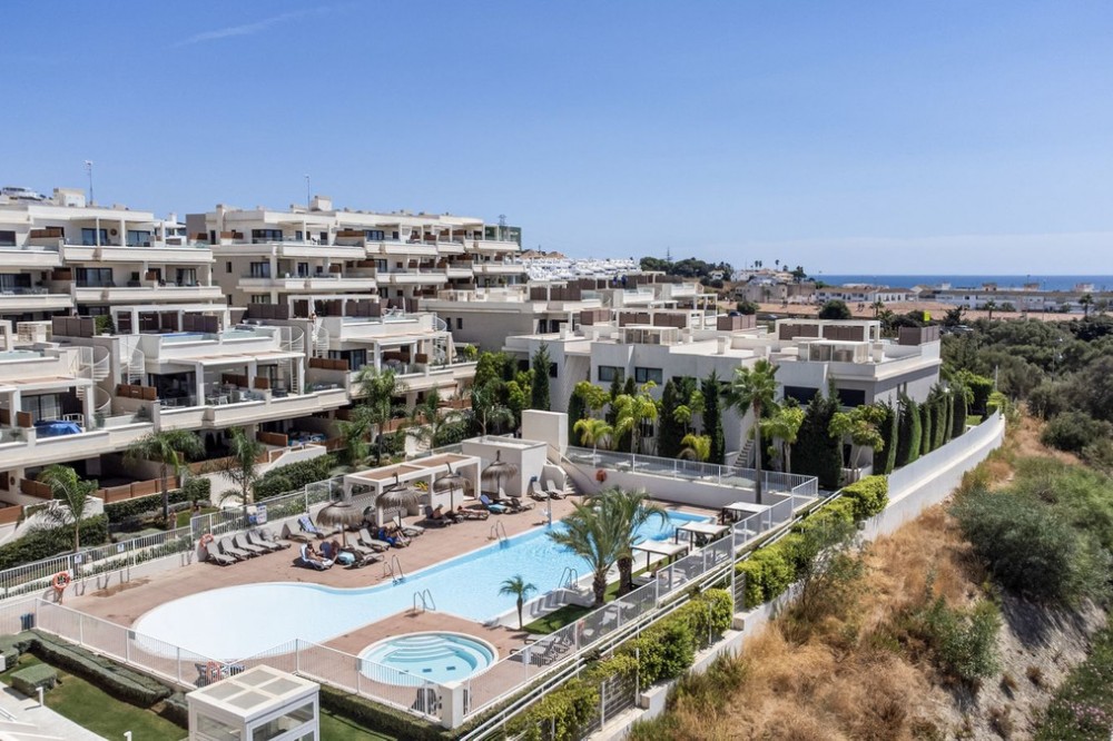- FANTASTIC APARTMENT WITHIN WALKING DISTANCE OF LA CALA DE MIJAS WITH TOURIST LICENSE!! This beautiful apartment in Jardinana Lotus is the ideal (holiday) apartment! The apartment features 3 bedrooms, 2 bathrooms, a separate toilet, a nice living room with an open kitchen equipped with all necessary appliances, and a stunning terrace of over 40 m2. Upon entering, there are two bedrooms with built-in wardrobes and a bathroom located at the back of the apartment. Both bedrooms have access to a small terrace. At the front of the apartment is the living room with a lovely open kitchen. From the living room, you can enter the terrace, and beautiful sliding doors that disappear into the wall make the terrace accessible. The terrace is fantastic; a dining table, sun loungers, and a spacious seating area available on this large terrace. From the living room, you can access the master bedroom. A spacious bedroom with built-in wardrobes and a private luxury bathroom. From this bedroom, there is also access to the terrace. The apartment comes with a spacious storage room and a parking space in the garage. The storage room and private parking space are located next to each other. The community has beautifully landscaped gardens and a lovely pool with luxury sun loungers. This beautiful apartment, less than a 5-minute walk from the stunning La Cala de Mijas, is definitely worth a visit; make an appointment for a viewing soon!
