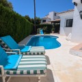 - Welcome to this spectacular corner semi-detached house, located just 250 meters from the promenade and the vibrant San Pedro boulevard! This area is renowned for being one of the most sought-after on the coast, showcasing notable growth in both residential and commercial sectors. The property is located within a private secure condo, another magnificent point to have in consideration. **Key Features:** - **Total Area:** Over 300 m² distributed across 4 levels. - **Private Plot:** Enjoy a beautiful mature garden equipped with a barbecue and private pool, ideal for relaxing and enjoying the warm climate. - **Parking:** Ample covered parking for two cars, adding convenience and security. **Interior Layout:** - **Basement (almost 100 m²):** A versatile space perfect for a game room, cinema, sauna, or entertainment area. - **Ground Floor:** Spacious and bright living room, and a separate kitchen linked to a lovely terrace. Includes a guest suite with built-in wardrobes and private bathroom, as well as a guest toilet. - **First Floor:** Three impeccably maintained bedrooms, perfect for family or guests. - **Solarium:** A standout space of approximately 60 m², with a pergola and open views of the sea and the majestic Sierra Blanca mountain. **Additional Amenities:** - Air conditioning and centralized gas heating, ensuring a comfortable environment year-round. - Charming details like an elegant fireplace and a custom-made staircase, adding a special touch to the home. **Ideal For:** This house is perfect for those looking for a cozy and comfortable home to live in year-round or to enjoy unforgettable summers. The property offers great privacy, abundant natural light, and a unique charm that can be appreciated through its many details. **Conclusion:** This magnificent property is being presented for the first time on the market, providing a unique opportunity to become the owner of a dream home in one of the best locations on the coast. Don’t miss the chance to visit and fall in love with its beauty and functionality! **Contact us for more information or to schedule a visit!**