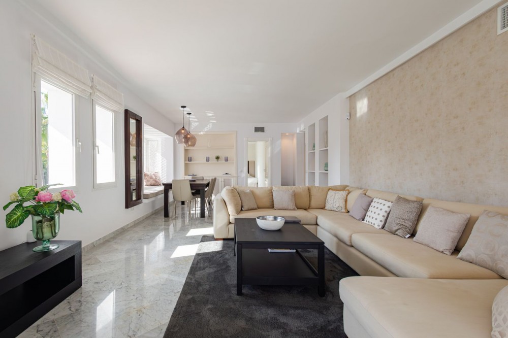 - Situated in the exclusive Puente Romano resort, this renovated south-facing corner penthouse offers a living experience that perfectly balances convenience with comfort. With stunning views from its dual-aspect windows, this residence captures the essence of Mediterranean living at its finest and offers a rare opportunity to purchase a corner penthouse in one of Europes most premium locations. THE RESIDENCE The penthouse spans 270 square meters of thoughtfully designed space, featuring four en-suite bedrooms, each recently updated with elegant finishes. The spacious main living area is filled with natural light, creating a warm and inviting atmosphere. One of the property's most distinctive features is its expansive roof terrace— which is part of over 70 square meters of private outdoor space that offers partial sea views and overlooks the lush award winning gardens and palm trees surrounding the resort. As the day winds down, this terrace becomes the perfect setting to enjoy Marbella's spectacular sunsets. The master suite includes a walk-in closet and a generous en-suite shower room designed for comfort and style. The recently fitted kitchen combines design with function, featuring high-quality appliances. THE SETTING Set within the prestigious Puente Romano—a 5-star resort with a charming village feel—this residence occupies a prime location on Marbella's coveted Golden Mile. The penthouse is surrounded by the resort's beautiful Andalusian Gardens, creating a tranquil retreat just moments from the Mediterranean. For residents, the location offers unmatched convenience: - Just a two-minute walk to the resort's boutique hotel and restaurants - Four minutes to the renowned Tennis Club - Six minutes to pristine sandy beaches The resort is home to some of the world's finest dining experiences, including Nobu, Cipriani, and Coya—ensuring exceptional dining options are always close at hand. THE LIFESTYLE This penthouse offers more than just a beautiful home—it provides access to a lifestyle centered around comfort, privacy, and enjoyment. From morning strolls along the beach to evenings spent hosting on your private terrace, this residence allows for effortless living in one of Europe's most desired locations. For those who value quality, privacy, and a prime location, this corner penthouse at Puente Romano represents an opportunity to embrace the very best of Marbella living.