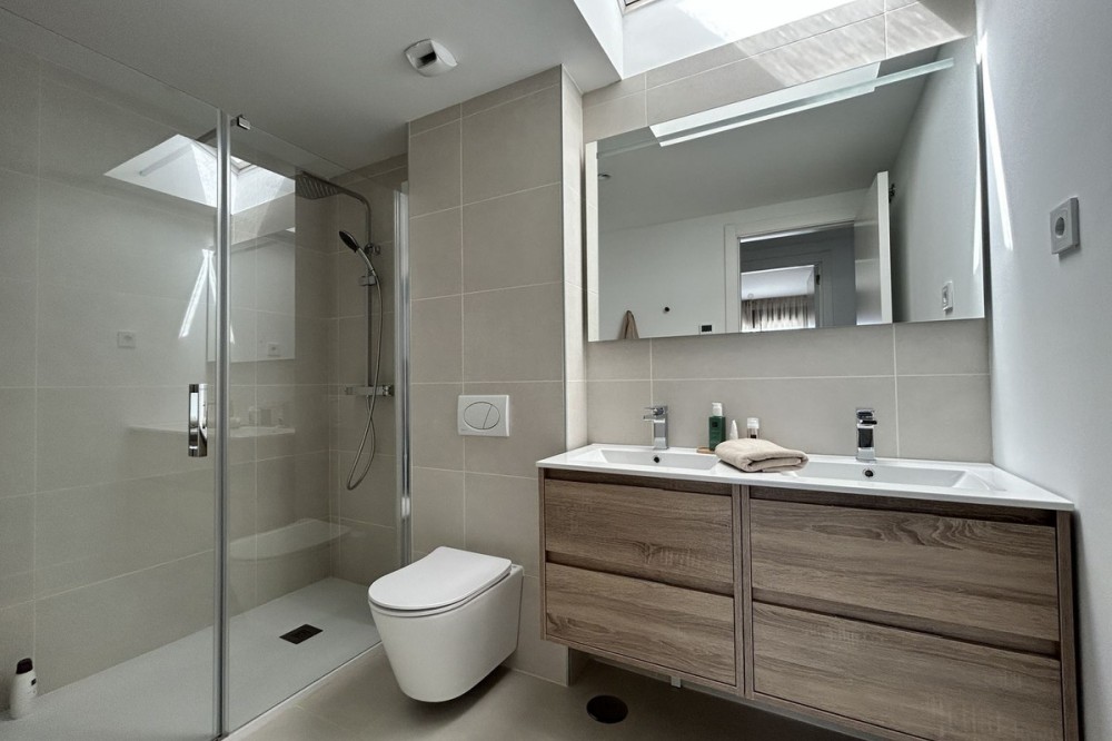 - Exclusive newly built penthouse with 3 bedrooms and a spacious south-facing terrace offering spectacular sea and mountain views. The home comes fully furnished with high-end designer pieces created by Ikonia Ilusion&Arte, highlighting the carefully designed lighting and spaciousness of each room. It features a home automation system and smoke detectors, as well as Jung appliances. The modern and functional kitchen features high and low cabinetry, a Silestone countertop, and paneled appliances with an A energy rating (hob, oven, microwave, extractor hood, refrigerator, dishwasher, and washer-dryer). The bathrooms feature wall-hung toilets, extra-flat shower trays with screens, and the master bathroom features a double sink with integrated cabinetry. The open-plan design combines the living room and kitchen in a single space, connected to the terrace by large sliding windows that maximize light and create a seamless transition between indoors and outdoors. Its features include air conditioning (heating/cooling via aerothermal heating), underfloor heating in bathrooms, aluminum/PVC exterior carpentry with double-glazed thermoacoustic and security windows, and pre-installed motorized blinds in the bedrooms and living room. Large-format porcelain tile flooring extends throughout the home, while fully tiled built-in wardrobes and glass railings on the terraces provide elegance and comfort. In line with a sustainable lifestyle, the home is thermally insulated and pre-installed for an electric car charger. It also includes two parking spaces and a storage room. Located in the prestigious Higuerón development, Fuengirola, this residential complex offers landscaped gardens, a communal pool, a solarium, and a jacuzzi. A true Mediterranean paradise surrounded by nature and with excellent transport links. Move into your new home in Higuerón today and start enjoying the sun, the sea, and a unique lifestyle, while your investment grows in one of the most exclusive areas of the Costa del Sol. The buyer is exempt from agency fees. Expenses arising from the purchase process, such as notary fees, registration fees, or transfer taxes, are not included in the price.
