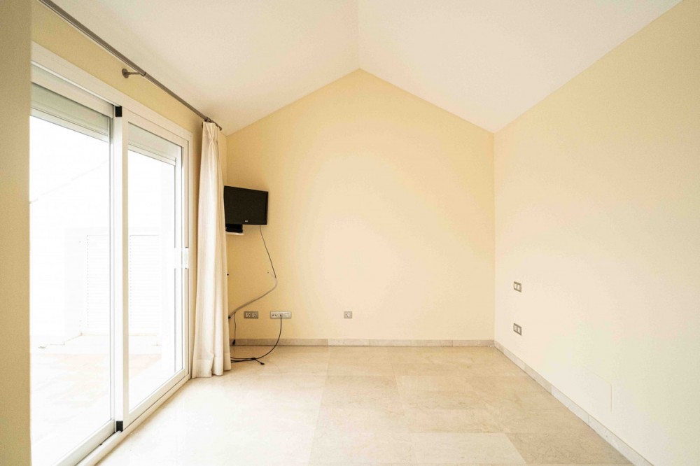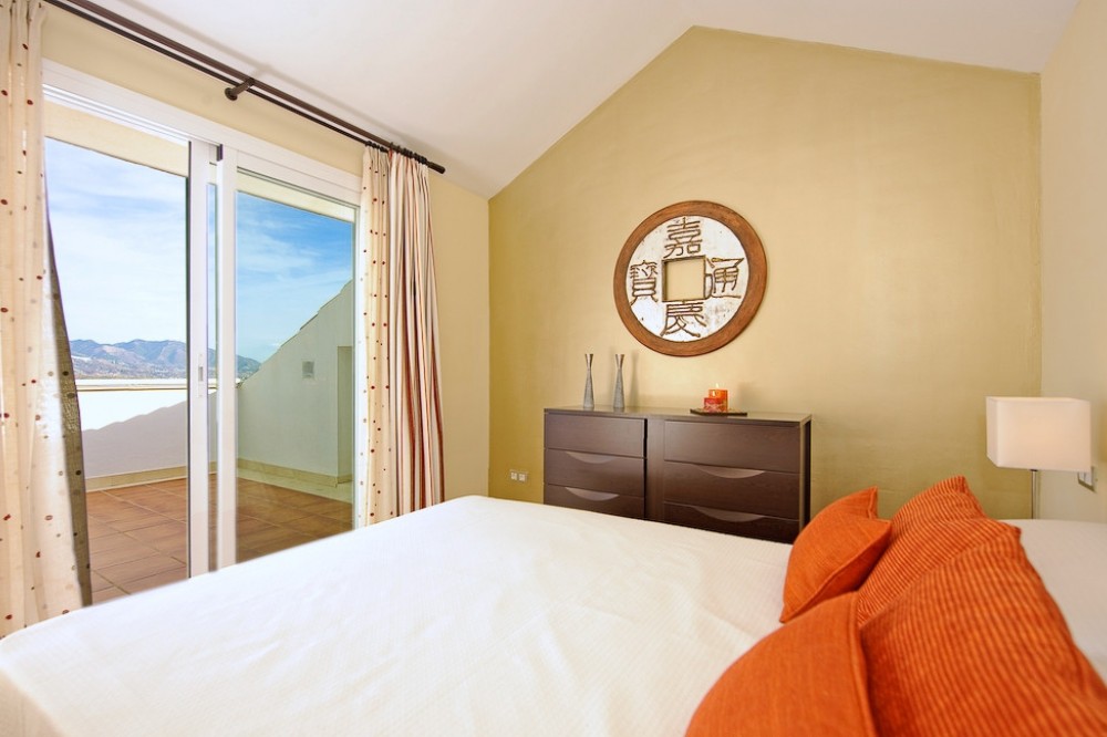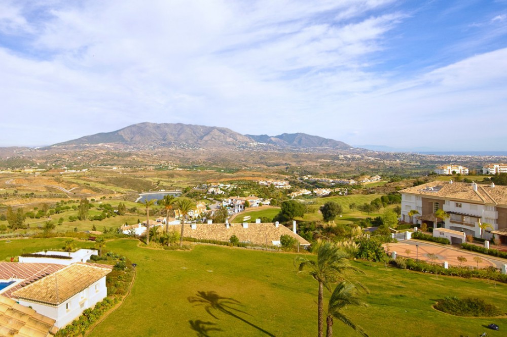 - Fantastic opportunity to buy a Duplex penthouse in front line golf with open panoramic views Ample 3 bedrooms and 3 bathrooms, with highest quality finishes and outstanding views to the three golf courses, mountains and sea. - Luxury fittings including hot and cold air conditioning, double glazed doors and windows - Jacuzzi bath and underfloor heating in main bathroom - Two terraces, open and covered - Fine cream marble floors throughout - Fully fitted kitchen incl. electrical appliances - Built-in wardrobes in all bedrooms - Electric shutters and alarm system installed - Large community pool and beautiful gardens - Private gated community - Private garage space and store room