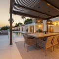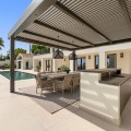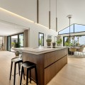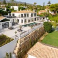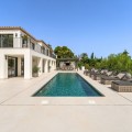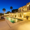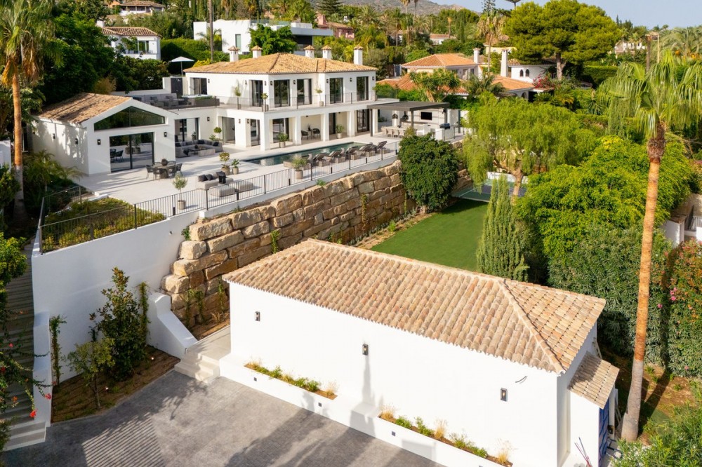 - This fully renovated Andalusian-style villa is set in Rocío de Nagüeles, one of the most prestigious enclaves of Marbella’s Golden Mile. Positioned on a 1,965m² south-facing plot beneath the emblematic La Concha mountain, it captures sweeping views of the Mediterranean. Modernised in 2025, the residence extends over 734m², where soaring ceilings, floor-to-ceiling glazing, and fluid indoor-outdoor transitions highlight its luminous design. The heart of the home is an expansive open-plan living and dining area that seamlessly integrates with a bold statement kitchen featuring a central island. Five elegant bedroom suites ensure comfort and privacy, led by a spectacular principal suite with a private terrace, panoramic sea views, and a bespoke walk-through dressing room. The lower level has been crafted for leisure and entertainment, offering a contemporary lounge with bar, glass-enclosed wine cellar, and billiards table, complemented by two guest bathrooms and extensive storage. Outdoor living is elevated across 456m² of terraces that frame a large saltwater pool, sun deck, landscaped gardens, and a stylish al fresco dining area. Behind secure gated access, a covered carport accommodates up to six vehicles. Turn-key and south-oriented, the villa combines Andalusian charm with cutting-edge modern comfort. Its privileged location places Marbella’s finest beach clubs, golf courses, and lifestyle amenities within minutes, delivering refined coastal living in one of the Costa del Sol’s most coveted addresses.