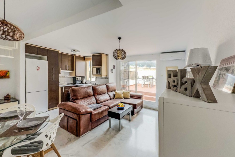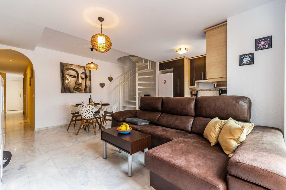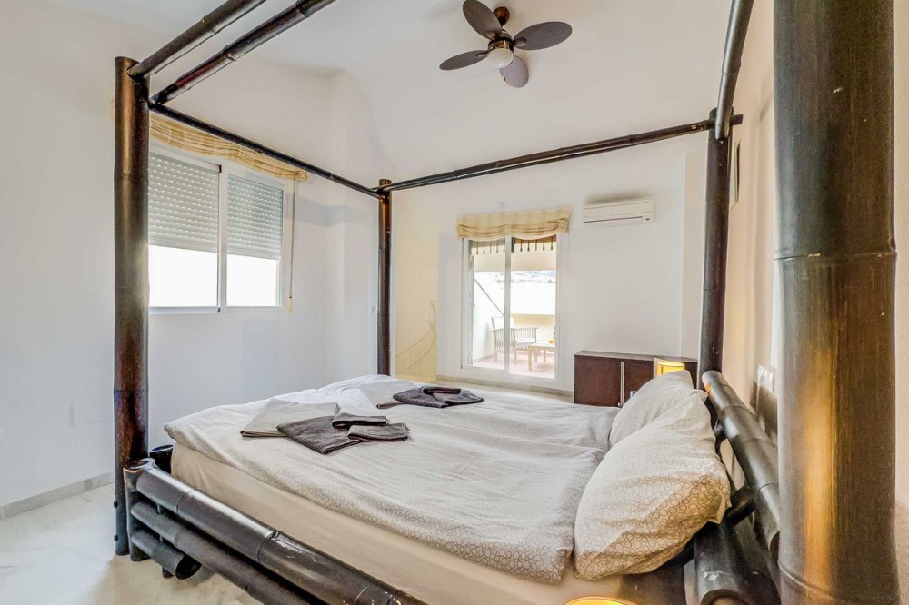 - Penthouse, Fuengirola, Costa del Sol. 3 Bedrooms, 2.5 Bathrooms, Built 97 m², Terrace 17 m². Setting : Town, Close To Shops, Close To Sea, Close To Town, Urbanisation. Orientation : North West. Condition : Good. Pool : Communal. Climate Control : Air Conditioning, Hot A/C, Cold A/C. Views : Mountain, Country. Features : Lift, Near Transport, Private Terrace, WiFi. Furniture : Fully Furnished. Kitchen : Fully Fitted. Garden : Communal. Security : Gated Complex, Entry Phone. Parking : Underground, Private. Utilities : Electricity, Drinkable Water. Stunning Duplex apartment with Tourist License in Torreblanca, Fuengirola Located in the middle part of Torreblanca, Fuengirola, this charming duplex apartment offers a perfect balance of tranquility and convenience. Just 900 m from the famous beach promenade, you’ll have easy access to restaurants, bars, shops, and entertainment. Property Details Size: 97 m² built, 17 m² terraces, distributed over 2 levels Lower Floor: Bedroom with double bed and wardrobe, bathroom with bathtub and shower, guest toilet, open-plan living/dining room with access to a southwest-facing terrace featuring panoramic mountain and sea views, and a fully fitted modern kitchen Upper Floor: Spacious master bedroom with en-suite bathroom (bathtub + shower), large wardrobe, and a southwest-facing terrace ideal for enjoying the sun all day Additional Bedroom: Completing a total of 3 bedrooms and 2 bathrooms Complex & Features 2 large communal pools with breathtaking sea and mountain views New playground, fitness area, and scenic park directly outside Private underground parking & gated security Air conditioning (hot & cold) in all rooms Washing machine, ironing facilities, WiFi, and lift access Fully furnished and move-in ready Distances: Torreblanca Beach: 900 m Fuengirola Beach Promenade: 900 m Fuengirola Center: 5 km Benalmádena: 10 km Marbella: 35 km Málaga Airport: 22 km Bus stop just 50 m away (Line 6) Lifestyle & Nearby Attractions Paseo Marítimo promenade: 7 km of coastline with dining, shopping, and leisure Wide choice of water sports: sailing, windsurfing, volleyball Culture in Málaga: Picasso Museum, Carmen Thyssen Museum, historic city center Easy day trips to Puerto Banús, La Cala de Mijas, Mijas mountains, botanical gardens, exclusive golf courses, and El Caminito del Rey Investment Opportunity With a valid tourist license, this townhouse is not only a comfortable residence but also an excellent rental and investment option in one of Costa del Sol’s most popular destinations.
