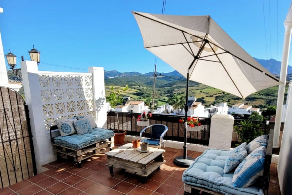 - Townhouse, Manilva, Costa del Sol. 3 Bedrooms, 2 Bathrooms, Built 112 m², Terrace 72 m². Setting : Country, Village, Close To Shops, Close To Schools, Urbanisation. Orientation : North West. Condition : Excellent. Pool : Communal, Children`s Pool. Views : Sea, Pool. Features : Private Terrace. Furniture : Part Furnished. Kitchen : Fully Fitted. Garden : Communal. Security : Gated Complex.