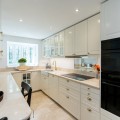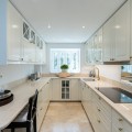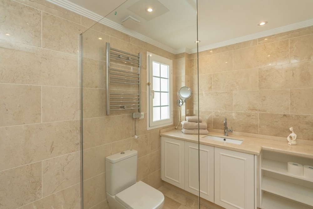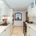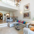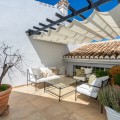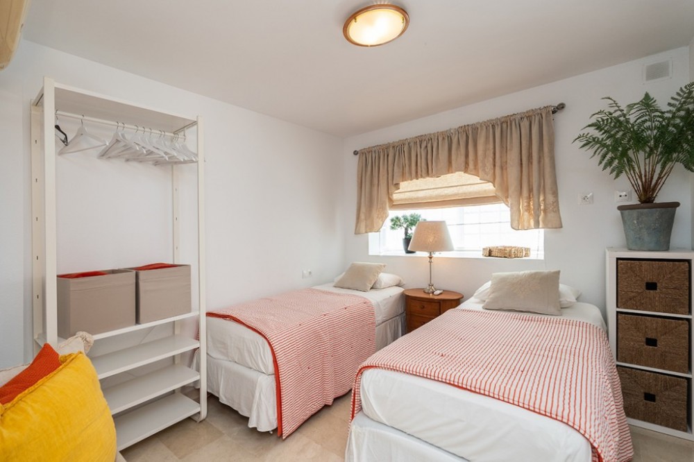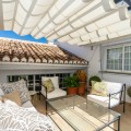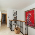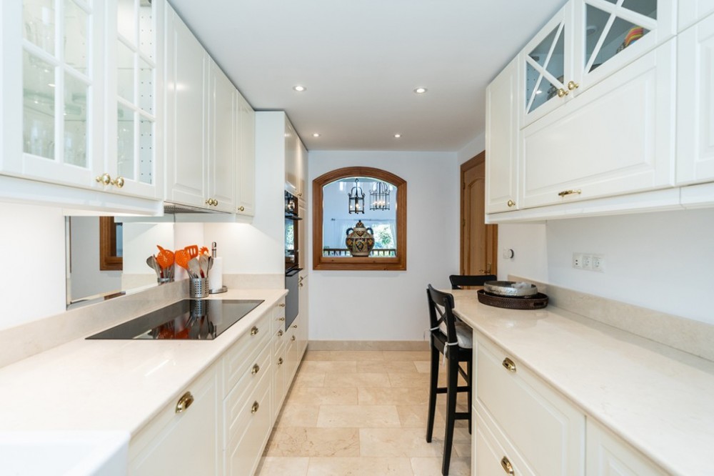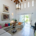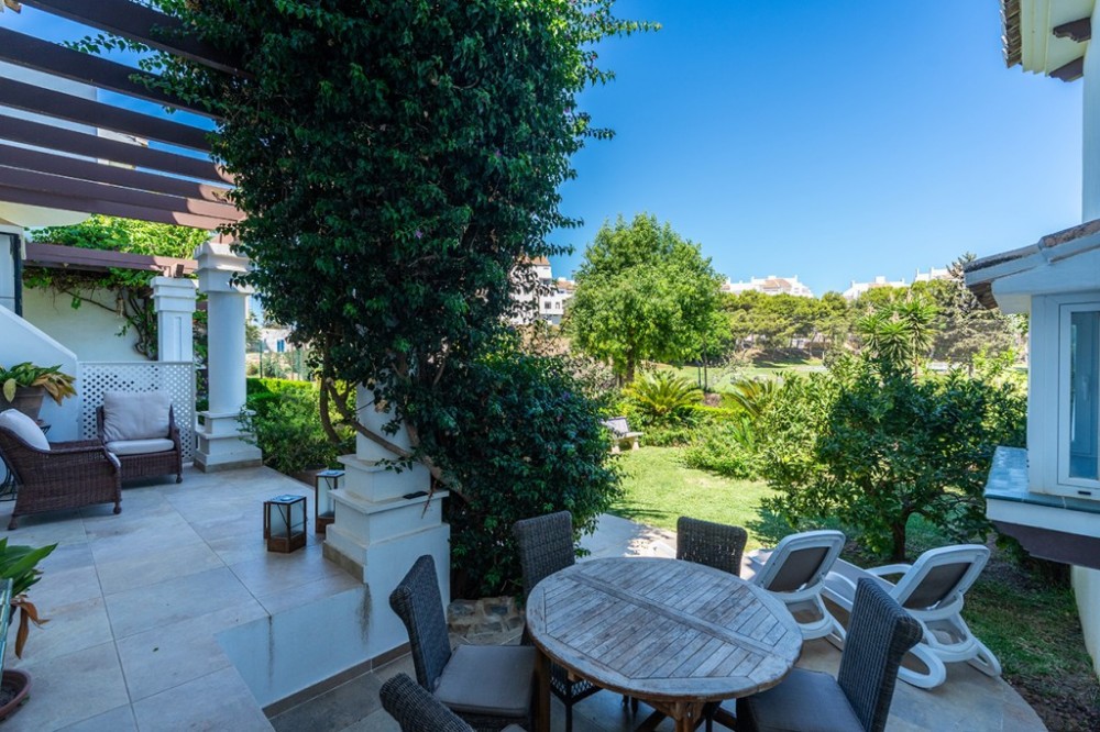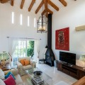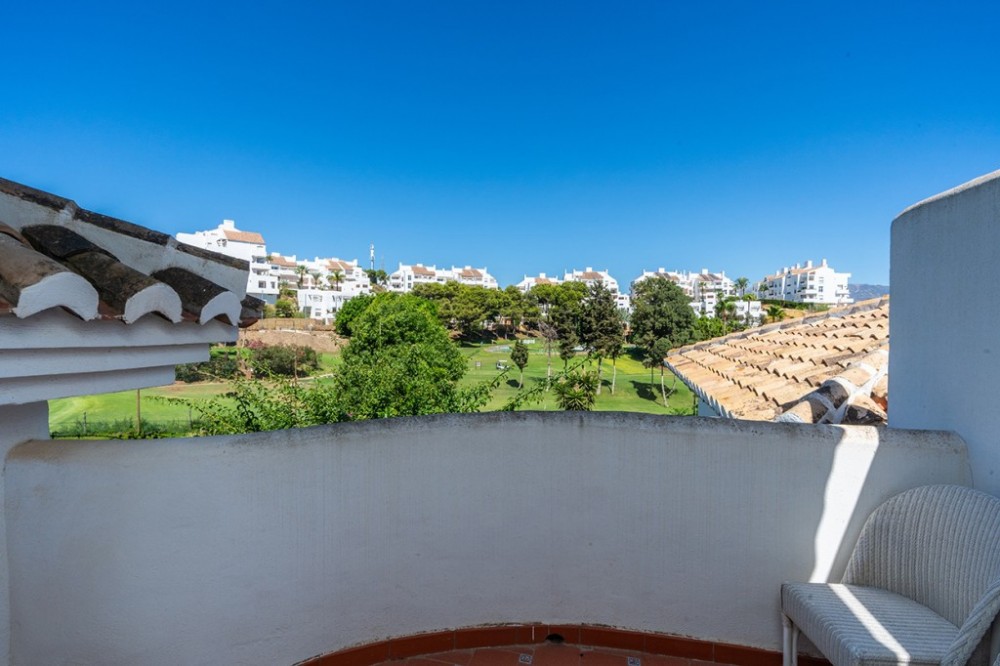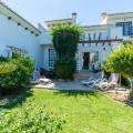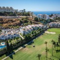 - Beautiful townhouse in a small complex in Riviera del Sol in Mijas-Costa frontline Golf. The house offers on the main level a fully equipped modern kitchen, a guest toilet, storage, one bedroom with en-suite bathroom and a large dining and living room with fireplace and with access to the private terrace with private garden. On the first floor there are two further bedrooms with en-suite bathrooms and a lovely summer terrace. There is also a roof terrace with sun all day. In the basement there is huge area that could be converted into a cinema, gym, more bedrooms, etc. In front of the house and in the complex there is a private parking space. The house is in a immaculate condition and in a very good location just next to the golf and walking distance to restaurants and shops. The beach is a 15 minute walk away. Gated very well maintained complex with two pools and gardens.