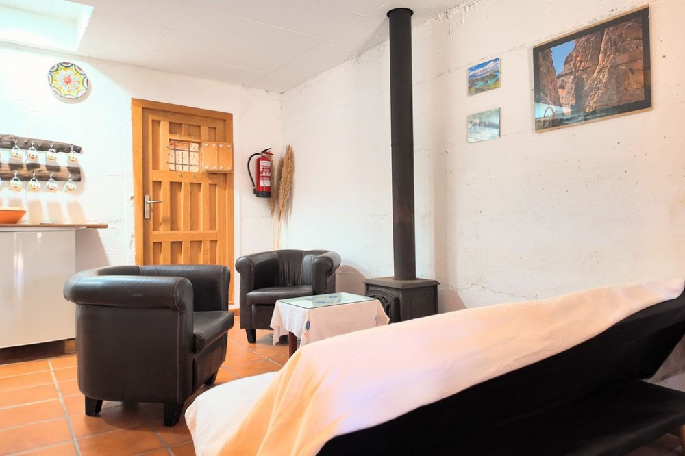 - A Hidden Gem Above El Chorro Lake - Ardales 2 properties for 1 price Do you long for peace, for silence broken only by the sound of birdsong and the whisper of the wind? A place where time slows down, where stress and noise are left far behind? Then this is your sanctuary. Tucked away just 5 minutes from the main road along a winding country track, this magical property opens up like a secret revealed — a world of nature, beauty, and endless horizons. The Main House (55 m²) A cozy one-bedroom retreat with an additional mezzanine sleeping area Sunlit living room with open kitchen Private bathroom Breathtaking views across the shimmering waters of El Chorro Lake The Cave House (53 m²) A charming apartment carved into the rock Open bedroom with living and kitchen area Bathroom Naturally cool in summer, warm in winter — and utterly unique Your Land, Your Paradise A vast 137,794 m² estate of pure Andalusian landscape Flourishing olive trees and abundant fruit orchards: oranges, citrus, figs, algarrobo A small swimming pool to refresh on warm days A terrace with 360° views where sunsets paint the sky Independent living with solar power and private wells Wooden stove for cozy nights a security system and storage Here, life moves at the rhythm of nature. Sip your morning coffee while the lake sparkles below, wander among your fruit trees, or lose yourself in the vast beauty surrounding you. ???? Whether as a private refuge, a vacation retreat, or a soulful investment, this property is more than a home — it’s a way of life. it is not possible to obtain a mortgage for this property.