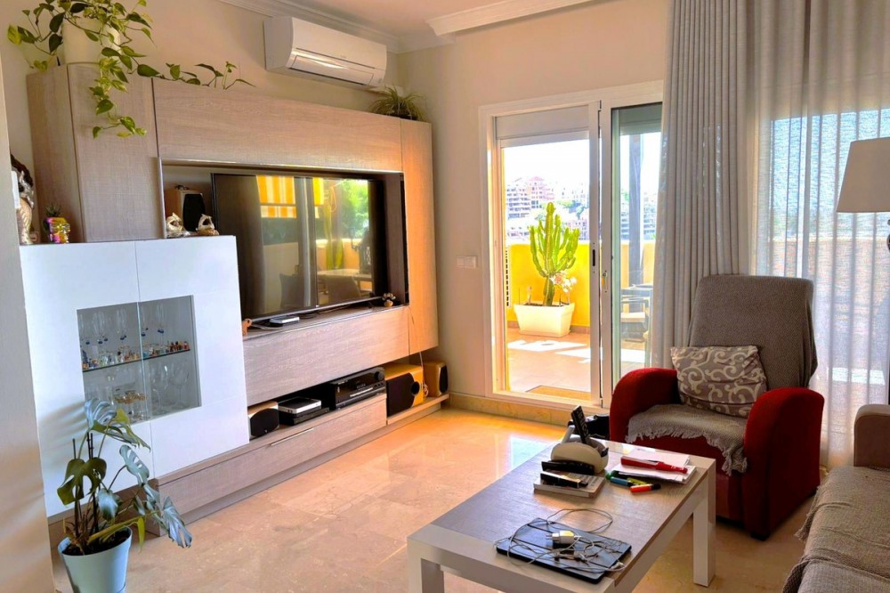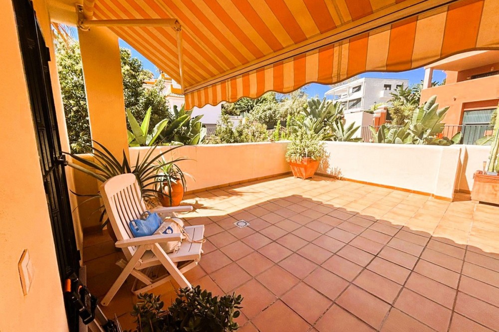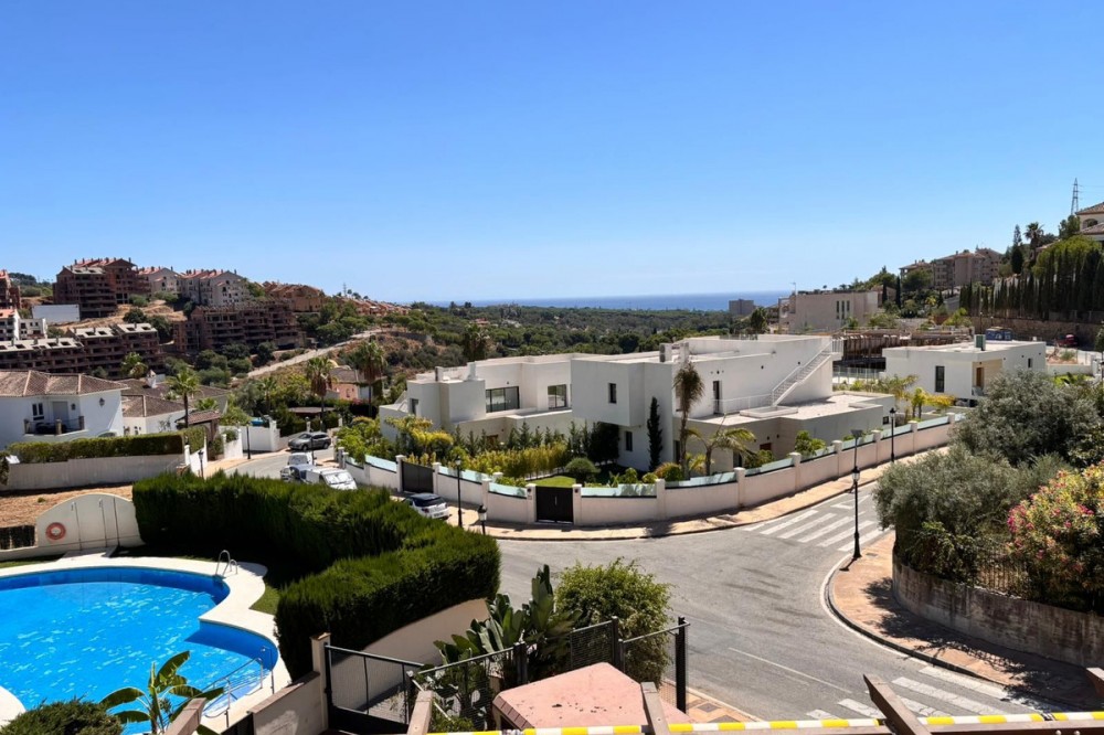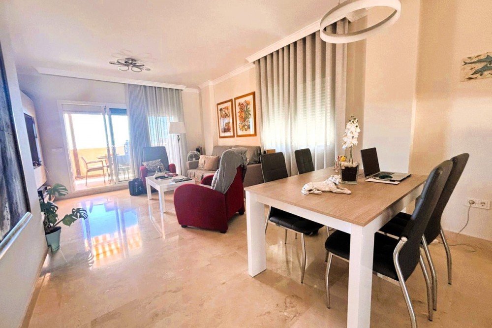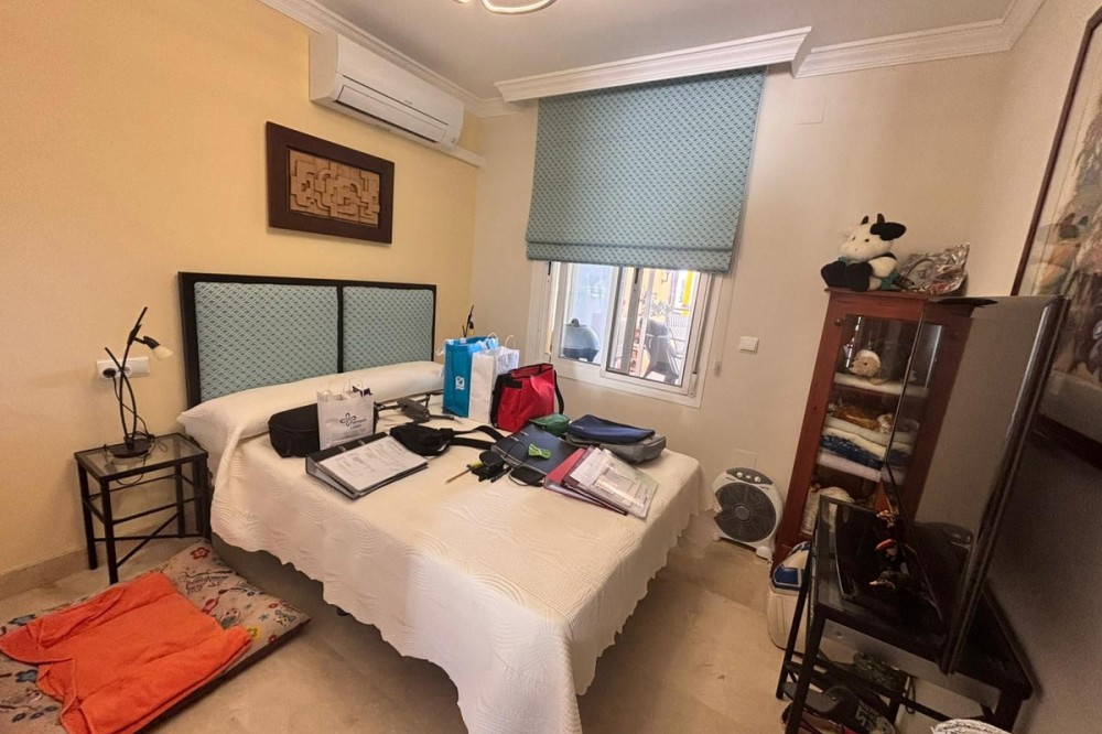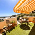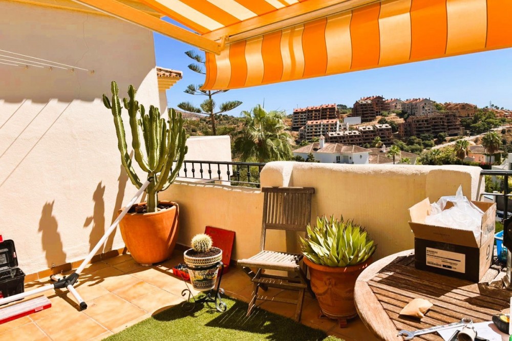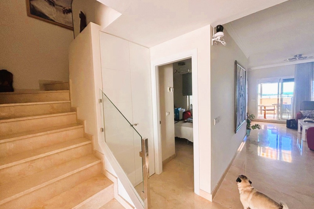 - Beautiful property for sale in perfect condition in the Elviria area, close to the golf course and less than a 5-minute drive to the beach! Quiet, very residential urbanisation, ideal for permanent residence. Duplex , is on the ground level but with hight , no lift or stairs, very comfortable!!! The property is on a corner, so it is very sunny and bright and has sun all day long! Very large terrace at the entrance of the house, with awnings and afternoon sun. Upon entering, we find a spacious living room with an open, fully equipped kitchen, from the living room access to the second terrace, which faces south and offers open views of the sea, with sun all day long! There are also new awnings! On the same floor there is a double bedroom with a built-in wardrobe and a full bathroom with shower. The kitchen and bathrooms have been recently renovated! On the second floor is the master bedroom with en-suite bathroom in perfect condition, as of been renovated not long ago , large built-in wardrobes and private terrace with recently installed awnings and beautiful unobstructed views. Equipped with Air conditioning and heating and very well-maintained and immaculate marble floors! Large garage space and storage room included in the price!!! VIEWINGS HIGHLY RECOMMENDED!!!