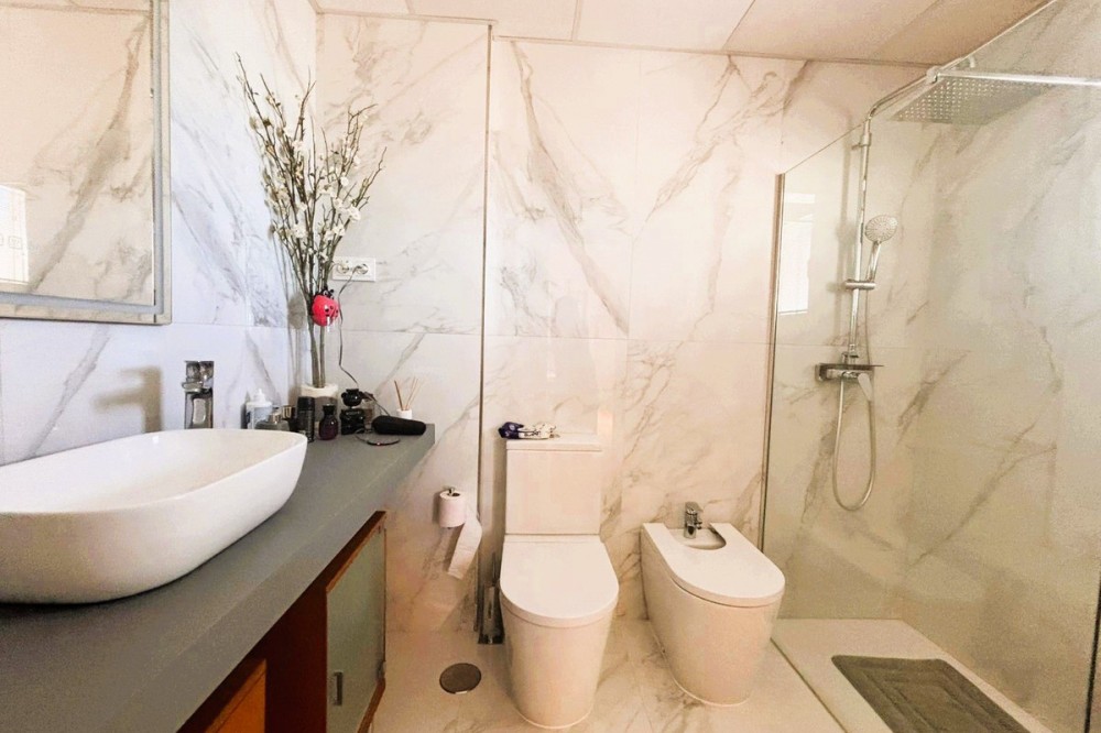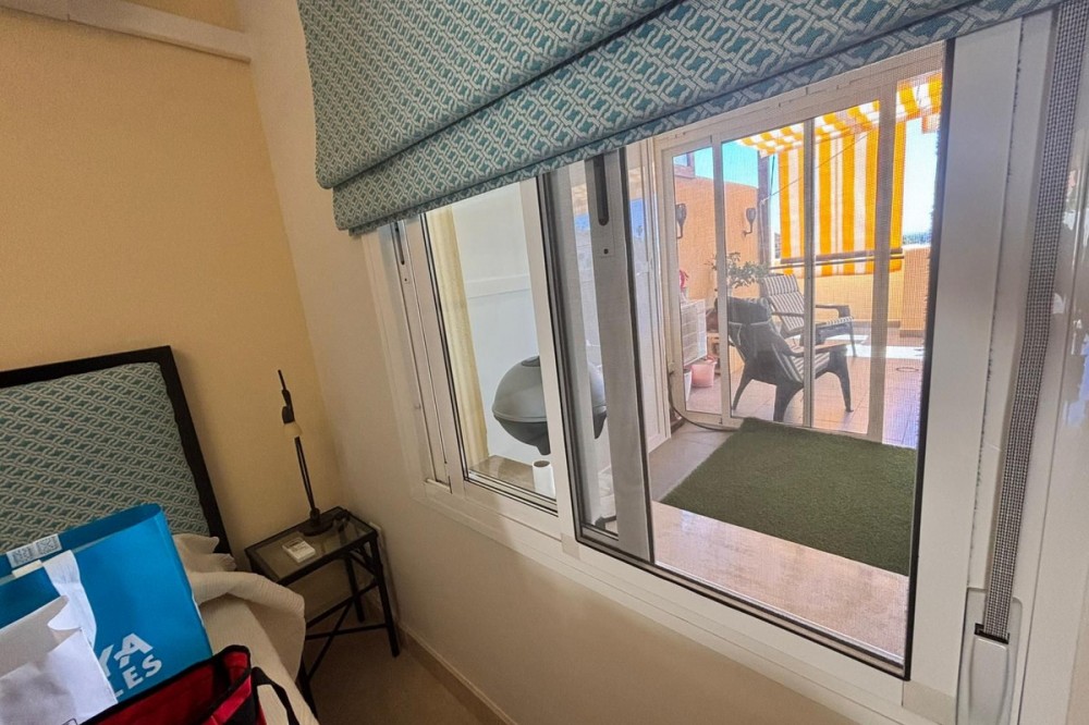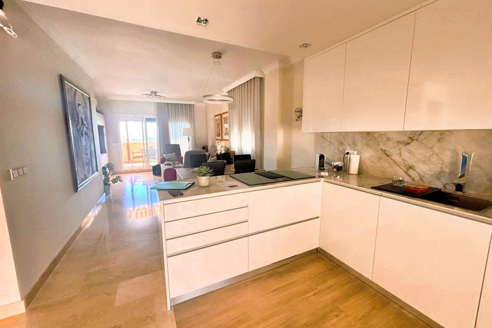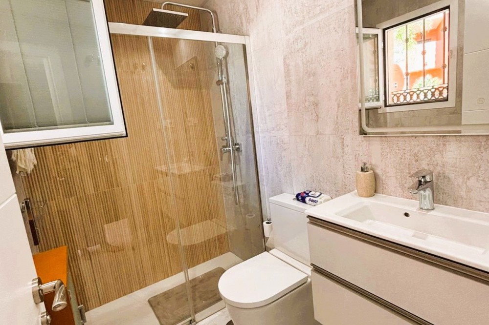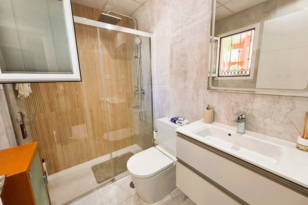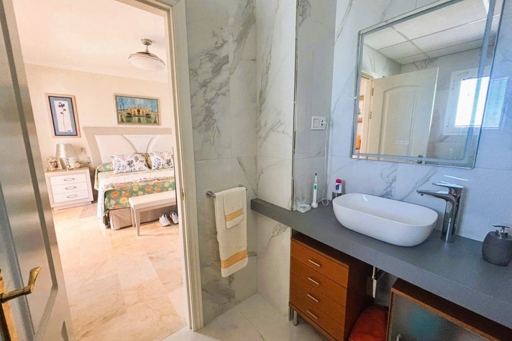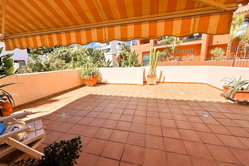 - Beautiful property for sale in perfect condition in the Elviria area, close to the golf course and less than a 5-minute drive to the beach! Quiet, very residential urbanisation, ideal for permanent residence. Duplex , is on the ground level but with hight , no lift or stairs, very comfortable!!! The property is on a corner, so it is very sunny and bright and has sun all day long! Very large terrace at the entrance of the house, with awnings and afternoon sun. Upon entering, we find a spacious living room with an open, fully equipped kitchen, from the living room access to the second terrace, which faces south and offers open views of the sea, with sun all day long! There are also new awnings! On the same floor there is a double bedroom with a built-in wardrobe and a full bathroom with shower. The kitchen and bathrooms have been recently renovated! On the second floor is the master bedroom with en-suite bathroom in perfect condition, as of been renovated not long ago , large built-in wardrobes and private terrace with recently installed awnings and beautiful unobstructed views. Equipped with Air conditioning and heating and very well-maintained and immaculate marble floors! Large garage space and storage room included in the price!!! VIEWINGS HIGHLY RECOMMENDED!!!