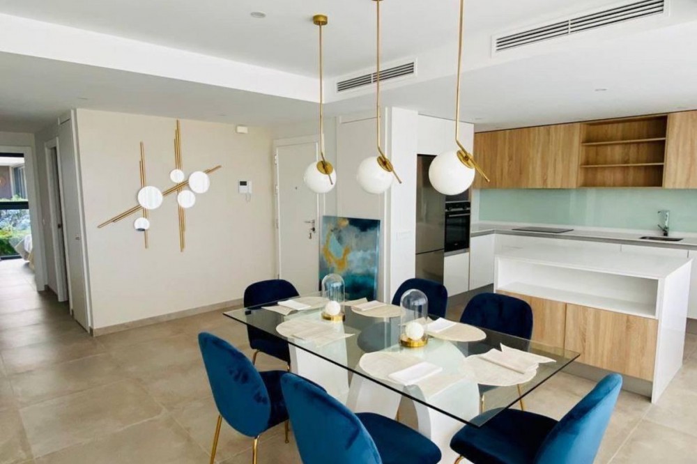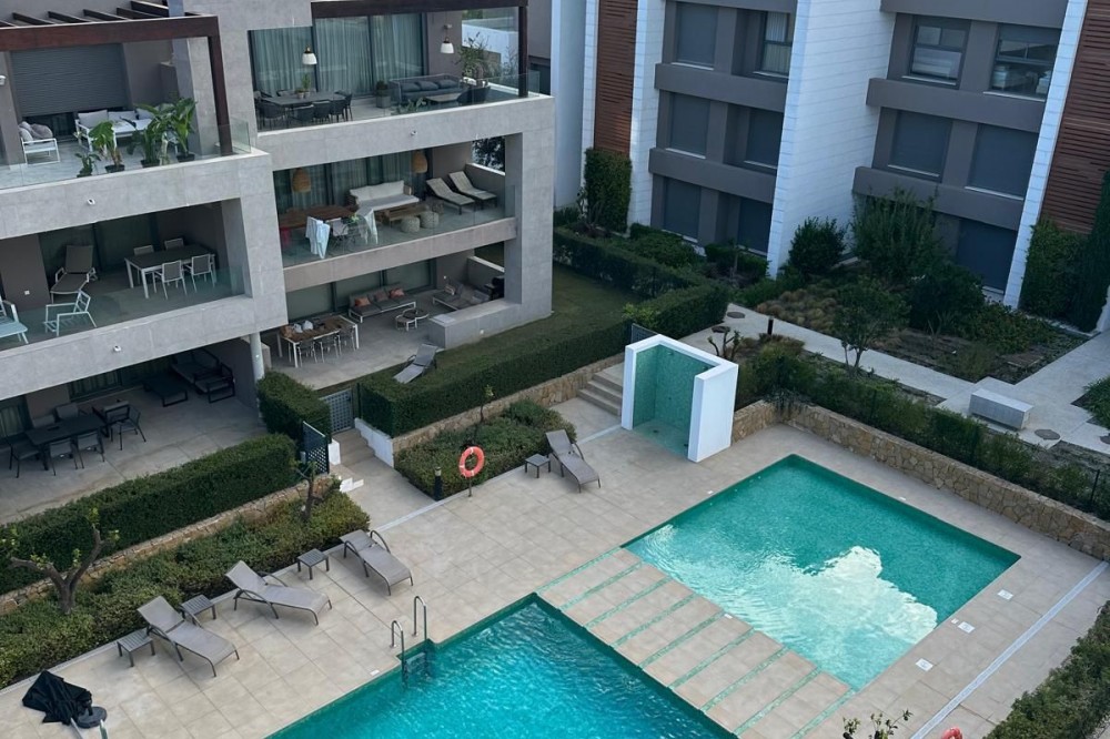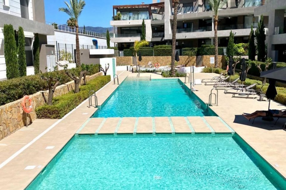 - ALERT TO KEEN INVESTORS SEEKING SHORT TERM RENTAL OPPORTUNITY - TOURISTIC LICENCE IN PLACE - PRICED TO SELL Presenting this ground floor apartment located in Syzygy, The Residences. A high end, luxury, residential development positioned between Estepona and Marbella, showcasing contemporary apartments and penthouses tailored for a premium lifestyle. The residences, constructed in 2019, provide open-concept living areas with expansive terraces, enhancing natural light and offering views of the Mediterranean Sea and the adjacent mountains. The fully furnished apartment with short rental licence in place, boasts 2 double bedrooms, 1 with ensuite bathroom and walk in wardrobe, and the other with a separate guest bathroom. Equipped with high-quality fixtures, generous storage, a fully fitted modern open plan kitchen, and breath-taking views giving to the sea, countryside and Sierra de Mijas mountain range. The lounge area is generous, yet cosy, communicating wonderfully with both the open plan kitchen, and south facing covered terrace. Included in the list price, is an incredibly generous underground parking space, located directly in front of the garage entrance, in addition to an equally generous 9m2 storage room. The community itself, features exquisite gardens which are meticulously maintained, a swimming pool, and an exclusive rooftop lounge area with plunge pool. The views from the rooftop are nothing short of superb. One can see not only the coastline, but also Gibraltar, the Atlas mountains in Morocco (weather permitting), and the Sierra de Mijas range. Syzygy is located in a prime area on the New Golden Mile, only a 12 minute walk to the charming village of Cancelada. Cancelada boasts several traditional Spanish restaurants, as well as a handful of shops and bars. By car, Estepona town centre is located only a 10 minute drive away, with San Pedro de Alcantara equidistant in the other direction. The closest beaches, Saladillo and Guadalmansa, are located only a 5 minute drive away, offering both traditional Chringuito style dining, as well as high end beach clubs such as Tikitano and Anantara. For more information or to book a viewing, please do not hesitate to contact us. We look forward to receiving your inquiry.