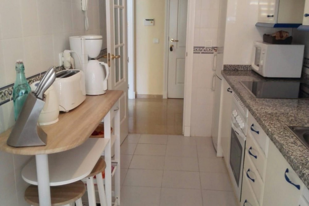- Middle Floor Apartment, La Duquesa, Costa del Sol. 1 Bedroom, 1 Bathroom, Built 60 m², Terrace 10 m². Setting : Beachfront, Beachside, Close To Golf, Close To Port, Close To Shops, Close To Sea, Close To Town, Close To Schools, Close To Forest, Close To Marina, Urbanisation, Front Line Beach Complex. Orientation : North East. Condition : Good. Pool : Communal. Climate Control : Air Conditioning, Hot A/C, Cold A/C. Views : Sea, Panoramic, Garden, Pool. Features : Covered Terrace, Lift, Private Terrace, Storage Room, Utility Room, Ensuite Bathroom, Access for people with reduced mobility, Marble Flooring, Double Glazing, Fiber Optic. Furniture : Fully Furnished. Kitchen : Fully Fitted. Garden : Communal. Security : Gated Complex, Entry Phone, 24 Hour Security. Parking : Underground, Private. Utilities : Electricity, Drinkable Water, Telephone. Category : Beachfront, Distressed, Holiday Homes, Investment, Contemporary.
