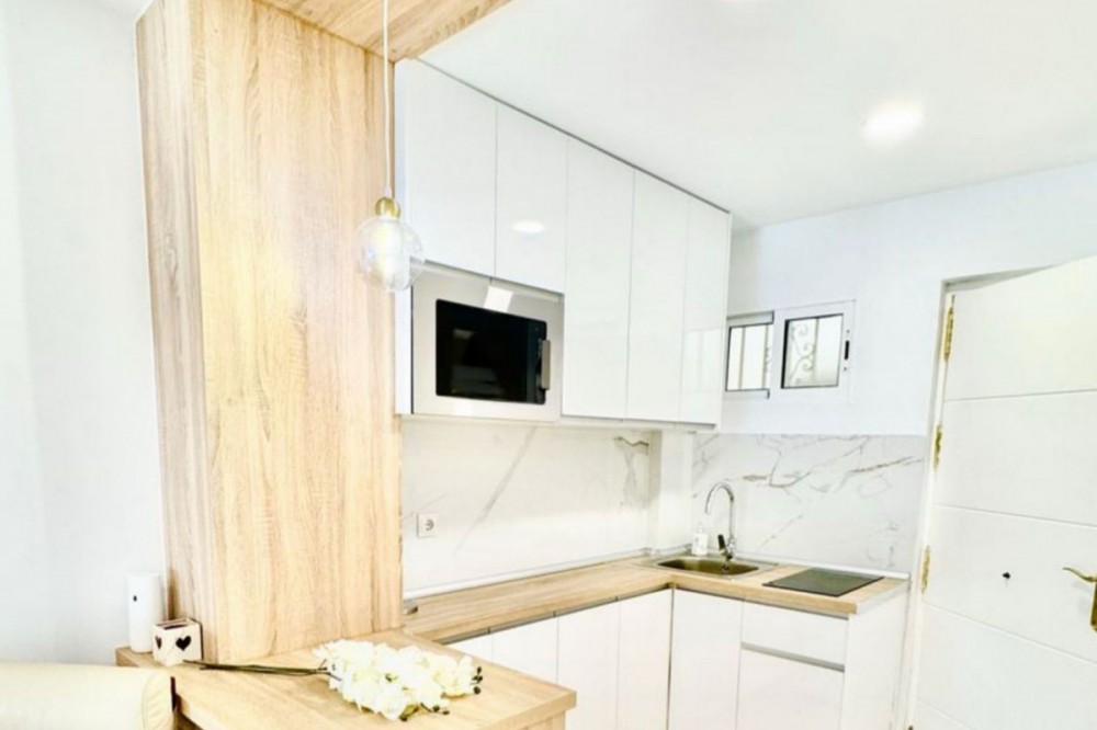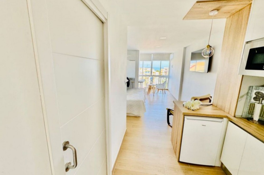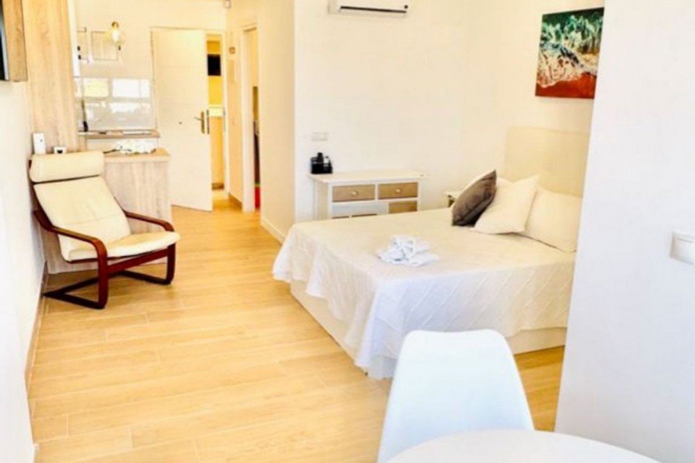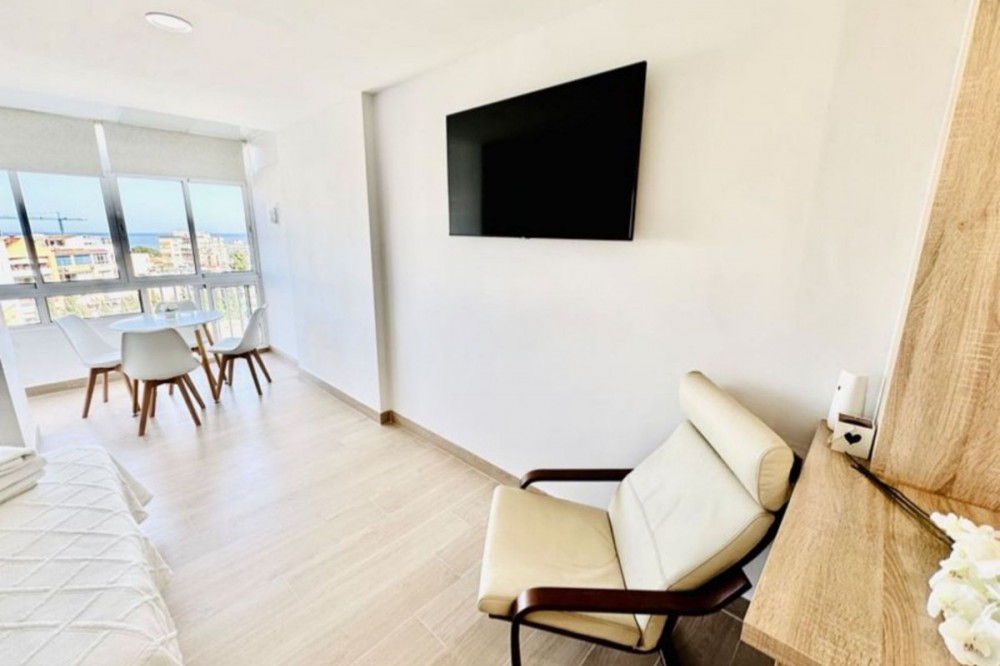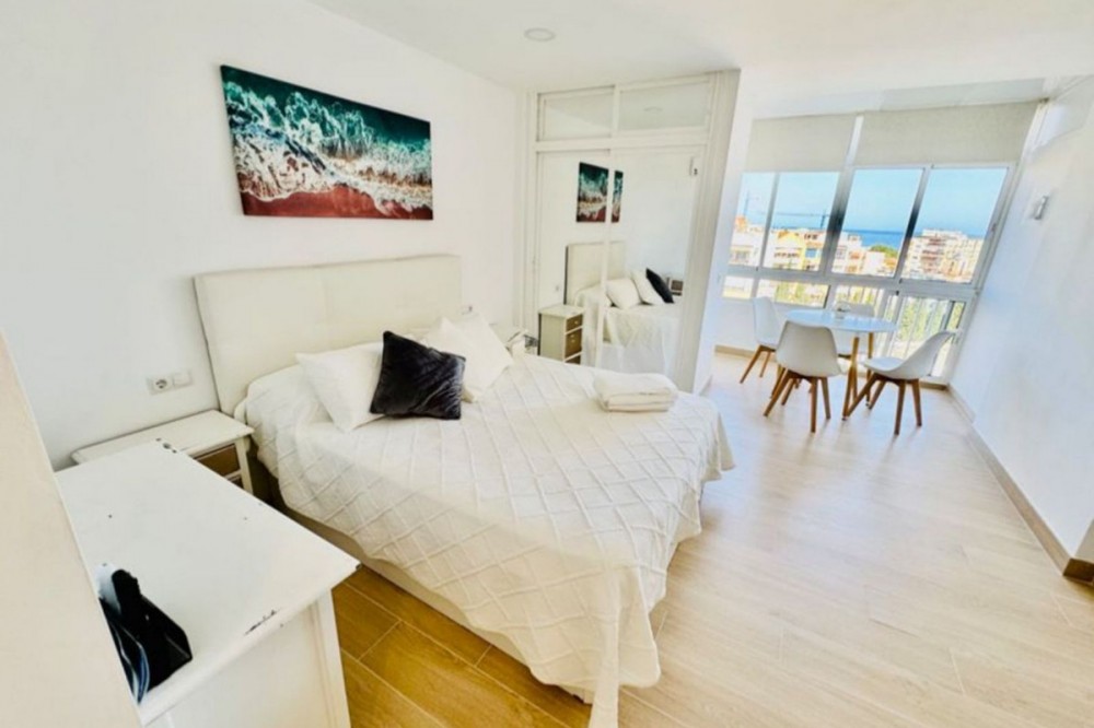 - Very bright studio, completely renovated a month ago, with a modern, high-quality design. It has an open kitchen and a bathroom with a built-in toilet and shower. Ready to enjoy. It has a tourist license. It offers open sea views and is a 10-minute walk from the promenade and wonderful beaches. The train station is a 10-minute walk away, and Malaga Airport is a 15-minute drive away. Located in a well-connected tourist area. The community has a 24-hour reception and multilingual staff. The community grounds feature over 5,000 square meters of gardens and swimming pools.