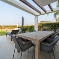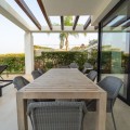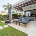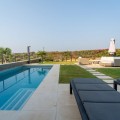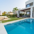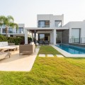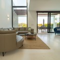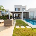 - This luxury semi-detached villa offers five double bedrooms and is finished to a high standard with stunning views to the sea, golf course and the Marbella mountains. Situated on the frontline of Cabopino Golf course in a private and gated community of only fourteen villas between Calahonda and Cabopino. The villas were built in 2019 and are of modern contemporary design. Distributed over three floors. The ground floor has an open plan distribution consisting of an entrance hall, guest toilet, bespoke fully fitted kitchen with large island and spacious lounge area. The living area flows outside towards the private covered terrace perfect for relaxing in the warm weather whilst enjoying the views. The pretty landscaped garden has its own private pool inviting you to spend time in these outside areas. The first floor comprises of three bedrooms. The principal bedroom includes a walk in wardrobe, ensuite bathroom with a generously sized walk-in shower and a private terrace showcasing the gorgeous views. There are a further two double bedrooms sharing a bathroom. The lower floor leads to the garage which has independent access and is ideal for storing a golf buggy. This level provides two further double bedrooms with natural light coming from patios above and a fully fitted bathroom with laundry machines. There is also a cosy lounge area equipped with a pool table and room to watch television, movies or sport. The villa has 2 private parking spaces and a storage room. Some of the qualities on offer are high ceilings, floor to ceiling glass doors and windows, internal electric blinds, bespoke lighting, underfloor heating (by water on every level) and air conditioning all of which add to living comfortably here on the coastline. This wonderful villa is situated in a peaceful location with 24 hour private security. There is the use of a community golf area to practice your putting or relax with family and friends. This exclusive community of villas is conveniently located close to everything that a lifestyle on the Costa del Sol offers such as international schools, Marbella Old Town, shopping centres, beaches and the airport. With a feel of quality, safety and security this property is an ideal family home, investment or vacation villa.