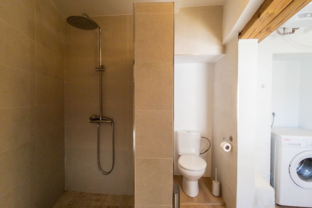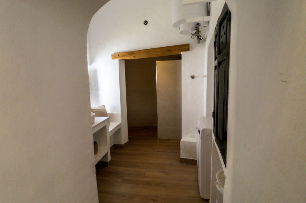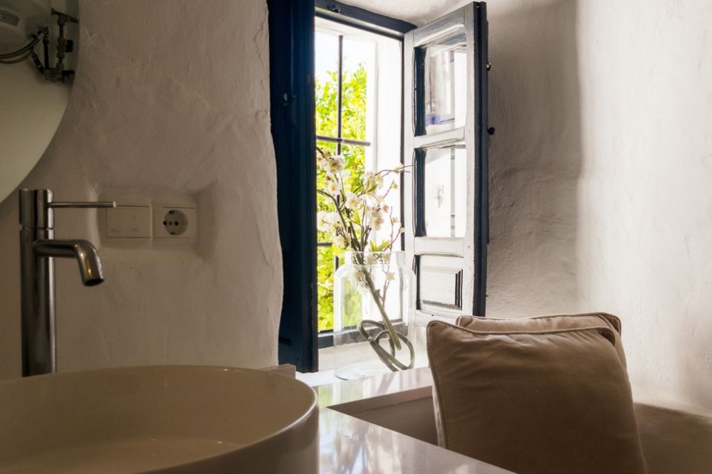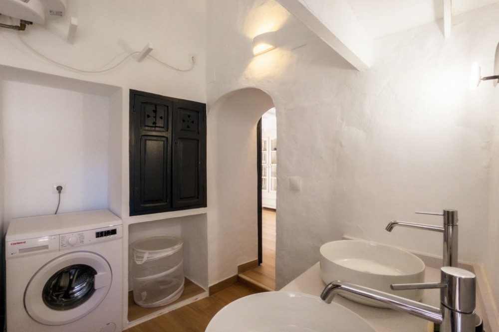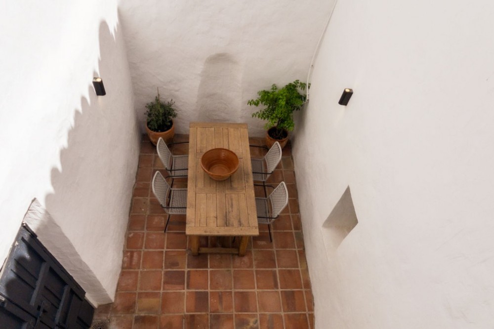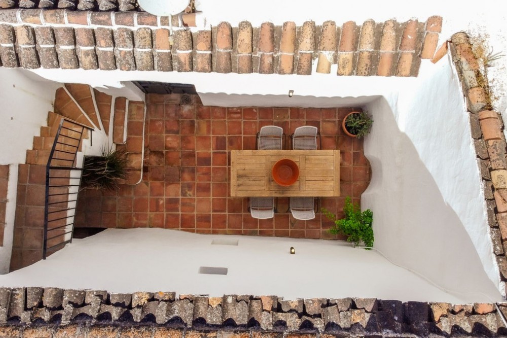 - Step into this lovingly furnished home, carefully designed to combine comfort and atmosphere. In front of the house lies a generous terrace, perfect for enjoying the sun or long summer evenings. The spacious yet cozy living room is the warm heart of the house, featuring a fireplace and a fully equipped open kitchen with bar. The bright, modern bathroom offers every luxury with a stylish double sink vanity, a spacious walk-in shower, a semi-separate toilet, and a washing machine. An open passage leads to the dining area under an impressive five-meter-high ceiling. From here there is access to the patio and a separate office, which can also serve as an additional bedroom. A striking spiral staircase takes you upstairs, where two spacious bedrooms await. The master bedroom includes a walk-in closet and a French balcony, while the second bedroom is light, airy, and has direct access to a large terrace with beautiful views. Altogether there are no less than five terraces, ensuring you can always find the perfect spot in the sun or shade. Trendy anthracite aluminum frames with double glazing, air conditioning in the living room and bedrooms, fiber-optic internet, and a security system complete the comfort of this home. The house is located in Guaro, one of the most charming villages in the province of Málaga, right in the middle of the stunning Sierra de las Nieves natural park, with its wide network of hiking trails, and only 18 km from Marbella. Wander through the historic streets with their typical Andalusian character and enjoy the nearby restaurants, terraces, and supermarket. In Guaro, all your senses come alive. Listen to the fountains and the Moorish music, admire the mountains and the whitewashed village, taste the almonds and olive oil, breathe in the fragrance of colorful flowers lining the streets, and above all, feel the magic of this unique place.