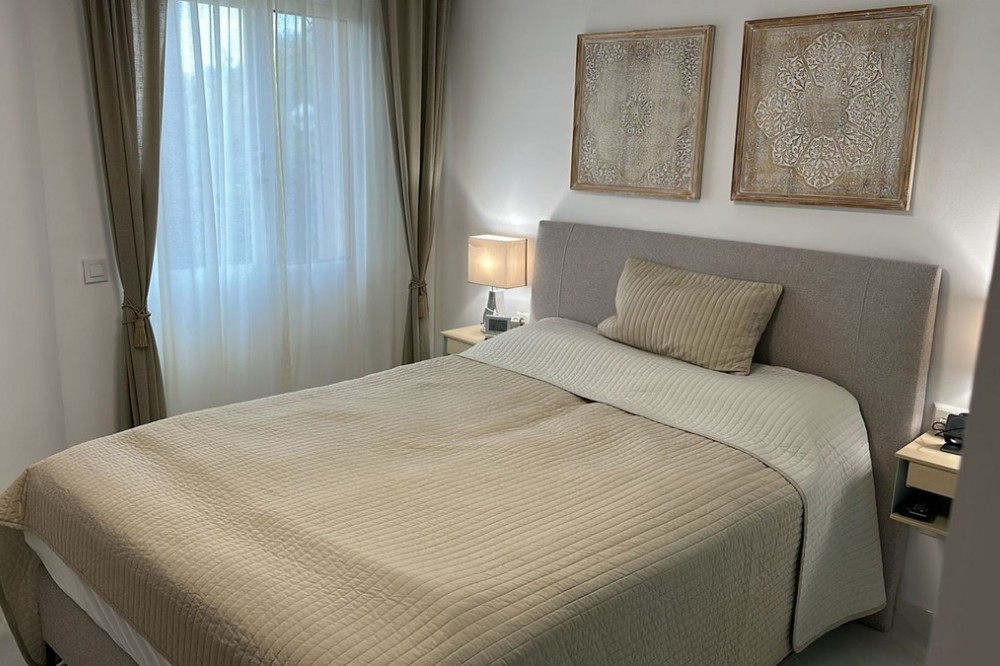 - Renovated Ground Floor Apartment in Riviera del Sol with TOURIST LICENSE. Discover a rare opportunity to own a beautifully renovated ground floor apartment in the highly sought-after area of Riviera del Sol, just a short 10-minute stroll from the sandy beaches of the Costa del Sol. This bright, modern home has been tastefully updated to the highest standards, offering a perfect blend of style, comfort, and convenience. The apartment features two spacious double bedrooms, each with ample wardrobe space, and two contemporary bathrooms, one of which is en-suite. The open-plan living and dining area is filled with natural light, creating a warm and welcoming atmosphere. The fully equipped modern kitchen comes with quality appliances and plenty of storage, making it both functional and stylish. One of the highlights of this property is the private terrace with direct access to the communal gardens, where you can relax, enjoy outdoor dining, or simply take in the Mediterranean lifestyle. Being on the ground floor, this home offers easy access and a seamless flow between indoor and outdoor living. Set within a well-maintained community, residents also benefit from landscaped gardens and swimming pools, perfect for enjoying the sunshine year-round. The apartment is ideally located close to golf courses, shops, restaurants, and public transport, ensuring everything you need is just around the corner. Whether you’re looking for a permanent residence, a holiday retreat, or a rental investment, this property ticks all the boxes. It has a valid tourist license and a proven annual return of 6 %. Riviera del Sol is known for its relaxed yet vibrant atmosphere, with Marbella, La Cala de Mijas, and Fuengirola all within a short drive, offering endless leisure, dining, and entertainment options. Don’t miss the chance to secure your own slice of the Costa del Sol lifestyle with this beautifully renovated apartment — a home that truly offers it all.
