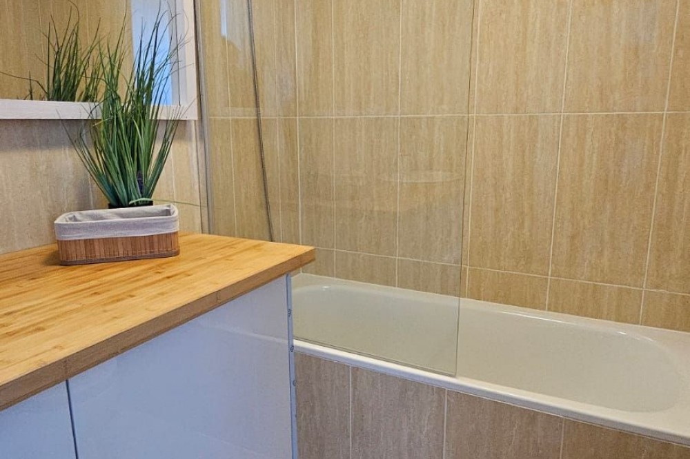 - This beautiful two-bedroom, two-bathroom, raised ground-floor apartment is located in a residential area of Andalusian-style townhouses. The property was completely renovated in 2025 and comes fully furnished. The terrace and all windows offer beautiful sea views. The complex has well-maintained gardens and a large communal pool. It is a quiet area. Parking is available right next to the complex. Excellent connections to Estepona and Sotogrande. The beach is approximately 800 meters away. The property is in the process of obtaining a First Occupancy License (LPO), which means that the City Council is processing the application to certify that the building meets all legal and technical requirements for occupancy.