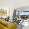 - Panoramic Duplex Penthouse in Los Flamingos, 4-bedroom, 2.5-bath for sale in the prestigious Los Flamingos Golf Resort, designed in a refined modern-rustic style. This bright and spacious home combines privacy with breathtaking panoramic views of the sea, mountains, and lush communal areas. On the entrance level, you’ll find a generous living area with a cozy fireplace opening onto the terrace enjoying sea views, a fully remodeled kitchen, separate laundry room, guest toilet, and two spacious guest bedrooms. Upstairs, the master suite boasts its own private terrace, accompanied by an additional guest bedroom currently used as a home office, as well as a private sauna. Multiple terraces with varying orientations invite natural light throughout the day and create the perfect spaces for outdoor living, whether in sun or shade. The property has benefited from several recent high-quality upgrades, including new internal doors, windows with mosquito screens, fitted wardrobes, upgraded electrics, a redesigned laundry room, Airzone-controlled air conditioning, and a completely new kitchen. Additional features include two underground garage spaces, a storage room, and access to 24-hour security and concierge services. Residents enjoy two swimming pools (one heated), beautifully landscaped tropical gardens, fountains, and a charming olive tree patio. This luxurious penthouse in Four Seasons Los Flamingos perfectly blends elegance, comfort, and exceptional surroundings. Nestled within the prestigious Los Flamingos Golf Resort Benahavis, Four Seasons is a refined residential community offering timeless Andalusian-inspired architecture, landscaped gardens, and resort-style living. Just minutes from Puerto Banús, Marbella, and Estepona, this gated complex combines elegance, privacy, and convenience in one of the Costa del Sol’s most sought-after settings.