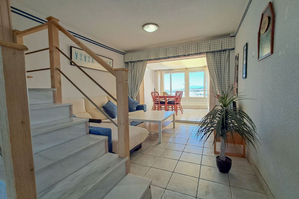 - TRIPLEX PENTHOUSE WITH VIEWS OF GIBRALTAR AND MOROCCO Discover this spacious and bright triplex penthouse located in a quiet residential community, boasting spectacular open views of the sea, Gibraltar, and the coast of Morocco. The property offers two bedrooms spread across three floors, providing both space and privacy. On the main floor, you will find a cozy living room with access to a sunny terrace—perfect for enjoying the Mediterranean climate—along with a functional kitchen. On the top floor, a private terrace invites you to admire breathtaking sunrises and sunsets. In addition, there are extra spaces that can be adapted to your needs, giving you endless possibilities to create the home you’ve always envisioned. While some updates may be carried out at your convenience, the property holds great potential to become a truly unique and personalized residence. The community is exceptionally well maintained, offering a peaceful and select environment. Residents can enjoy three communal swimming pools, a tennis court, and beautifully landscaped green areas—all designed for comfort and relaxation. Its privileged location combines the tranquility of a residential setting with excellent connections to local services, making it an ideal choice both as a permanent home or as a holiday retreat.