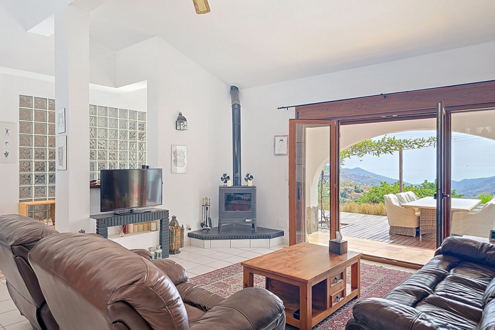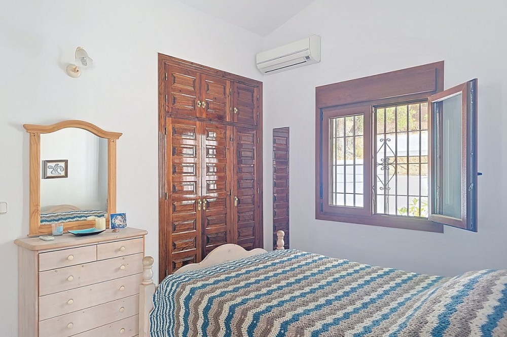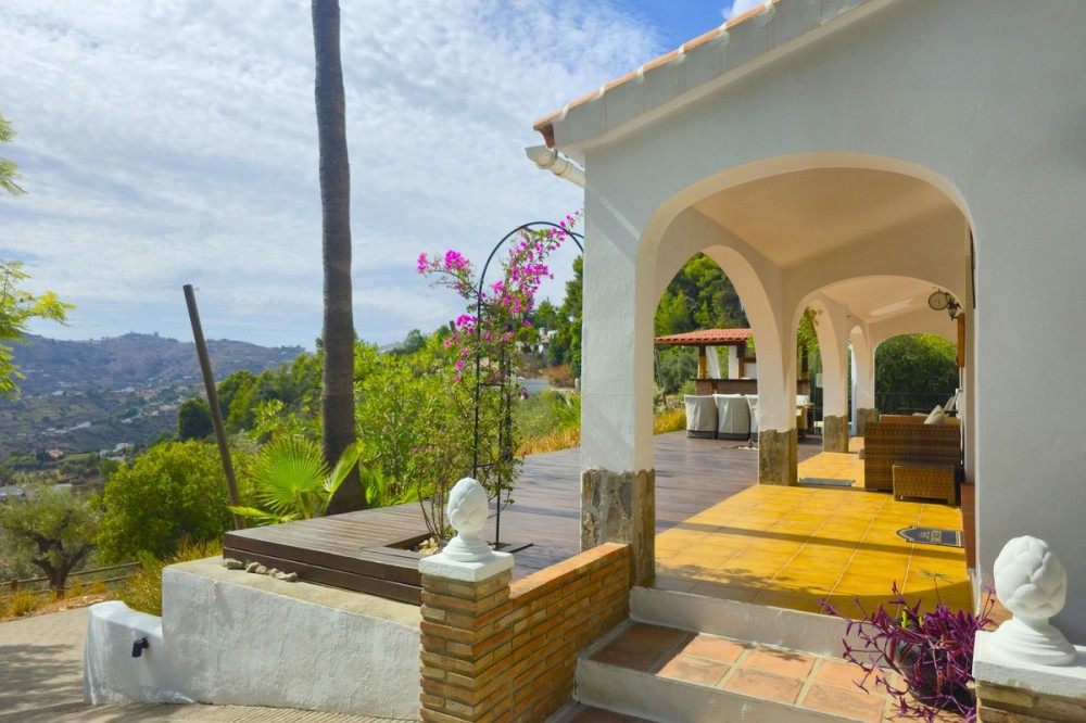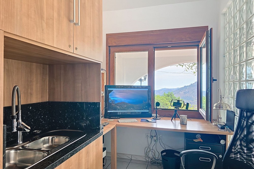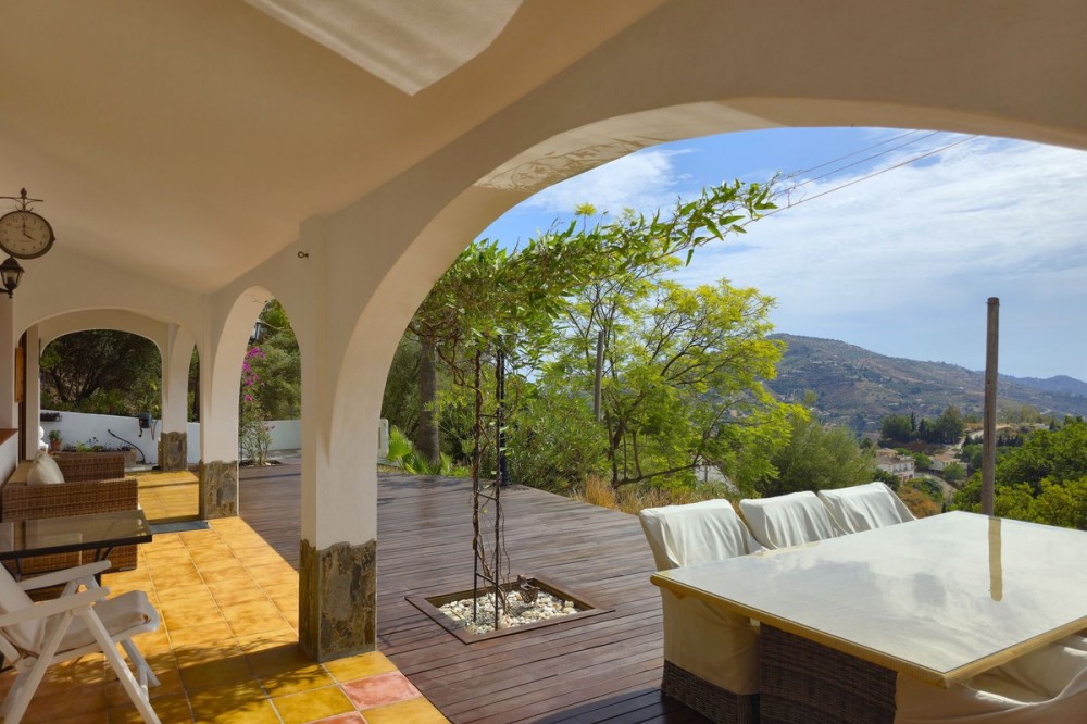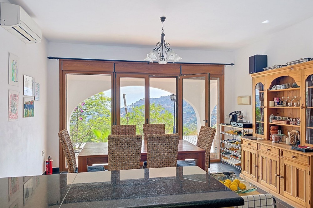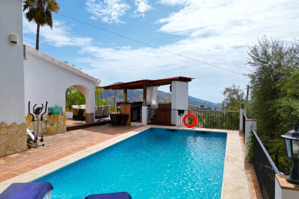 • Exclusive Spacious Villa with Guest Suite, Heated Saltwater Pool and Panoramic Sea Views ✨ This exclusive villa of 424 m², built in 2010 and impeccably maintained, perfectly combines comfort, space, and privacy in a prestigious Andalusian setting. With approximately 200 m² of living space and a 3,600 m² plot, it is ideal for those seeking tranquility without compromising on luxury. The main house features three spacious bedrooms, including one with an en-suite bathroom, and a total of three bathrooms. The bright living room with fireplace and direct access to the terraces forms the heart of the home. Additionally, there is a separate laundry room with office space, perfect for practical use or working comfortably from home. A special highlight is the garage with polyvalent space and its own bathroom, above which is an independent living unit with bedroom and lounge – perfect as a guest suite, studio, or for family members who value privacy. Outdoors, you will find everything for the ultimate Mediterranean lifestyle: a beautifully landscaped garden, several sunny terraces, a heated saltwater pool, and a stylish bar with outdoor kitchen – ideal for long summer evenings and entertaining guests. With a south-facing orientation, you can enjoy the sun all day and breathtaking panoramic sea views over the surrounding landscape. For extra comfort, the villa offers air conditioning, individual heating, built-in wardrobes, storage space, a balcony, and parking facilities. An exclusive opportunity for those seeking a versatile and prestigious villa in Andalusia, where luxury living, relaxation, and breathtaking views come together perfectly.