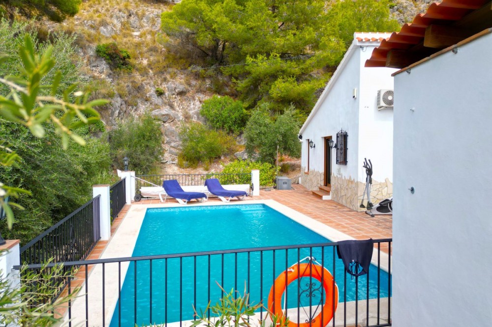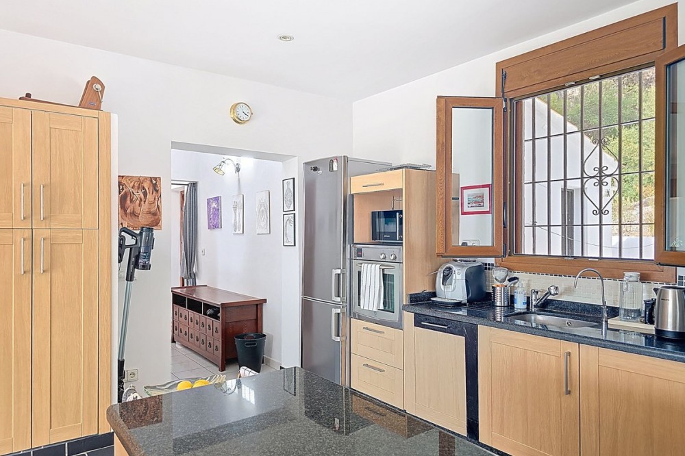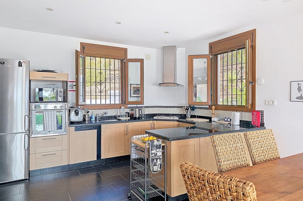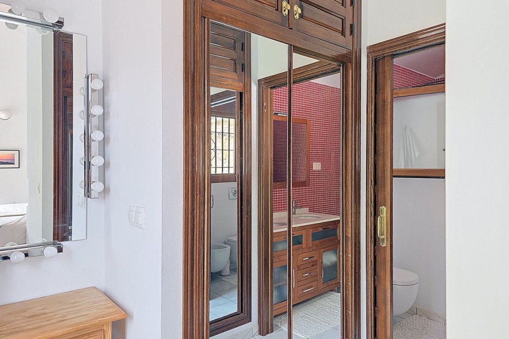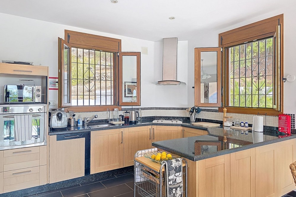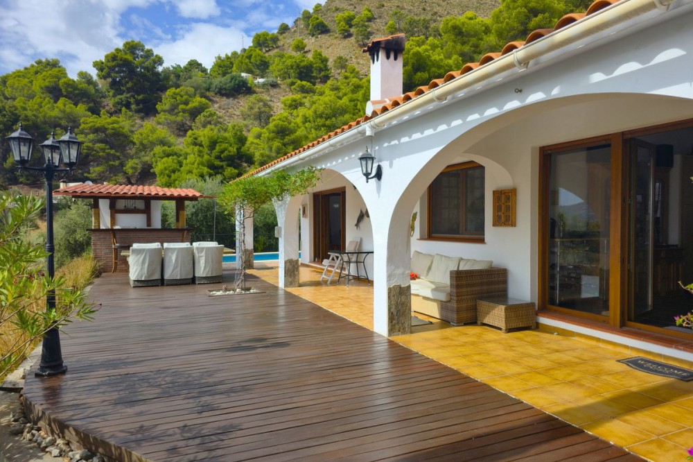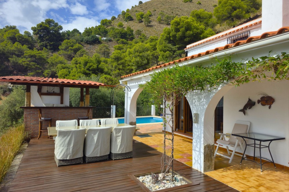 • Exclusive Spacious Villa with Guest Suite, Heated Saltwater Pool and Panoramic Sea Views ✨ This exclusive villa of 424 m², built in 2010 and impeccably maintained, perfectly combines comfort, space, and privacy in a prestigious Andalusian setting. With approximately 200 m² of living space and a 3,600 m² plot, it is ideal for those seeking tranquility without compromising on luxury. The main house features three spacious bedrooms, including one with an en-suite bathroom, and a total of three bathrooms. The bright living room with fireplace and direct access to the terraces forms the heart of the home. Additionally, there is a separate laundry room with office space, perfect for practical use or working comfortably from home. A special highlight is the garage with polyvalent space and its own bathroom, above which is an independent living unit with bedroom and lounge – perfect as a guest suite, studio, or for family members who value privacy. Outdoors, you will find everything for the ultimate Mediterranean lifestyle: a beautifully landscaped garden, several sunny terraces, a heated saltwater pool, and a stylish bar with outdoor kitchen – ideal for long summer evenings and entertaining guests. With a south-facing orientation, you can enjoy the sun all day and breathtaking panoramic sea views over the surrounding landscape. For extra comfort, the villa offers air conditioning, individual heating, built-in wardrobes, storage space, a balcony, and parking facilities. An exclusive opportunity for those seeking a versatile and prestigious villa in Andalusia, where luxury living, relaxation, and breathtaking views come together perfectly.